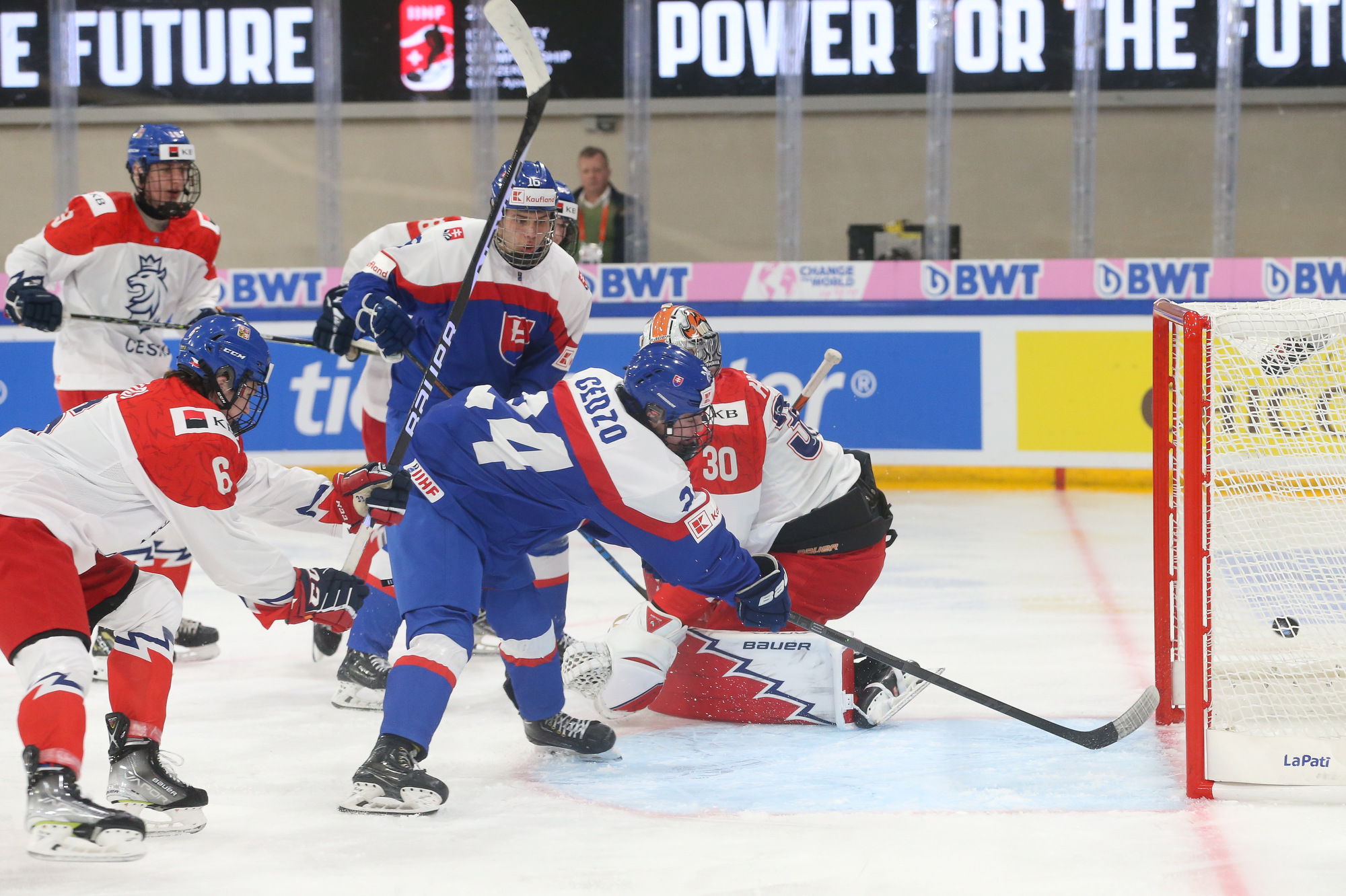 After killing that penalty, Czechia began to show more offence. Urban had to make three saves in quick succession to deny Martin Matejicek. At the other end, Juraj Pekarcik found himself with time in front of the Czech net, but delayed long enough for Hrabal to set himself to make the save.