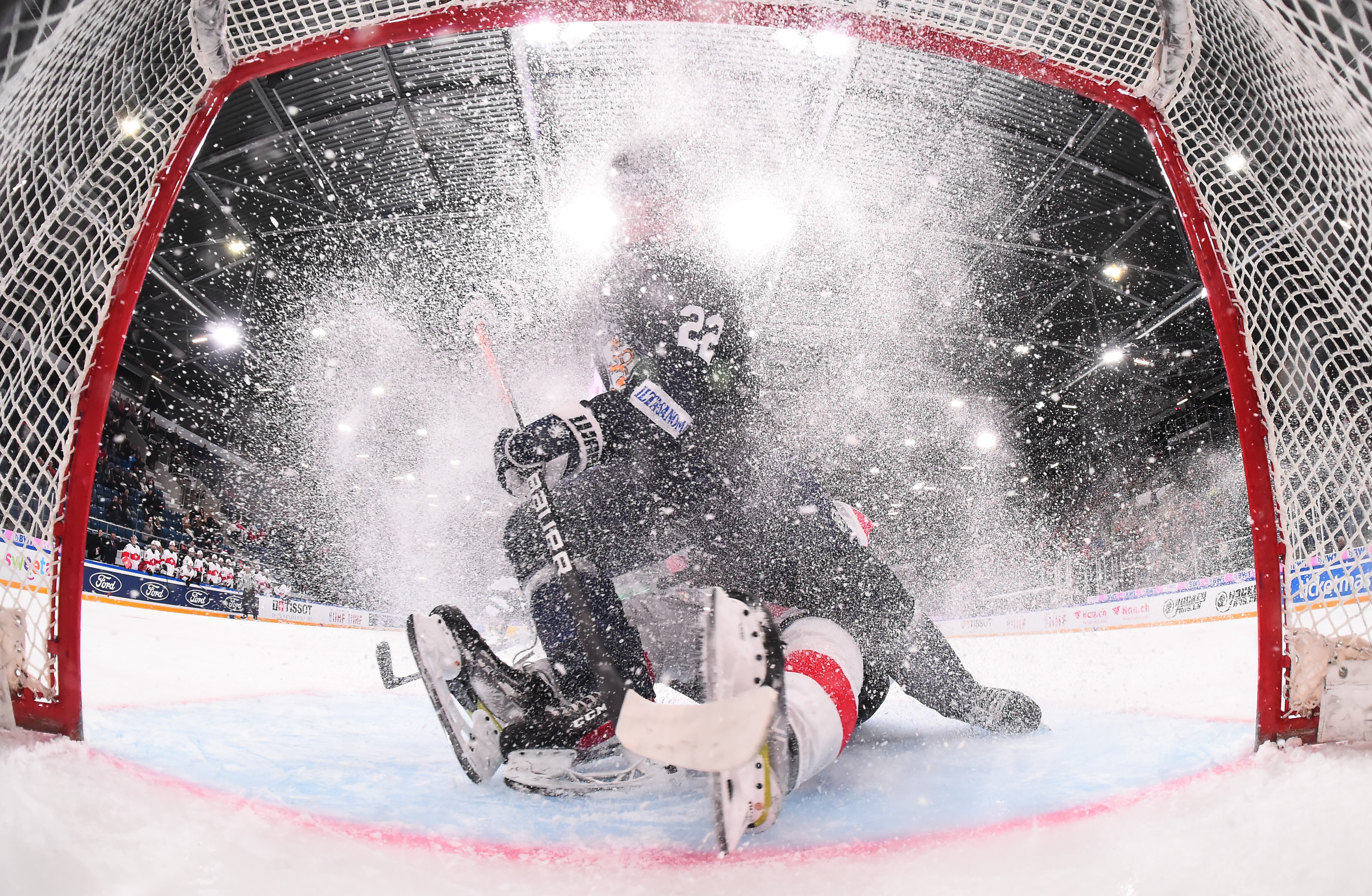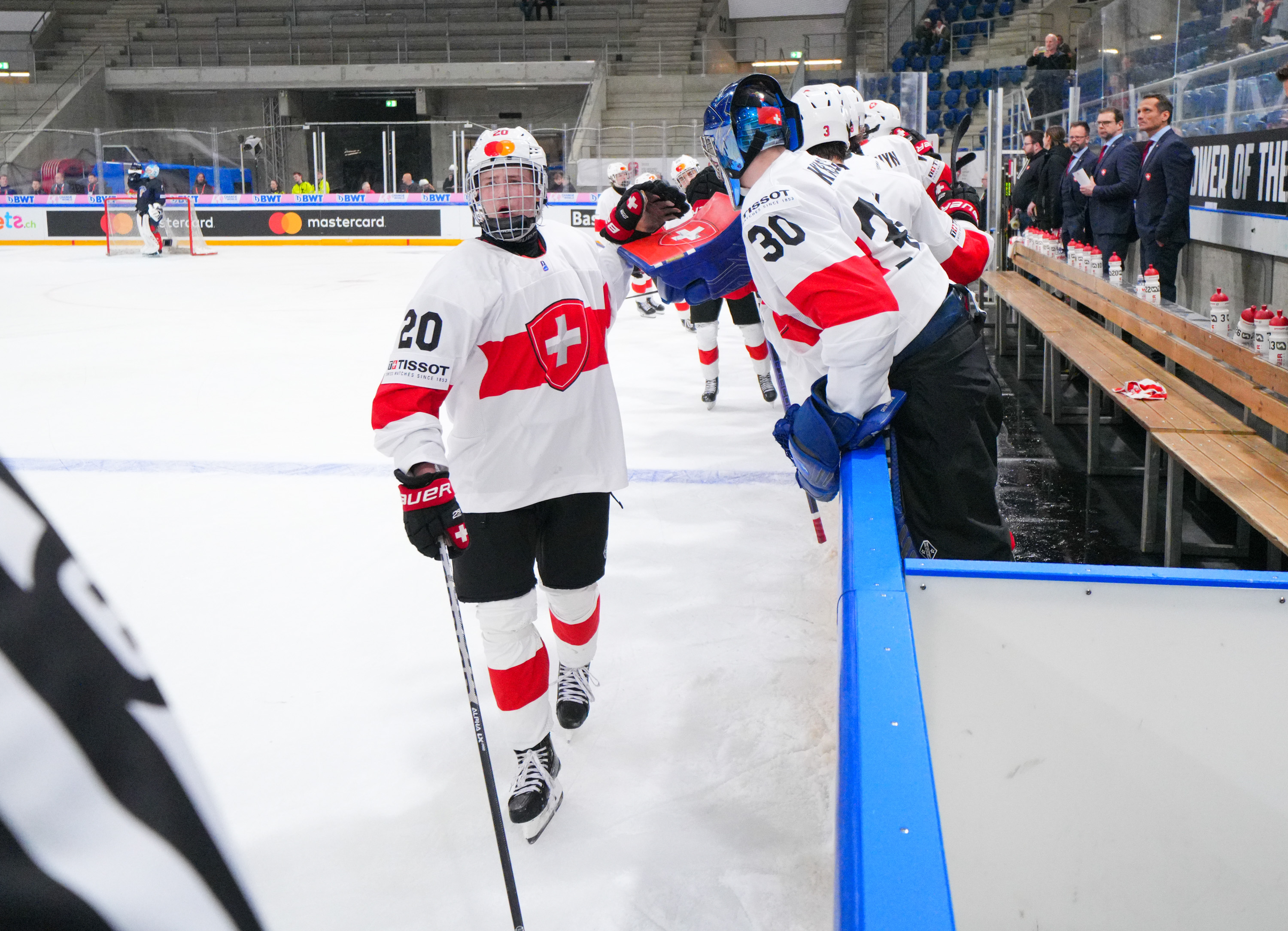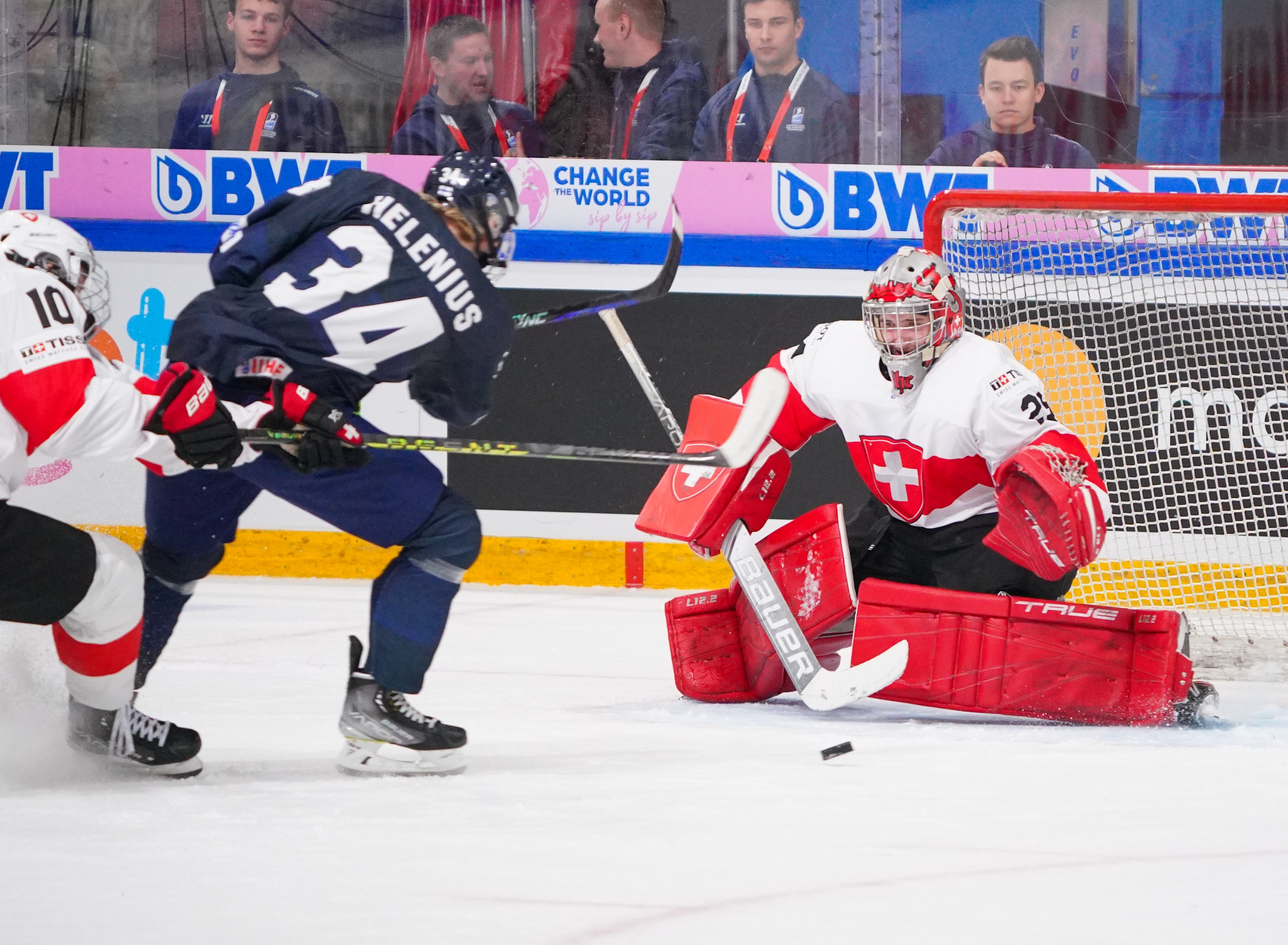 During a mid-period Swiss power play, Vinni's strong positioning enabled him to deny Simon Meier on a great chance from the slot.