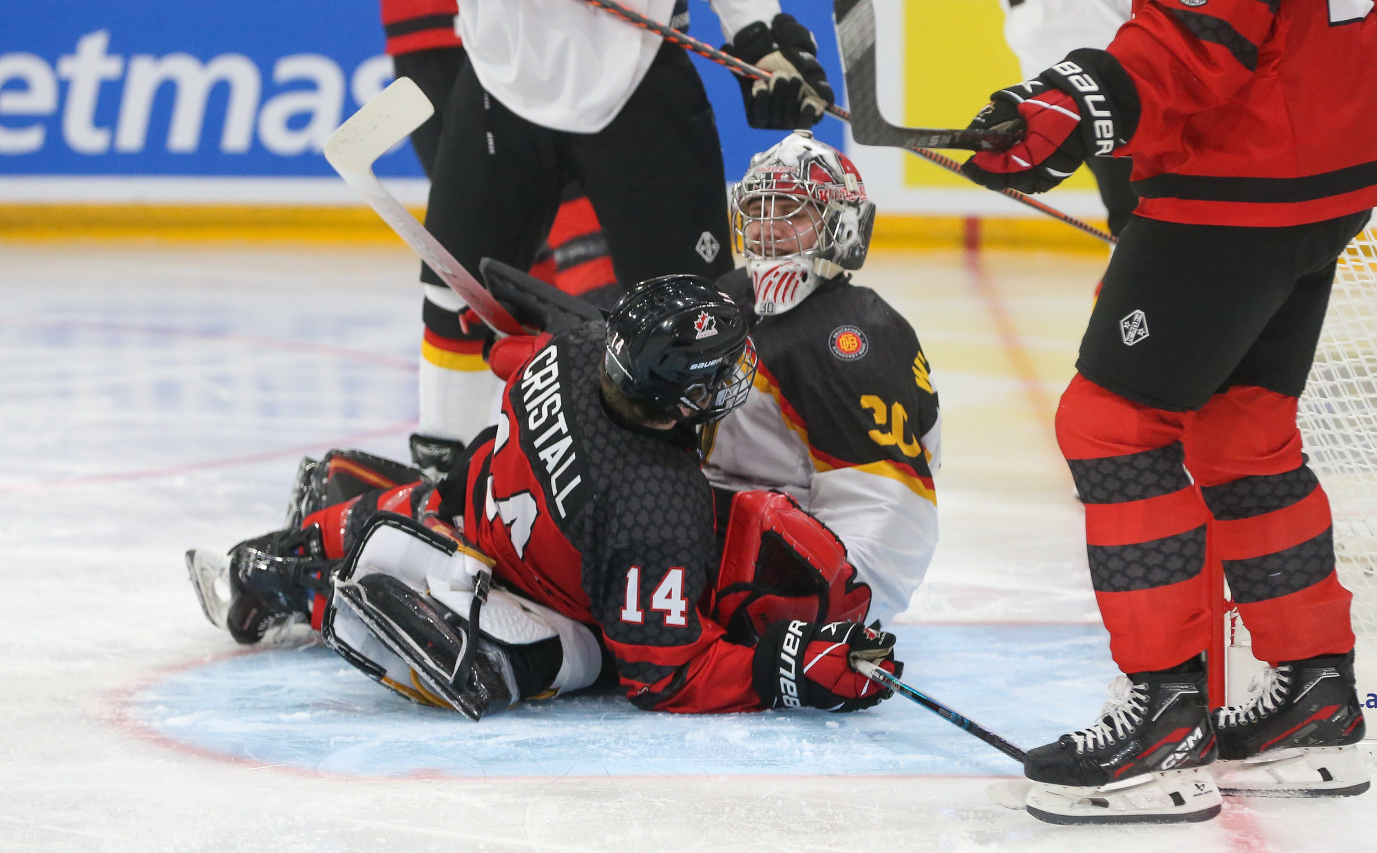 The game stats illustrated the challenge facing the underdog. When Canada went up 2-0, Germany had managed just two shots at Carson Bjarnason, back in the Canadian net after he was yanked during the disastrous first period against Sweden.