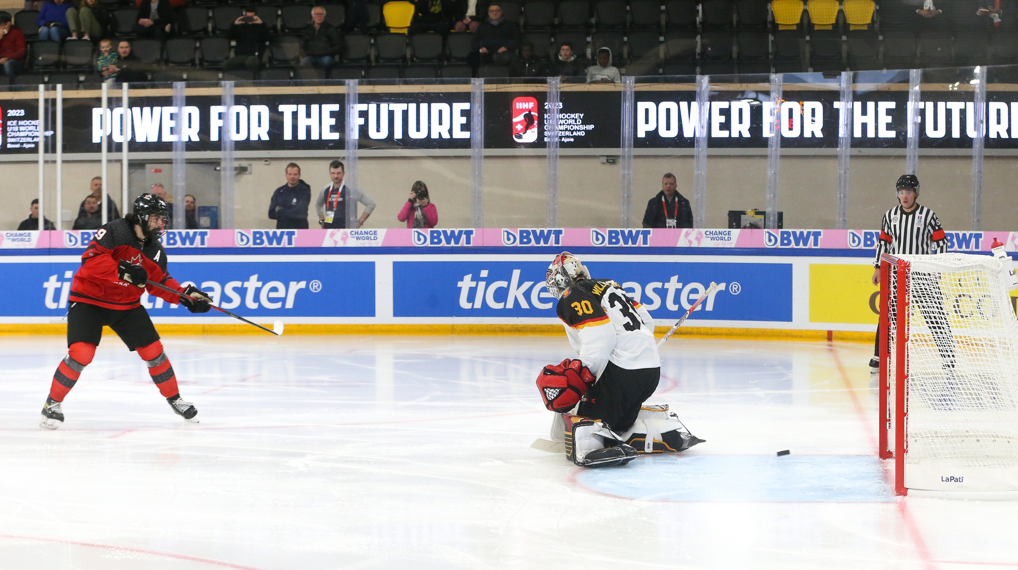 The pattern of play changed little in the middle frame, with Canada continuing to dictate proceedings and Germany battling to avoid getting overwhelmed. In the end, though, Canada’s power was too much. Lukas Dragicevic extended the lead with a beauty of a coast-to-coast effort midway through the second.