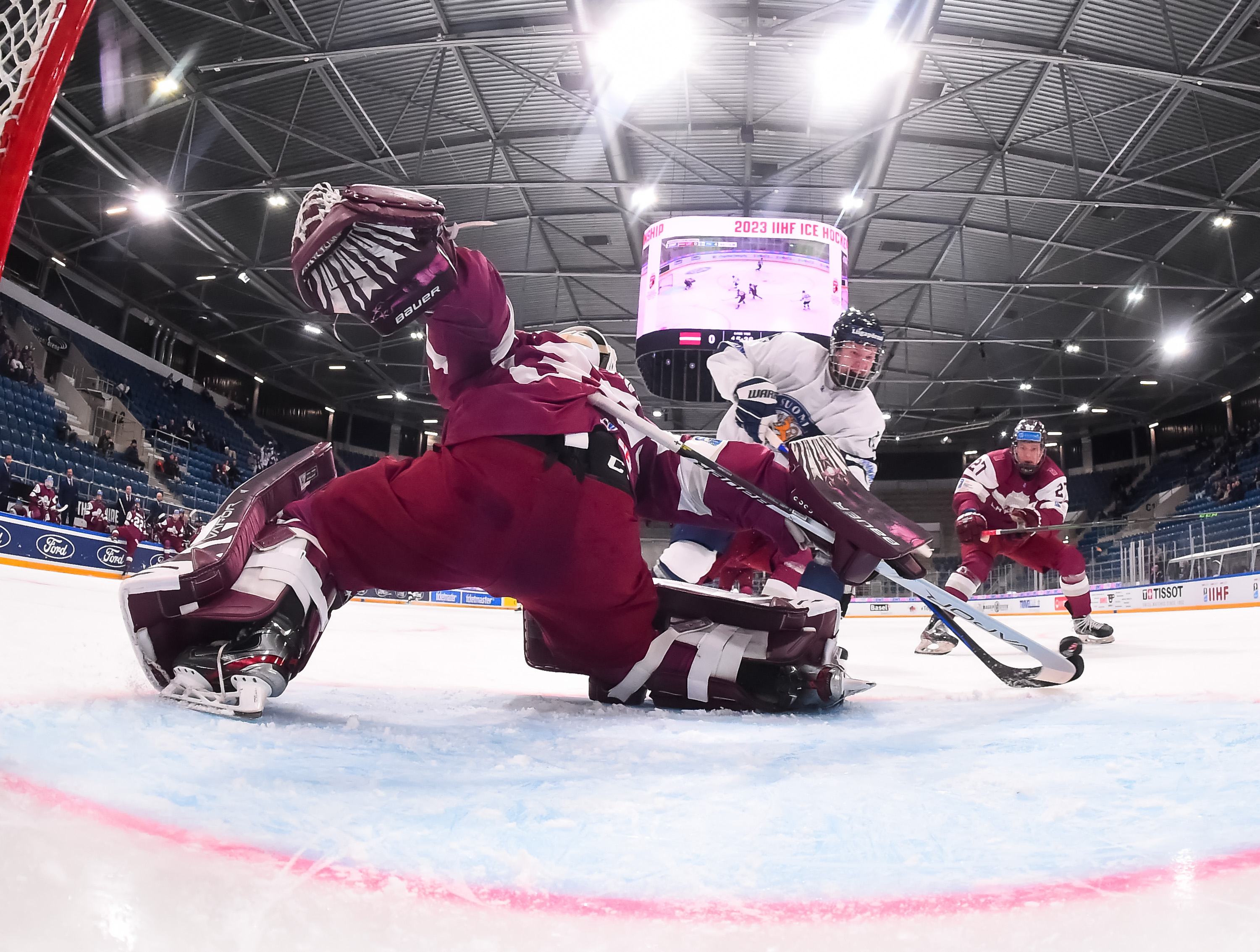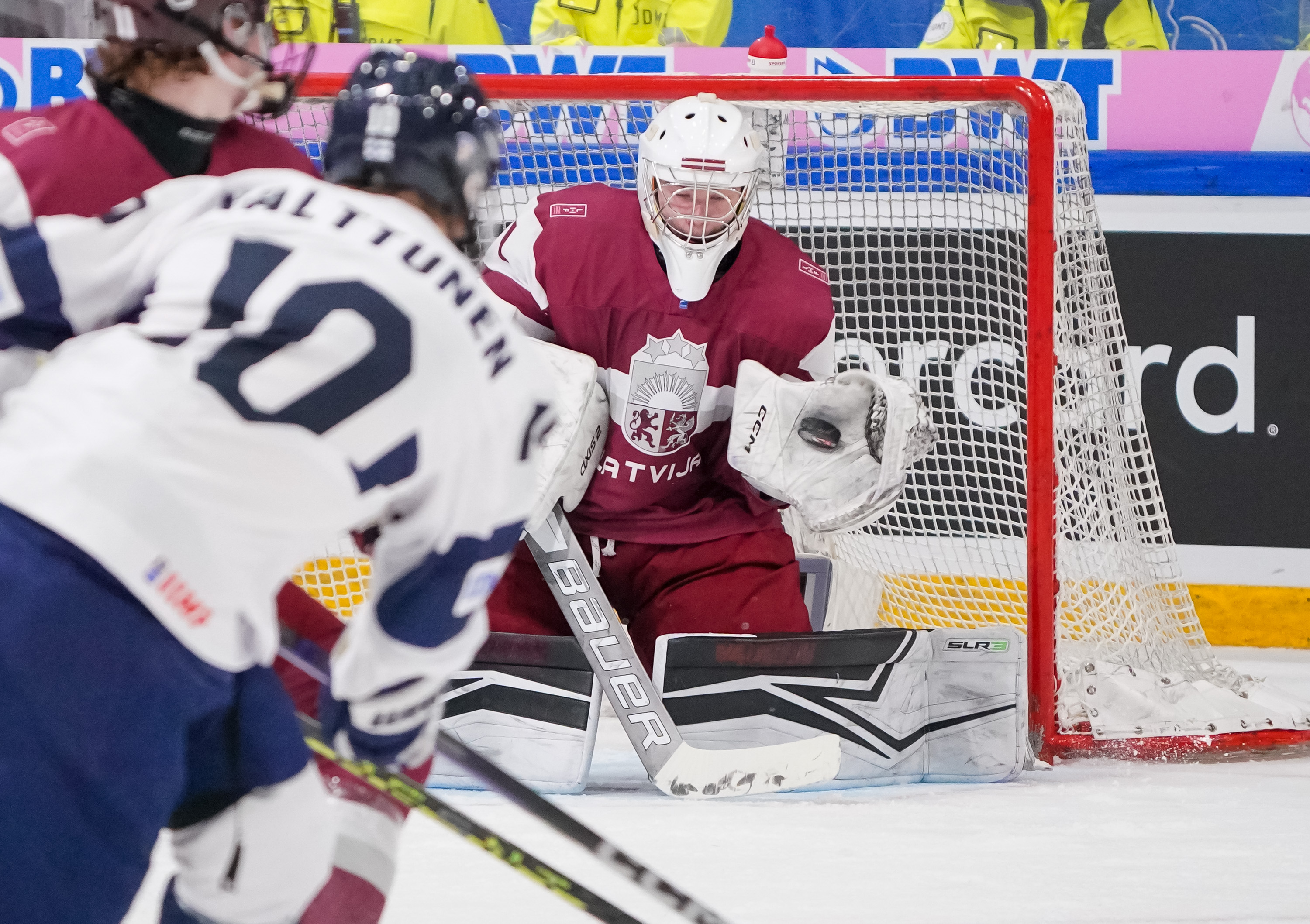 During Finland’s first power play, Ozols stood his ground to keep it a one-goal game when Jesse Kiiskinen hammered a one-timer from the slot.