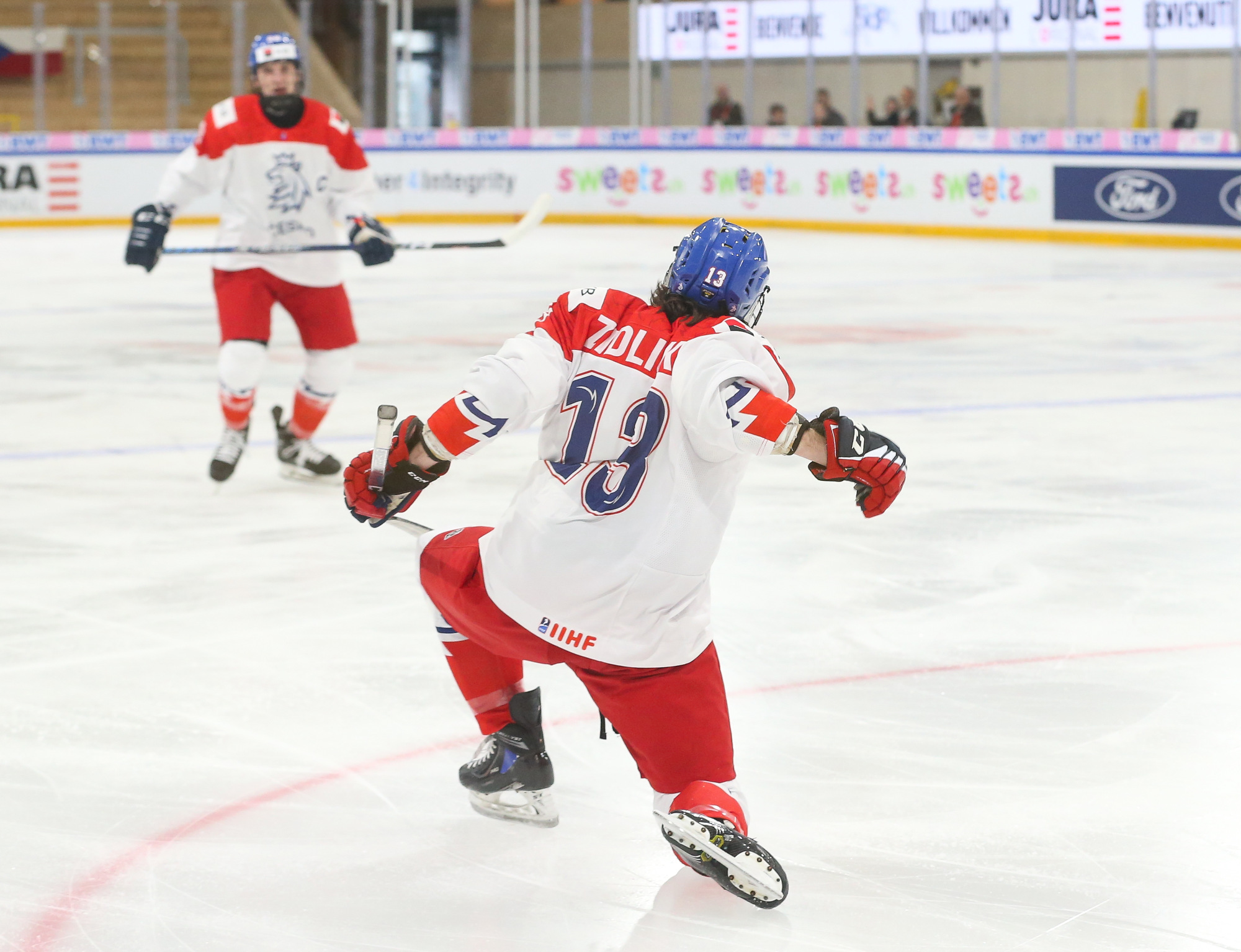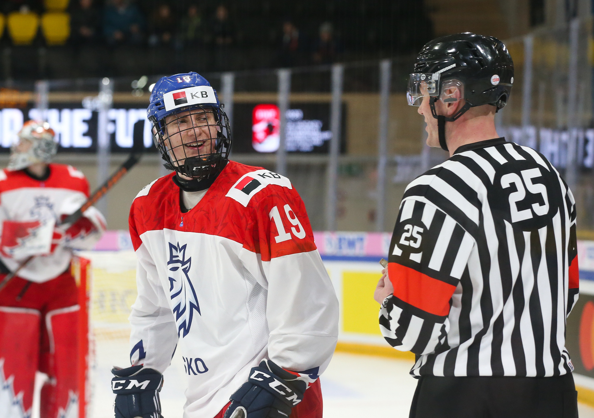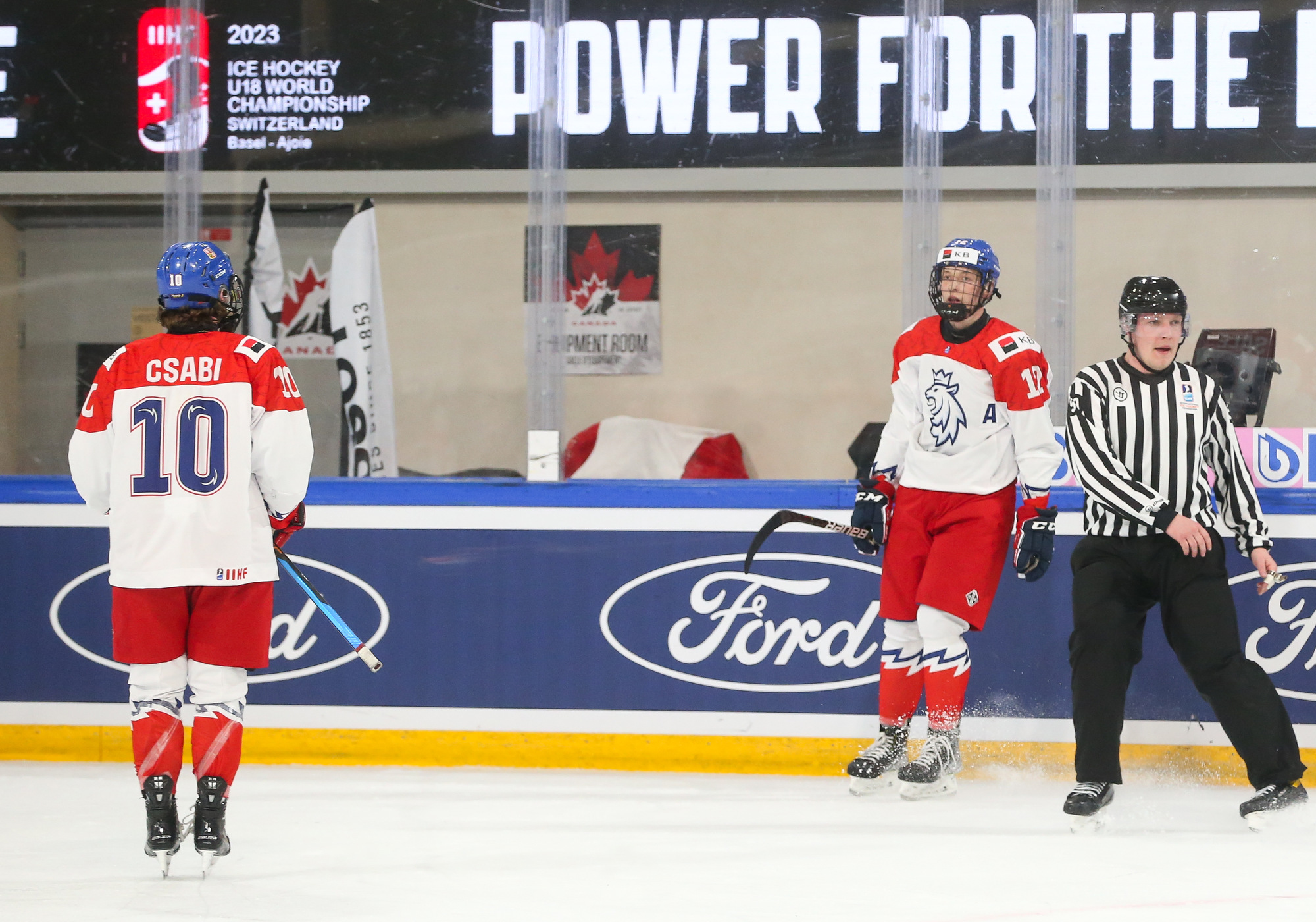 Sale thought he had his hat-trick in the 35th minute when, despite fluffing his initial shot, he managed to bear down on the net and ensure that the puck got through the goalie’s pads. However, the on-ice call was interference on the netminder and, despite a challenge from the Czech bench, the goal was whistled off.