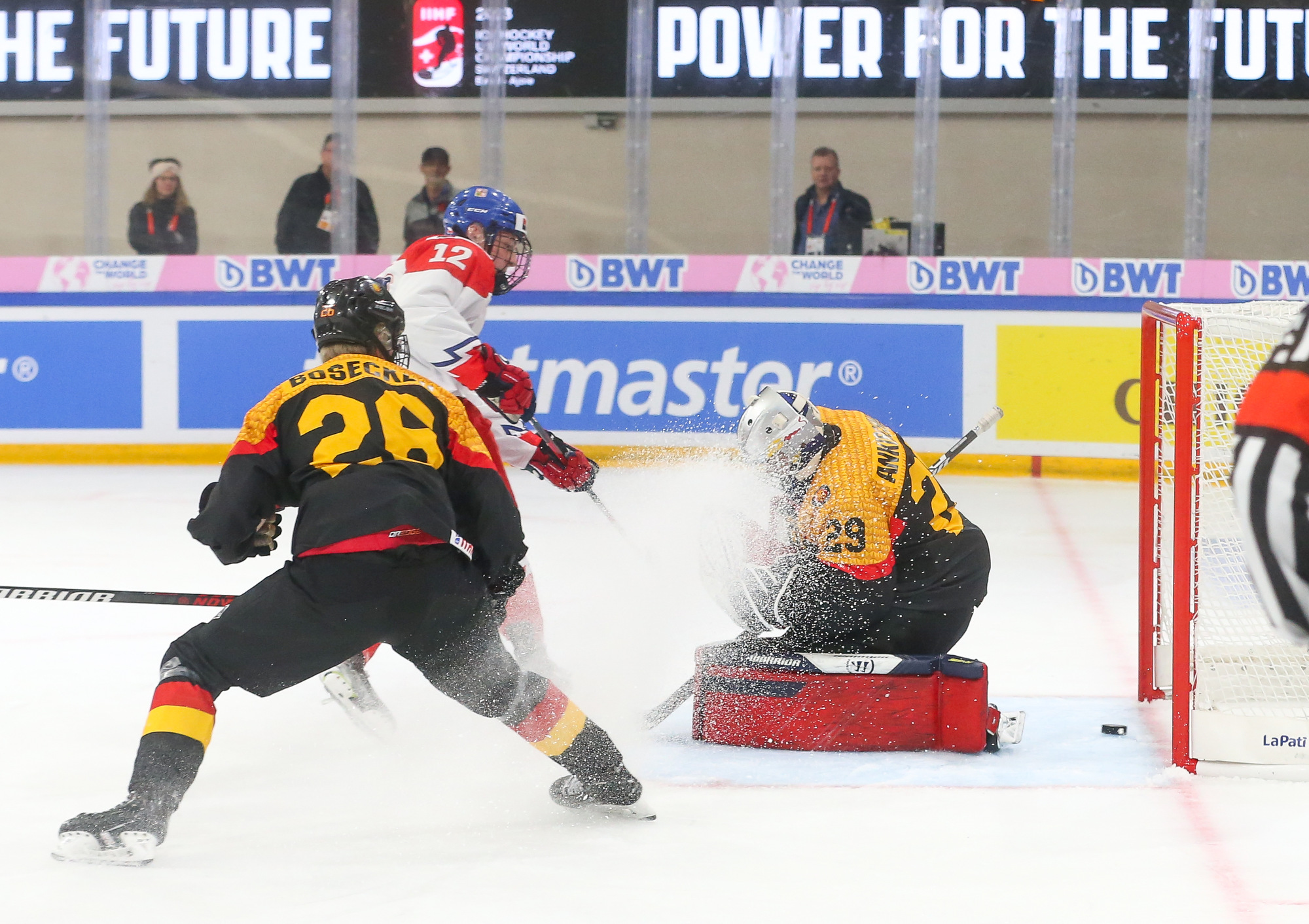 At the start of the second period, team captain Jakub Dvorak made it 4-0, chasing Ankirchner from the net. Leon Willerscheid, who endured a demanding day against Canada yesterday, took over.
