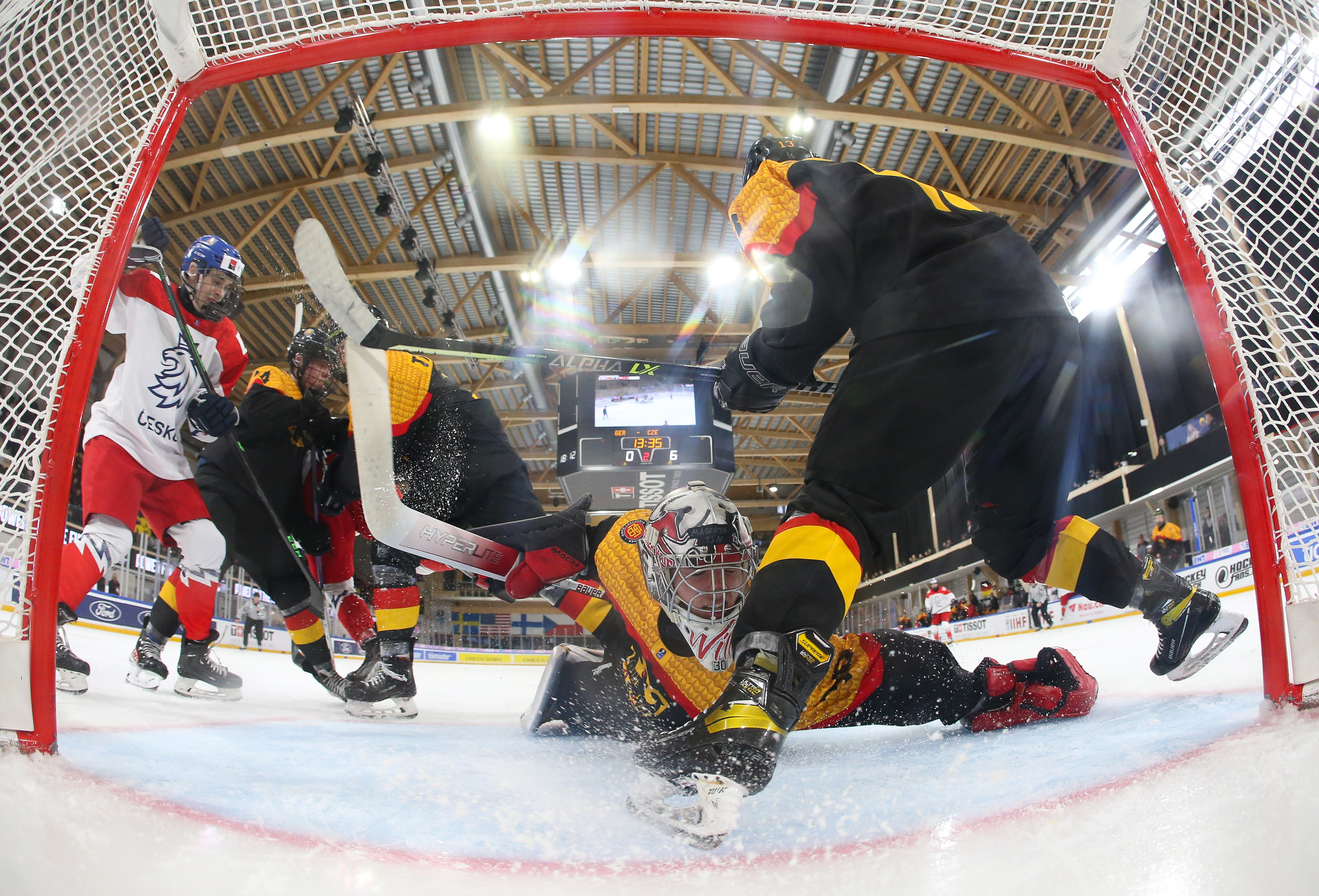 Early in the third, Germany’s captain Edwin Tropmann was ejected from the game after a cross-check on Petr. The Czech forward was able to continue, but the German defence killed the major penalty. Midway through the final frame, Germany got a power play chance of its own and Linus Brandl went close to a consolation goal.