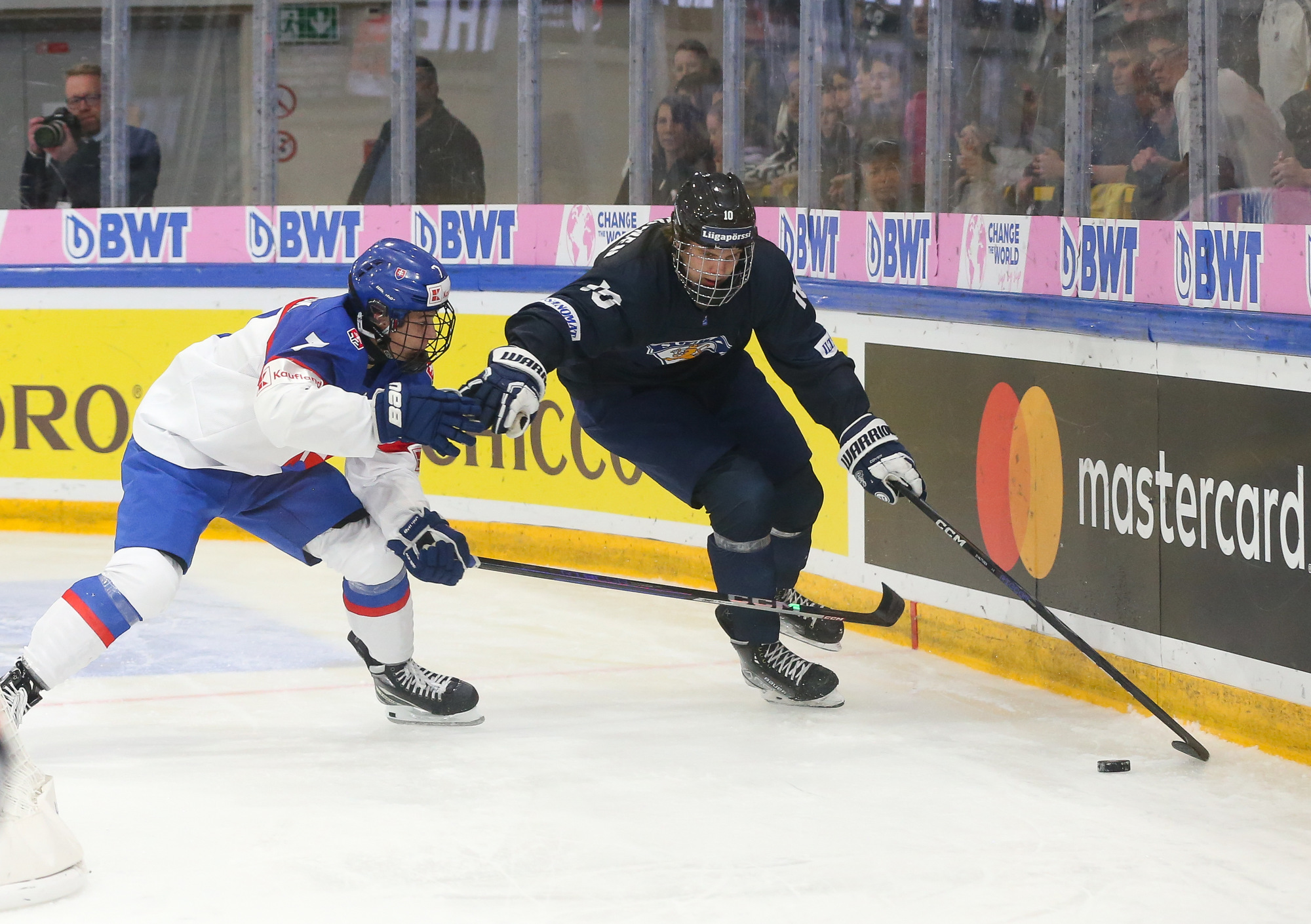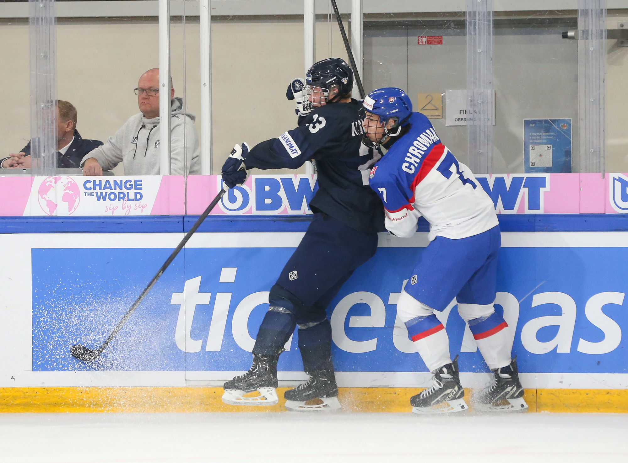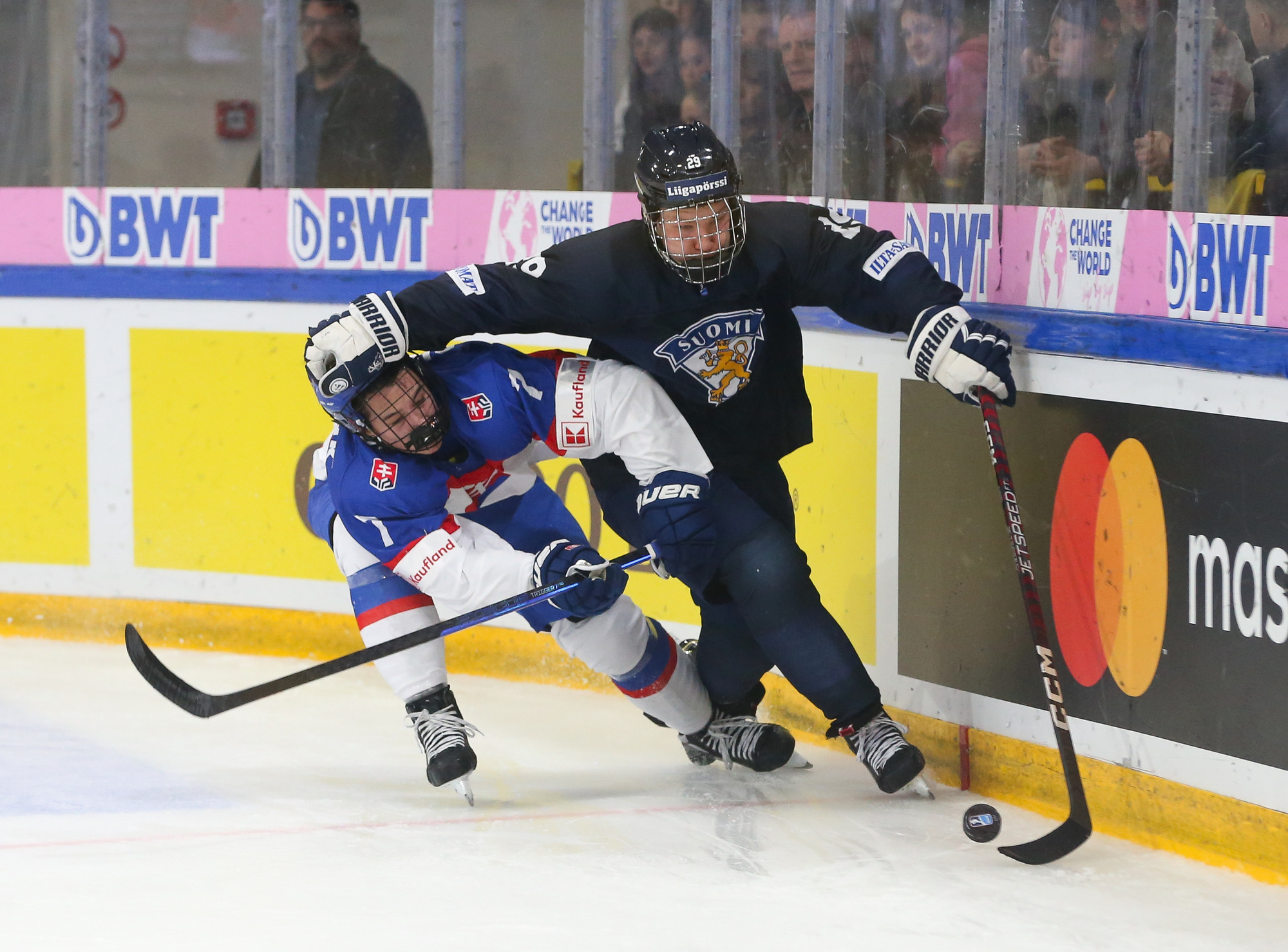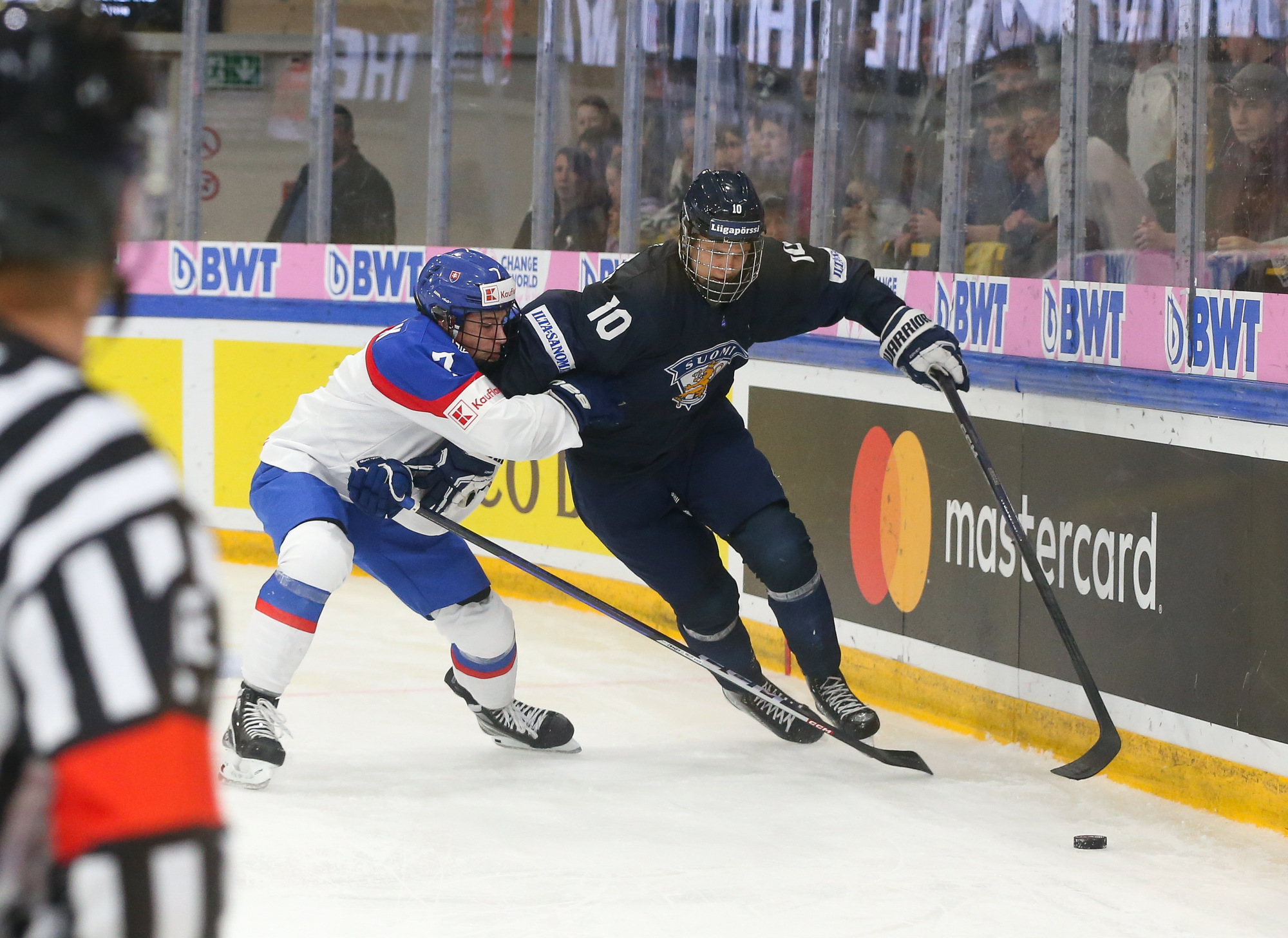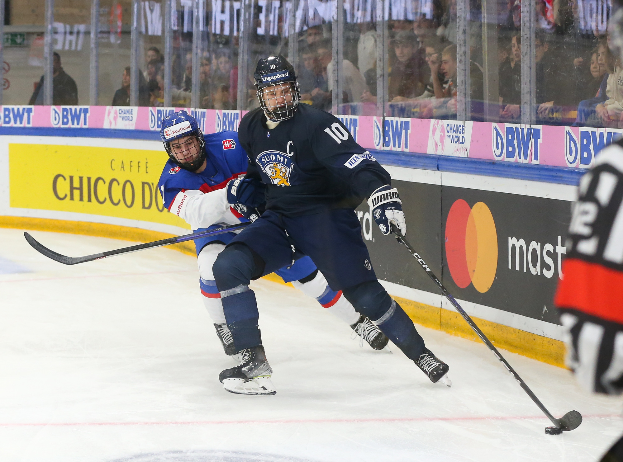 Late in the first, there were signs that Slovakia’s defence was tiring. Finland got the first power play of the game, and shortly after the teams returned to full strength Eperjesi got caught in possession bringing the puck out of the zone. As he tried to recover, he fouled Topias Hynninen to give the Finns a man advantage at the start of the second period. Slovakia had to dig deep.