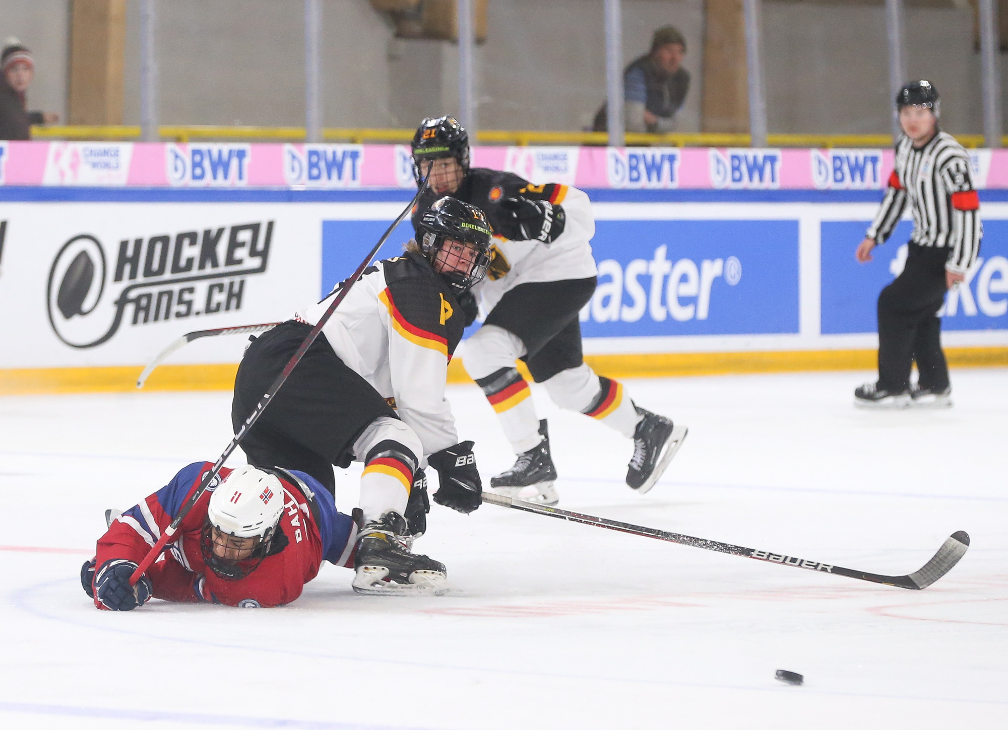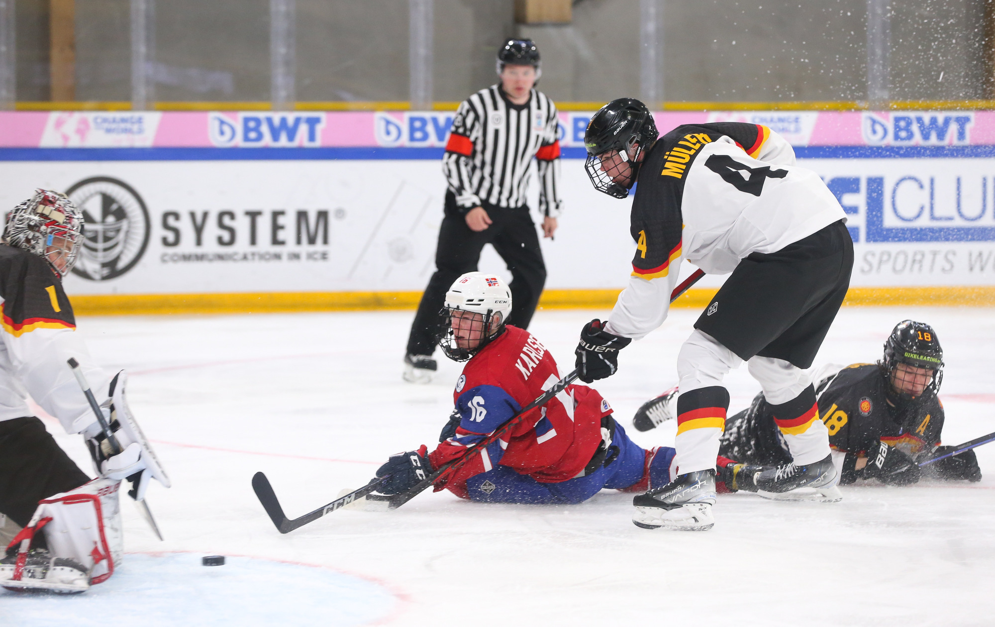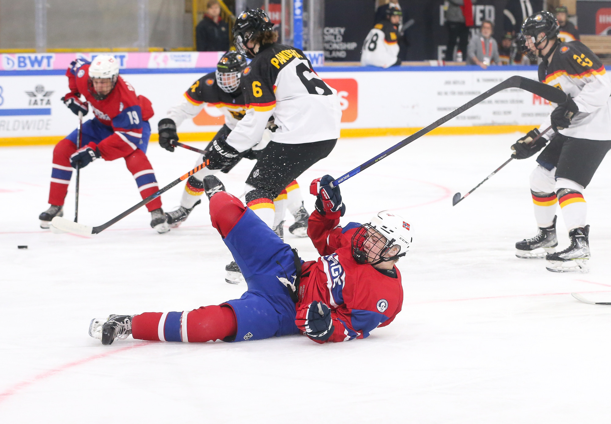 In the second period, Philip Hagen's rising centre-point wrister gave Norway a 2-1 lead with the man advantage at 5:26. With traffic in front, the puck eluded German netminder Nico Pertuch high to the stick side.