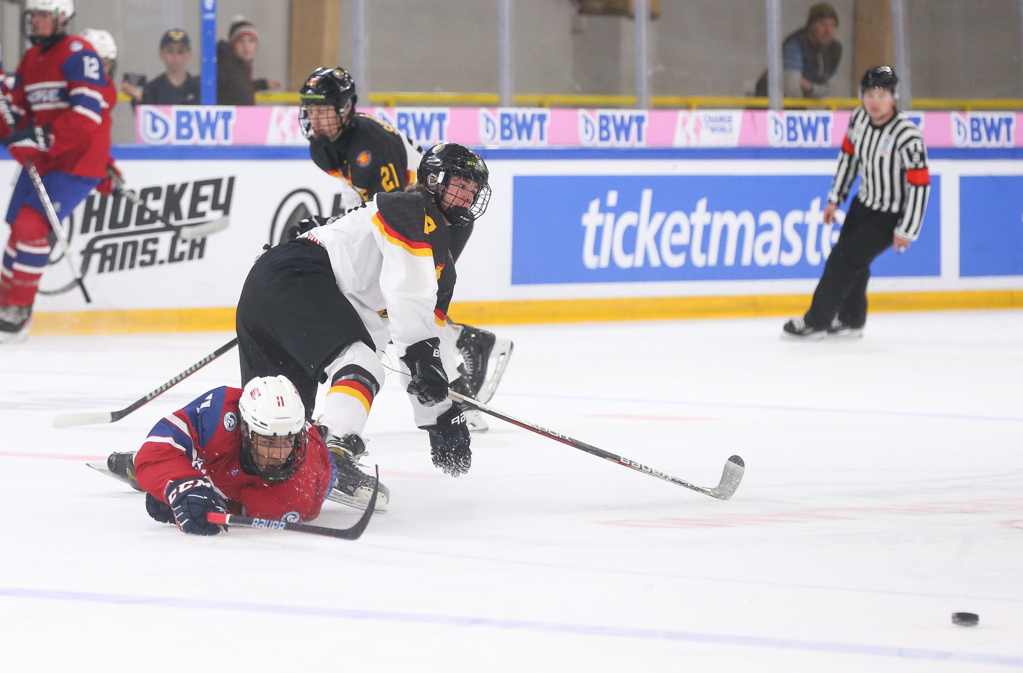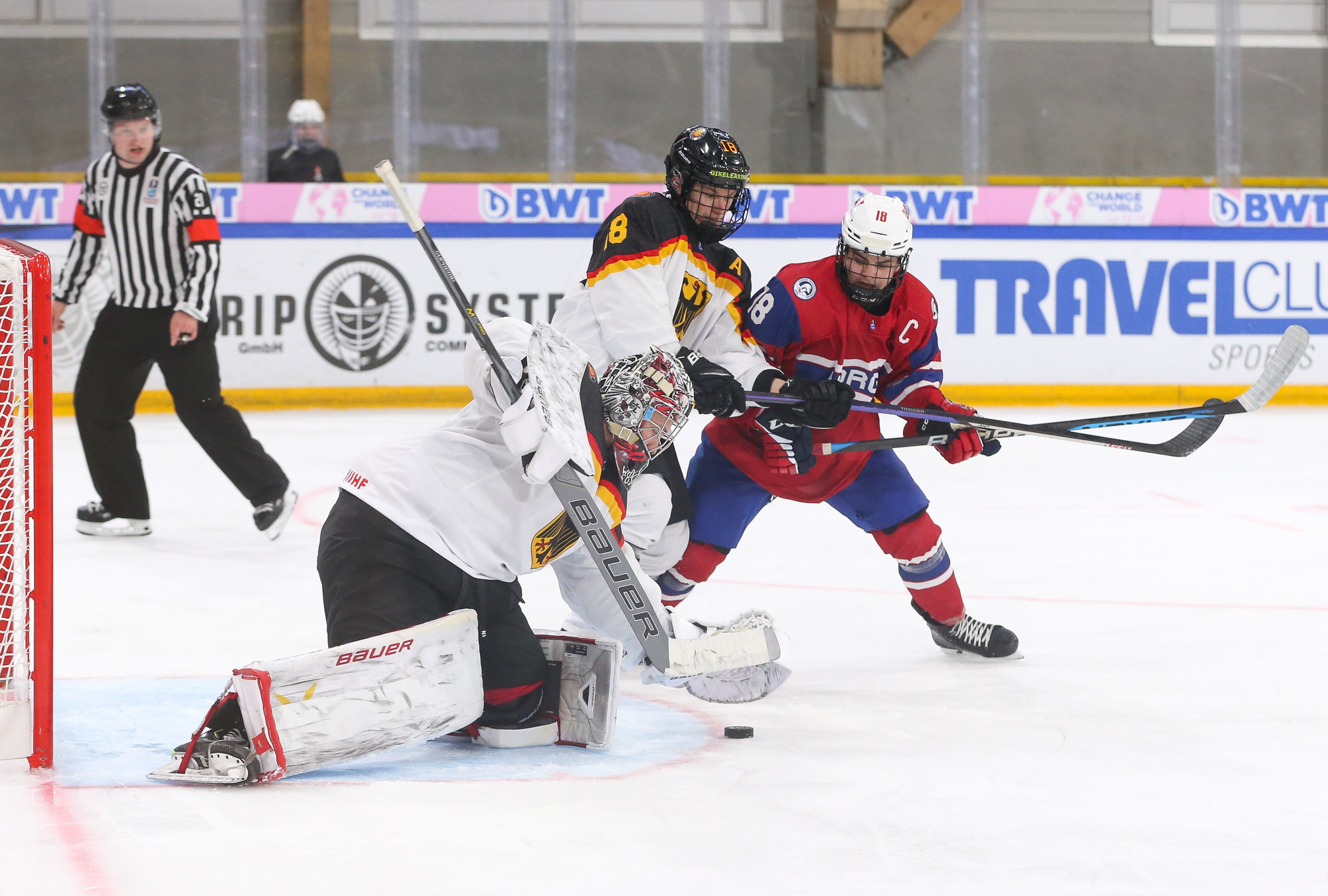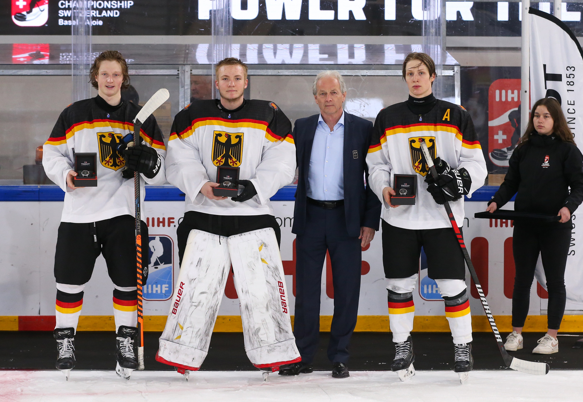 Desperate to tie it up in the third period, German coach Alexander Duck pulled Pertuch for the extra attacker with under four minutes to go. Julius Sumpf scored with eight seconds left to make it 3-2, but that was as close as Germany would get.