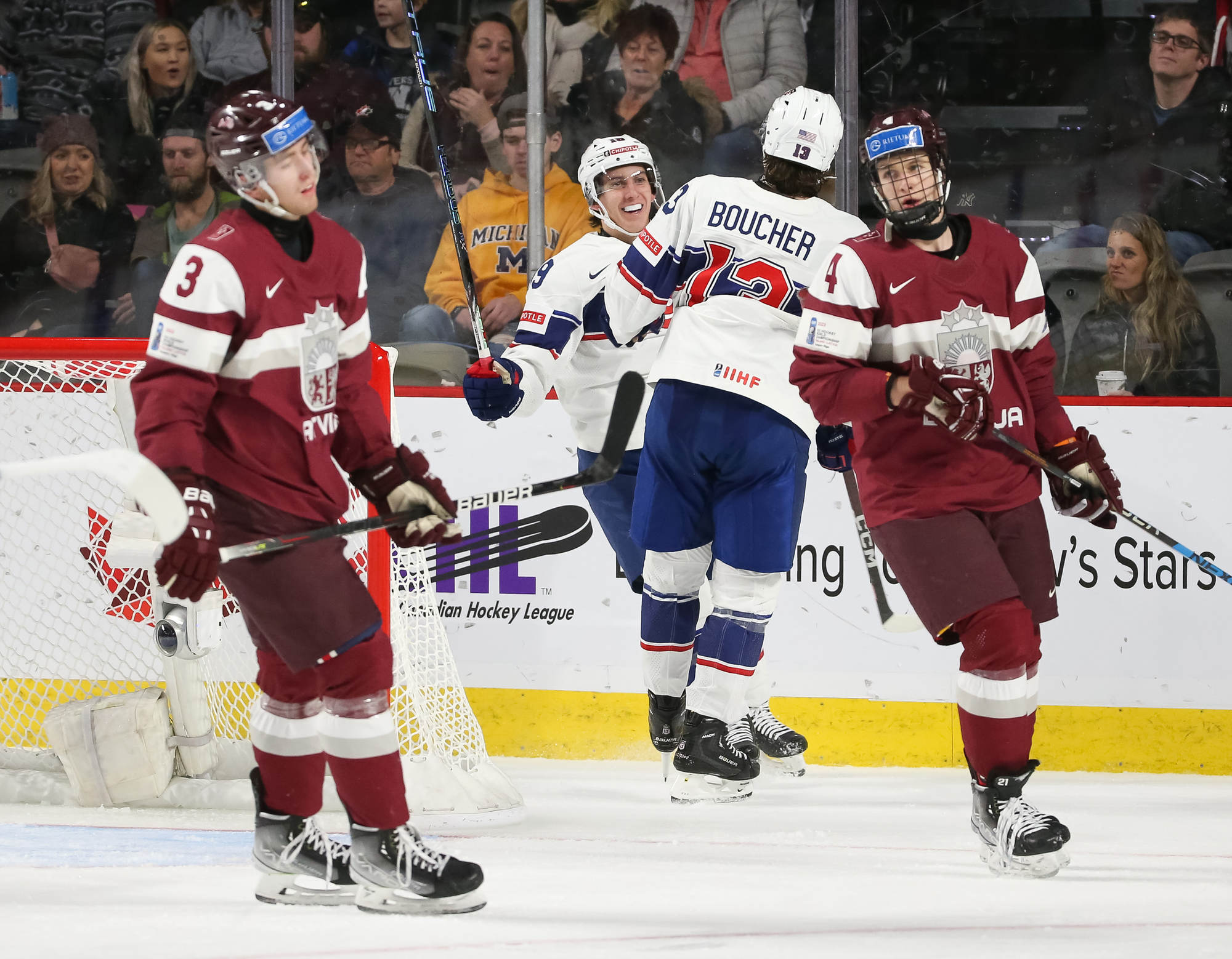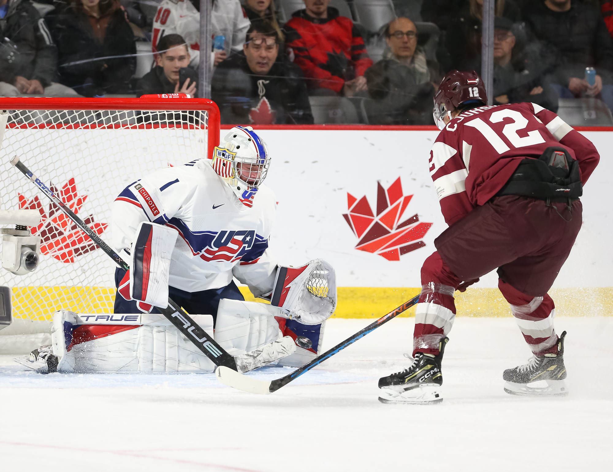This was just the fourth all-time meeting between the Americans and Latvia at this tournament. The U.S. won 12-1 at the 2010 World Juniors, 12-2 at the 2012 World Juniors, and 6-1 at the 2017 World Juniors.