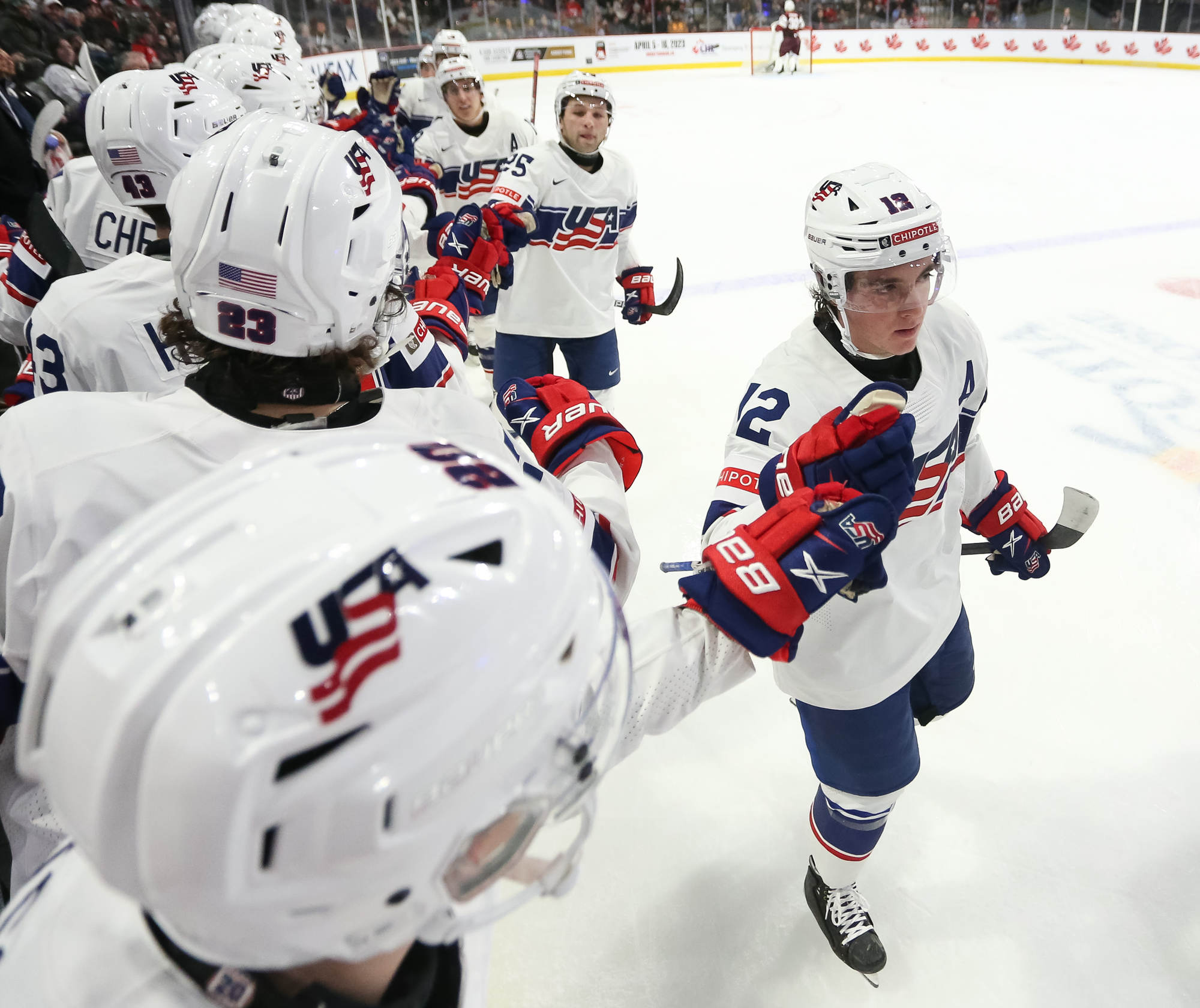 Persistence pays off. The U.S. proved that principle with its 5-2 win over a gritty Latvian squad on Day One of the 2023 IIHF World Junior Championship. Chaz Lucius scored the go-ahead goal early in the third period as his squad pulled away.