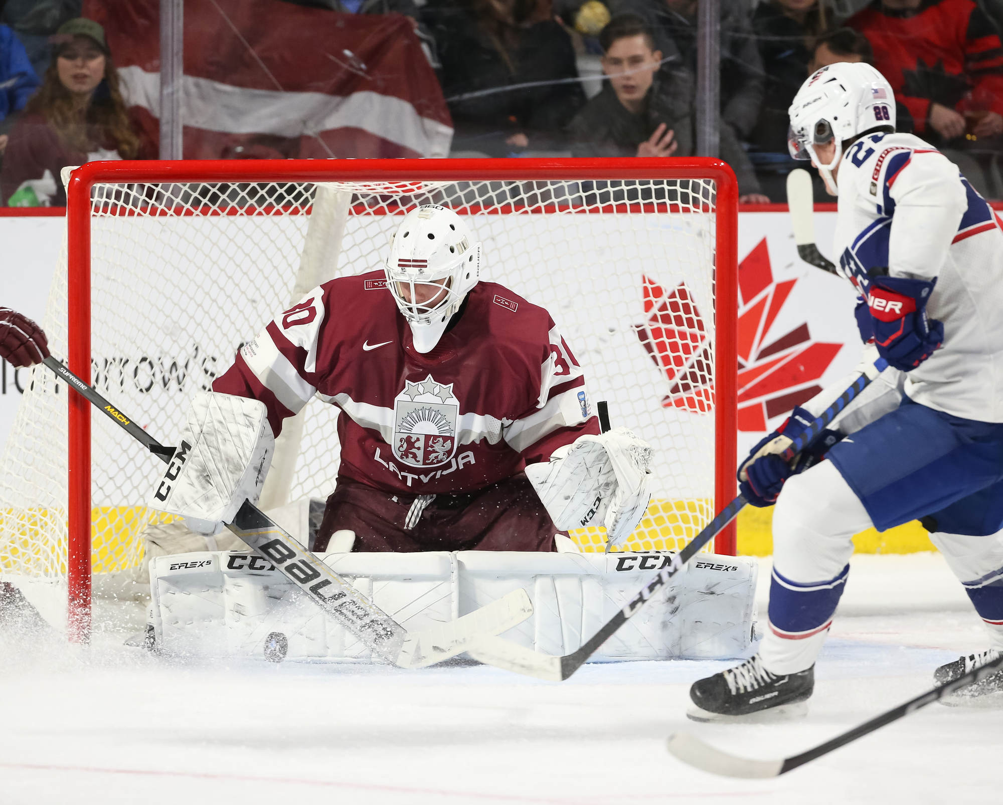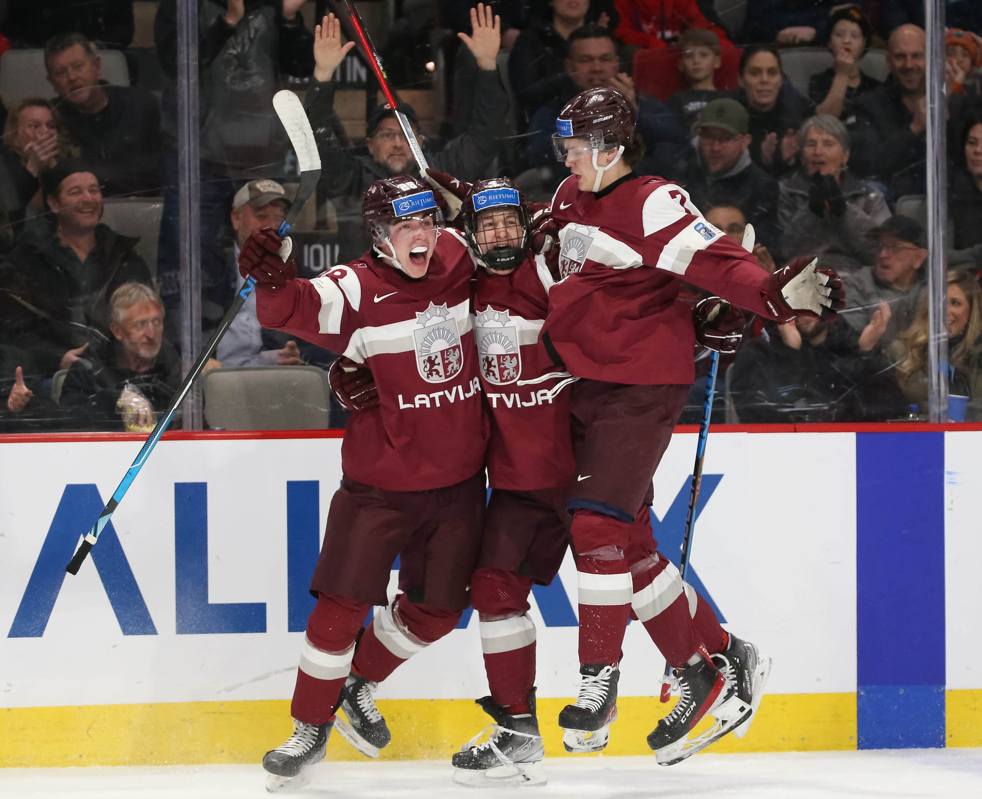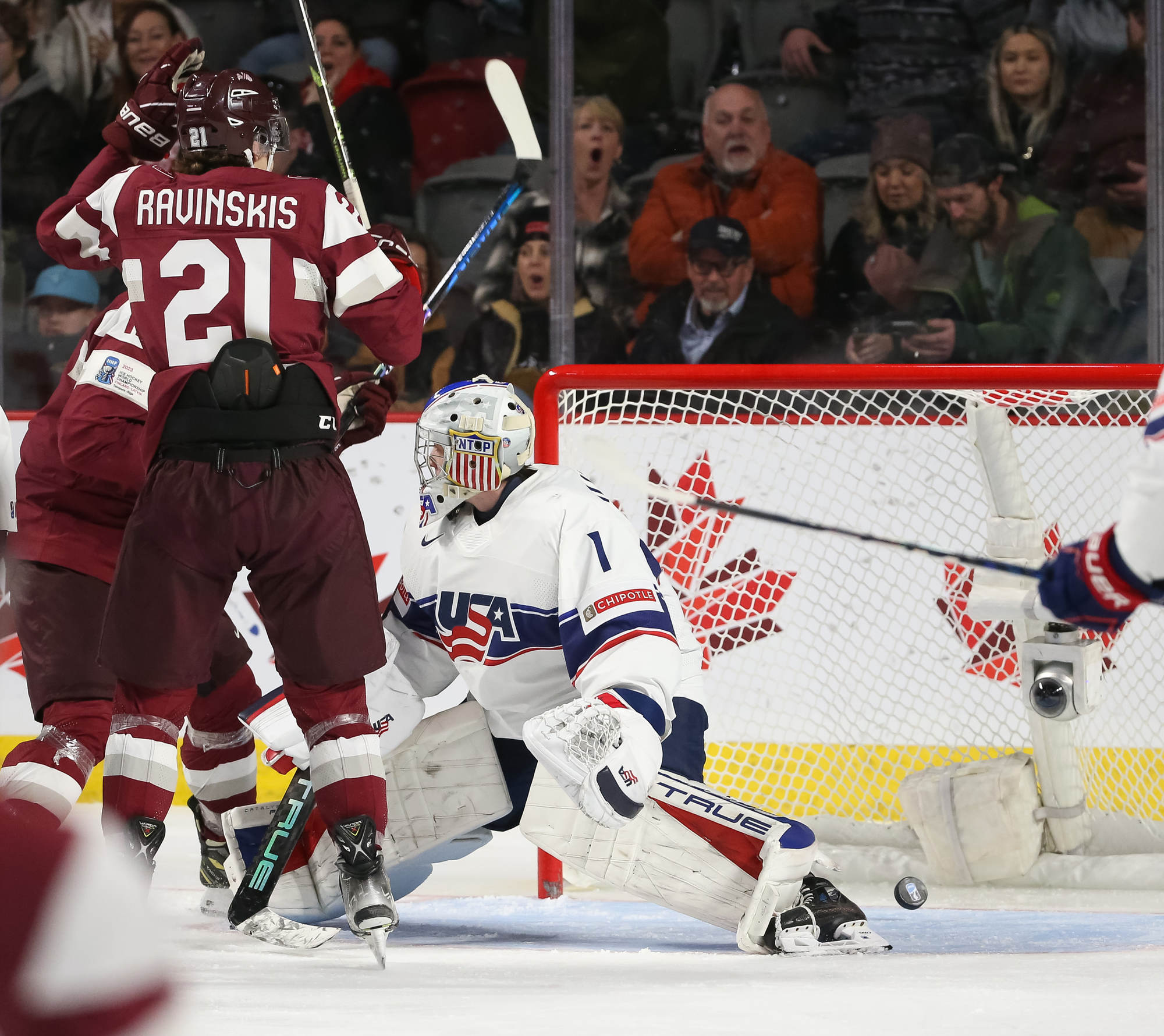"It was a great feeling. When you come to World Juniors and score, it's a really good feeling here," said Ravinskis. "Great [first] pass by our captain [Gustavs Ozolins] and especially our number seven Rainers Rullers. Great pass from him and I just had to put it in."