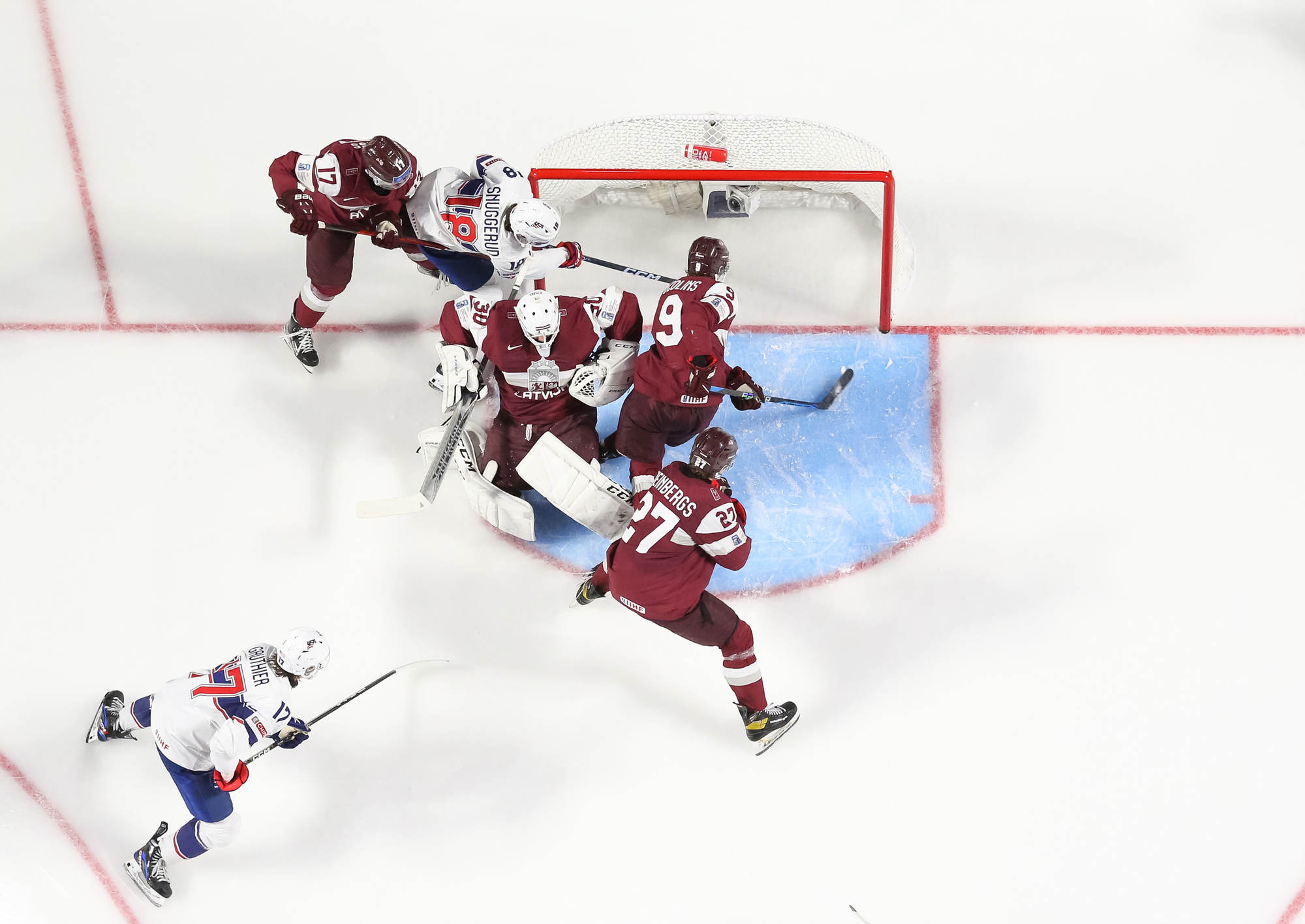 In goal, 17-year-old Trey Augustine of the U.S. National Team Development Program emerged victorious in his first World Junior start for the Americans with 15 saves. Patriks Berzins did his utmost with 41 saves for Latvia.