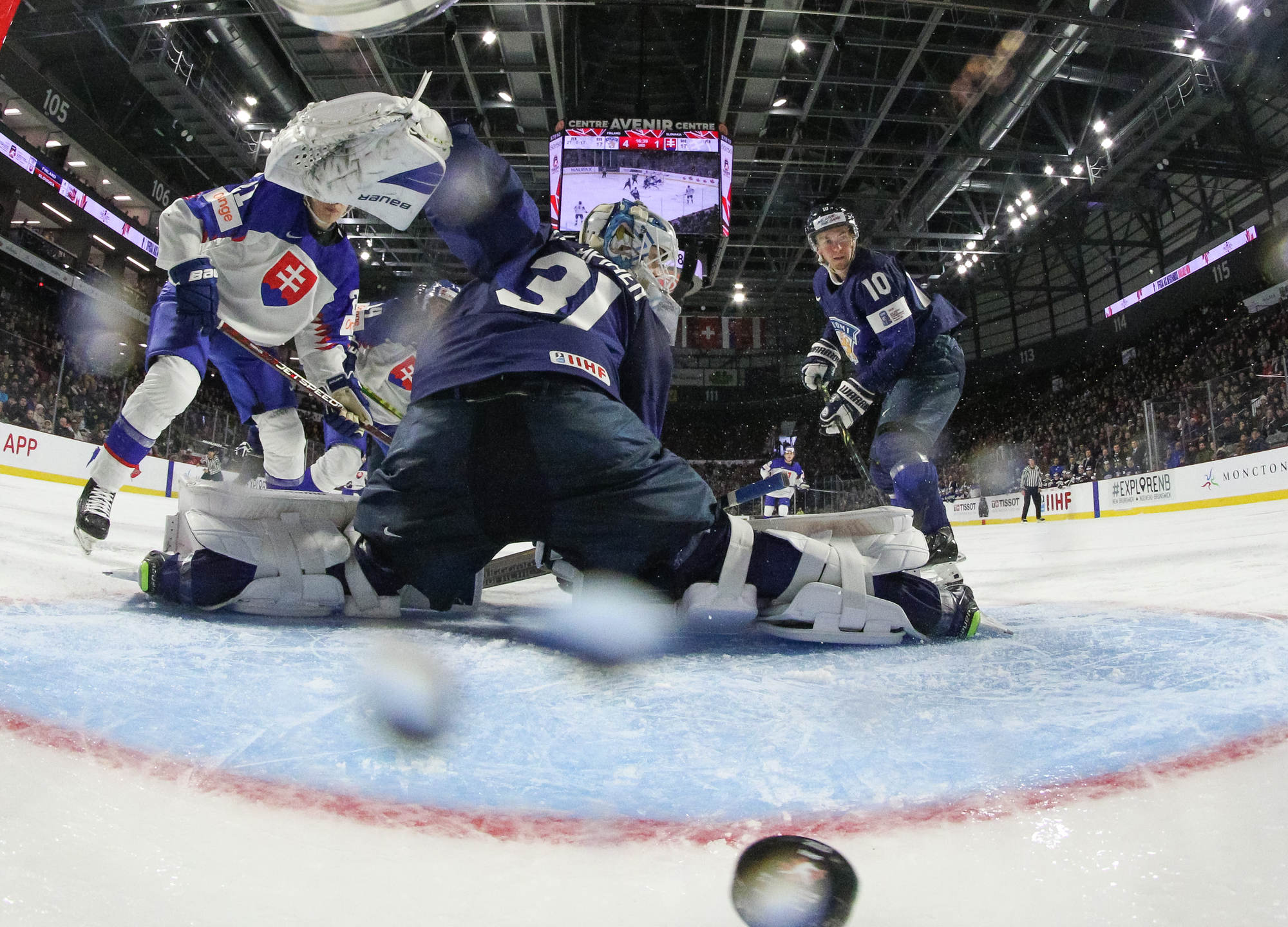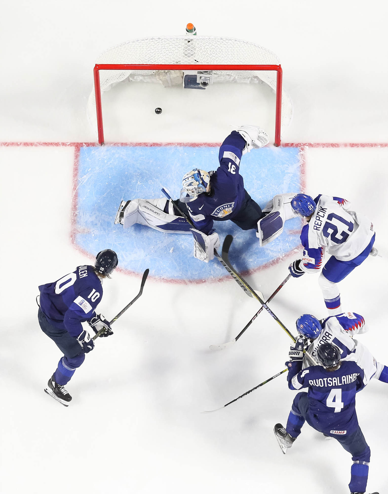 With Aleksi Heimosalmi off for cross-checking early in the third, the Finnish goalie made several nice stops during the Slovak man advantage, but he couldn't stop Repcik from converting a rebound to make it 4-2 at 3:22. Seconds later, Marinov denied Kemell on a solo break.