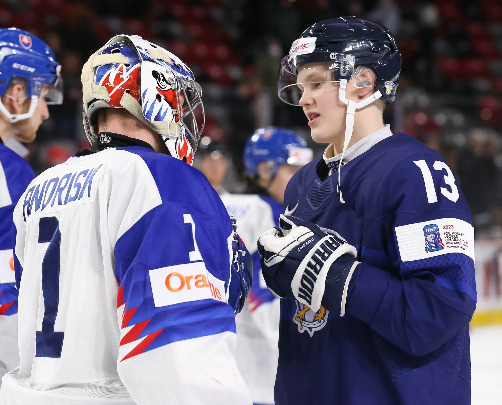Kemell put Finland up 2-1 at 3:21 of the second period when Koivunen set him up at the top of the right faceoff circle. The winger uncorked his deadly one-timer and the puck flew by Andrisik on the stick side.