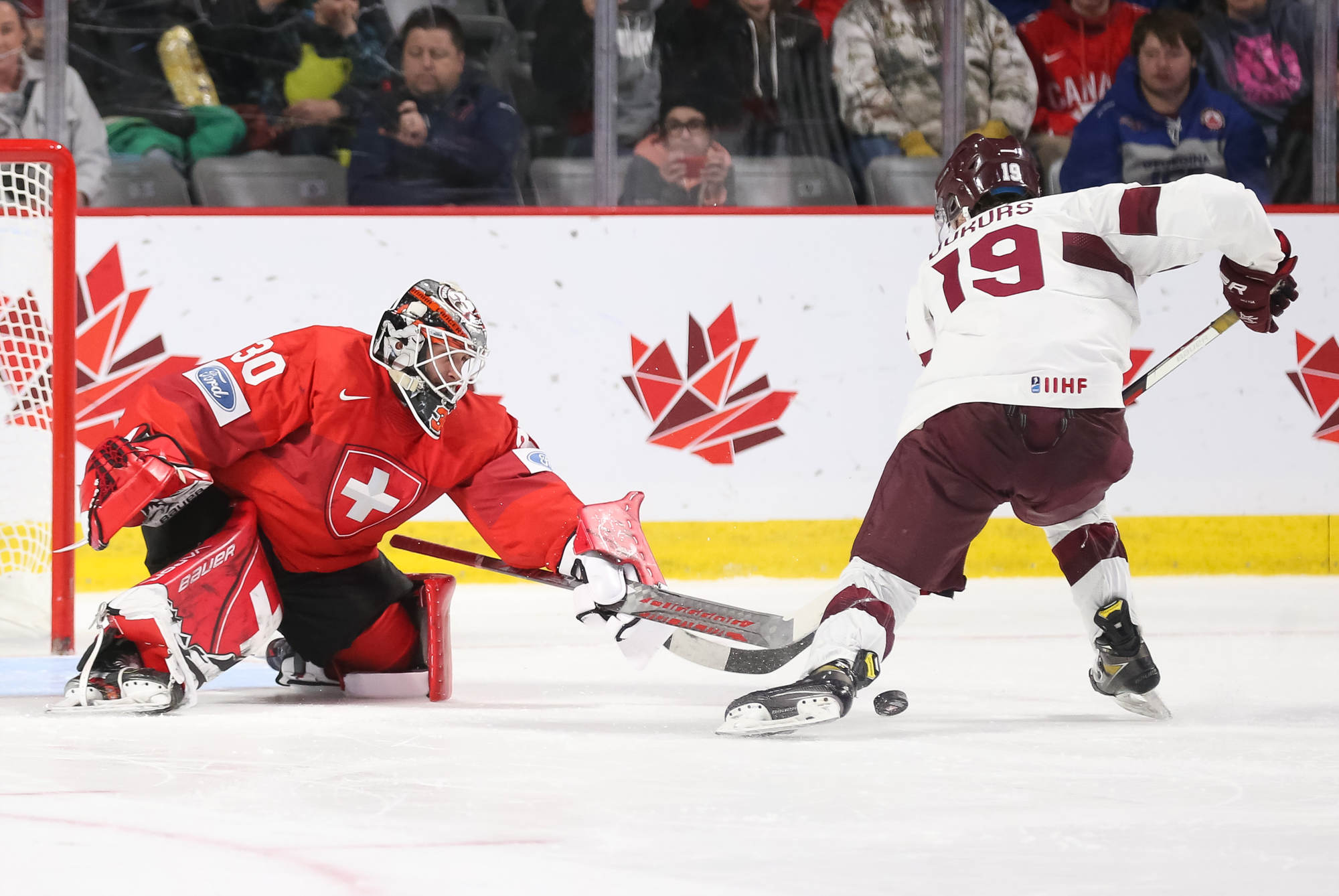 The Swiss have now won two consecutive games in extra time. The Latvians, who finished seventh at the 2022 World Juniors, gave no quarter, much as in in their 5-2 Day One loss to the Americans. But unfortunately, they let their 2-1 lead versus Switzerland slip away in the dying stage of the third period.