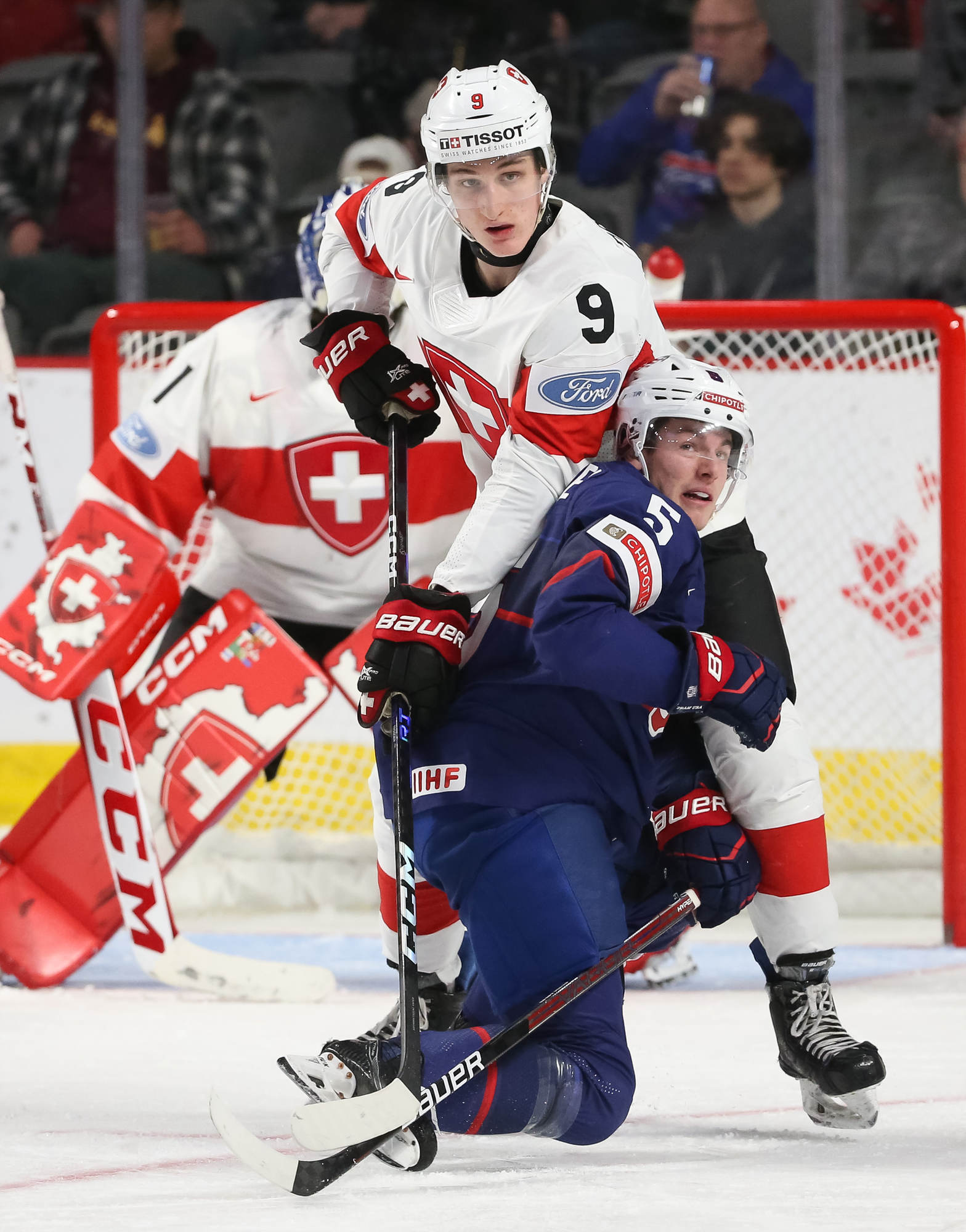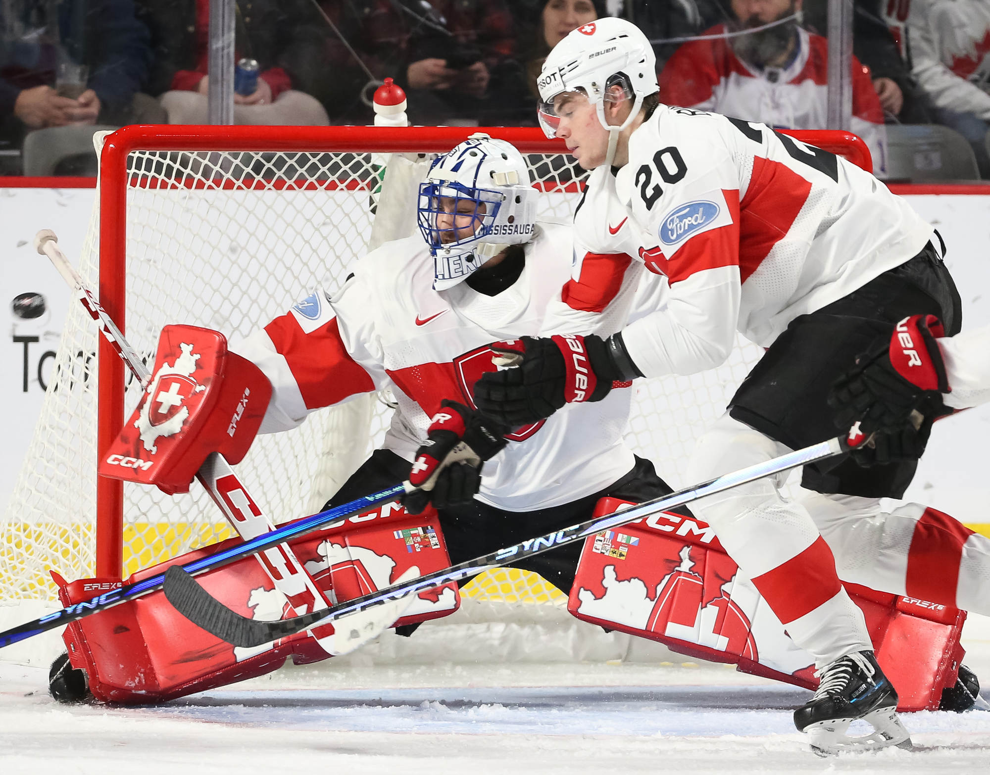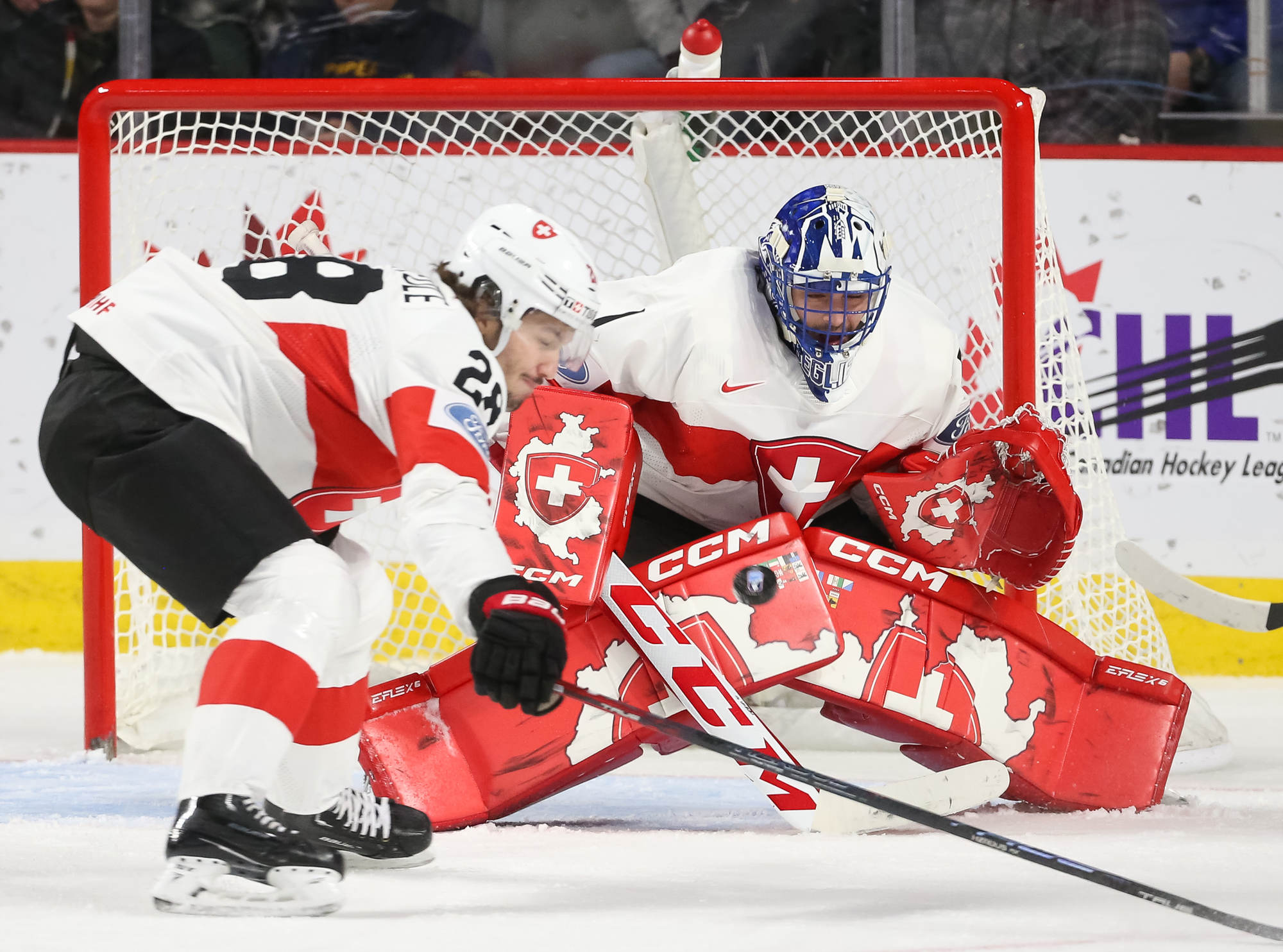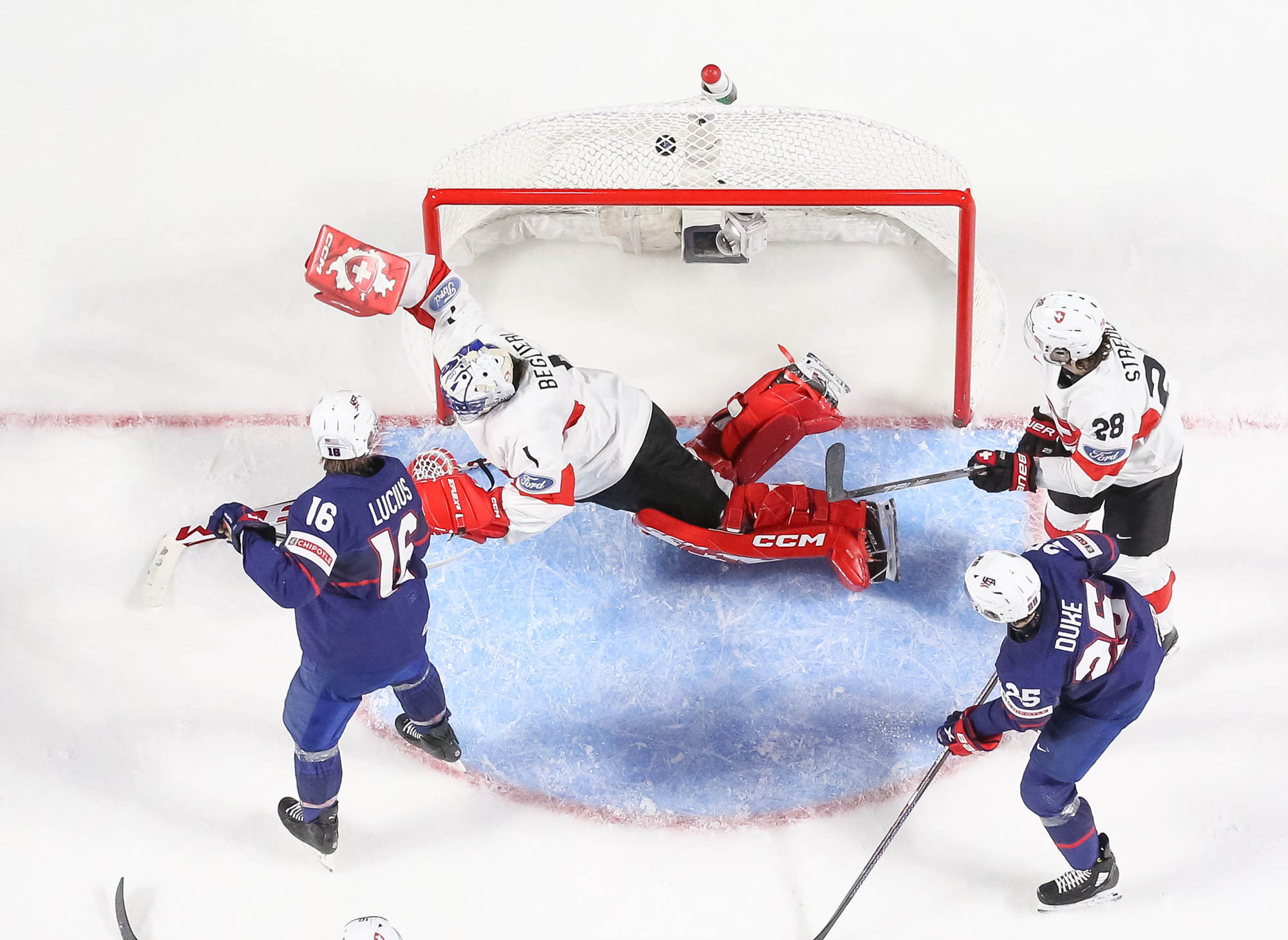 The Swiss, who had already wrapped up their quarter-final berth, gave top goalie Kevin Pasche the night off. Starting instead was World Junior rookie Alessio Beglieri, an 18-year-old Biel-Bienne product who plays for the OHL’s Mississauga Steelheads. The U.S.’s Trey Augustine, who made 15 saves in the opening 5-2 win over Latvia, got his second start.