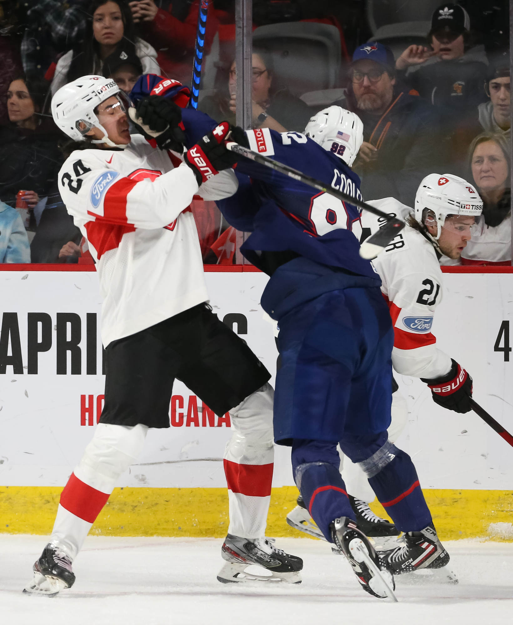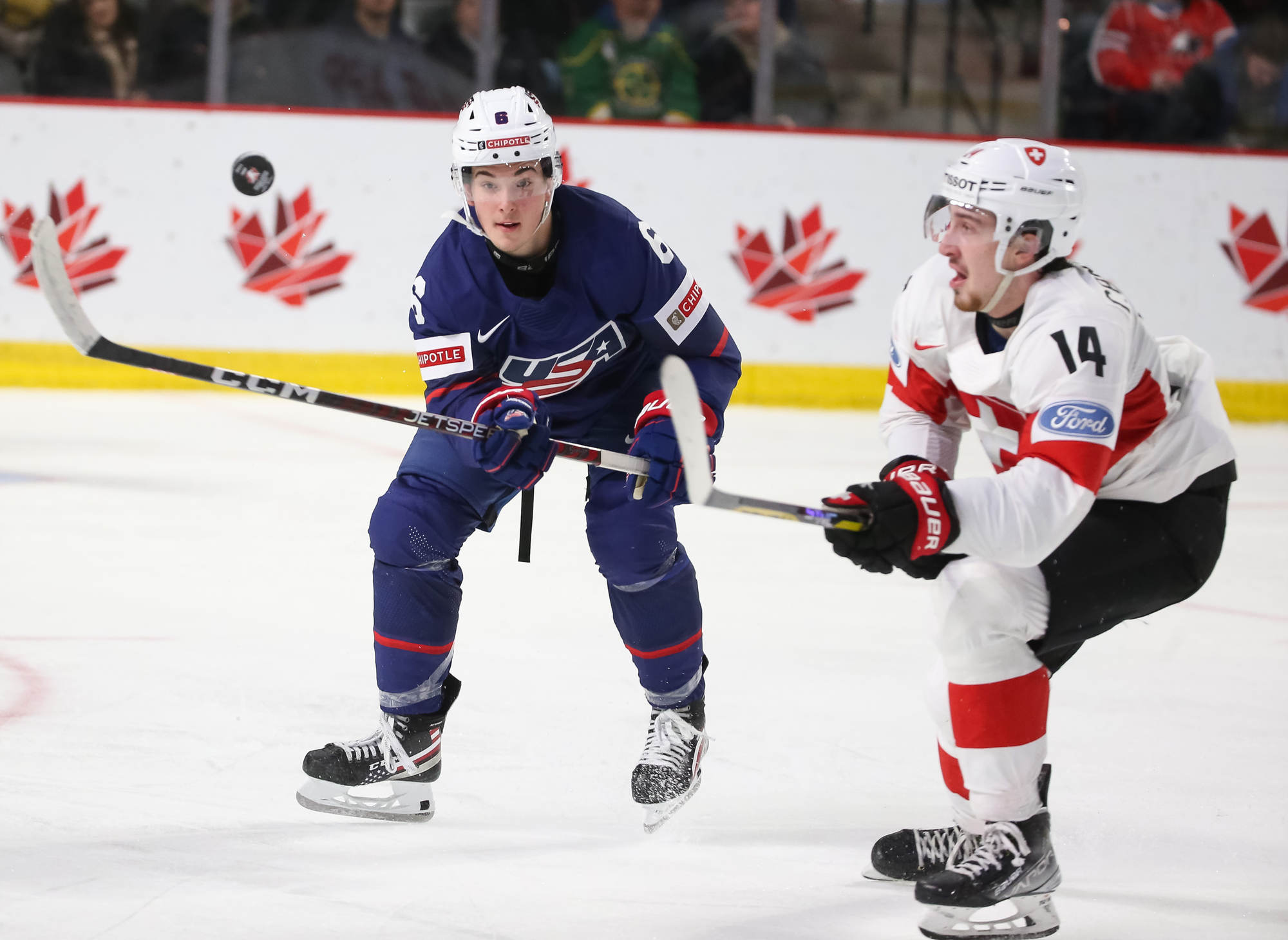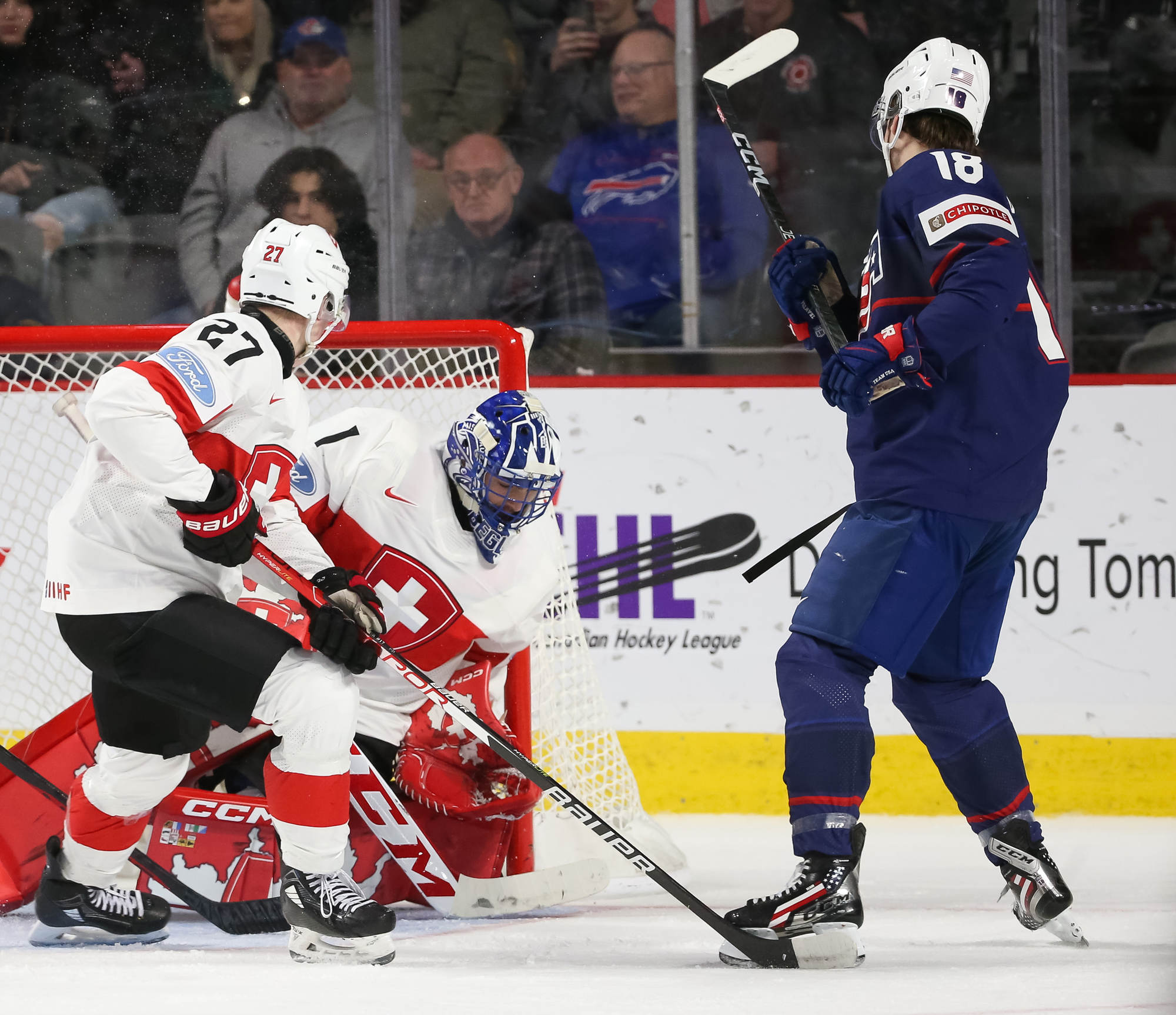 In the third period, the U.S. remained dominant with its puck possession. Hughes added a fifth goal with a top-corner snipe from the right faceoff circle at 13:03. Switzerland only registered its first shot of the period moments after that.