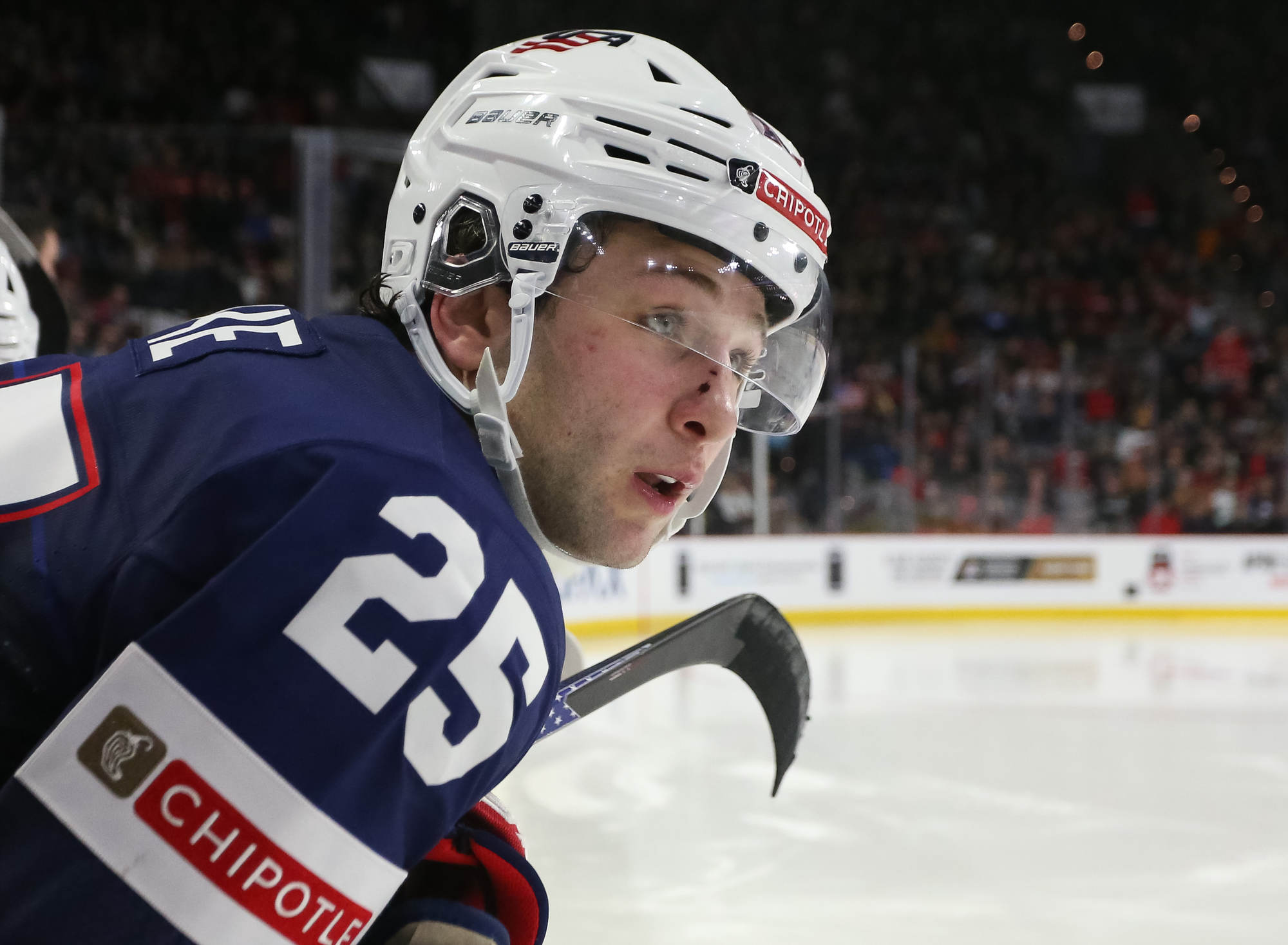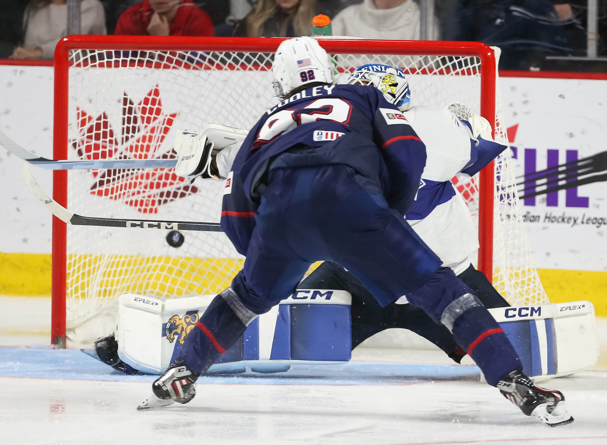 In the third period, Cooley and Snuggerud hooked up on a dynamic rush, and Cooley broke to the net to put Snuggerud's rebound past Koskenvuo at 3:55. The U.S. had some breathing room at 5-2.