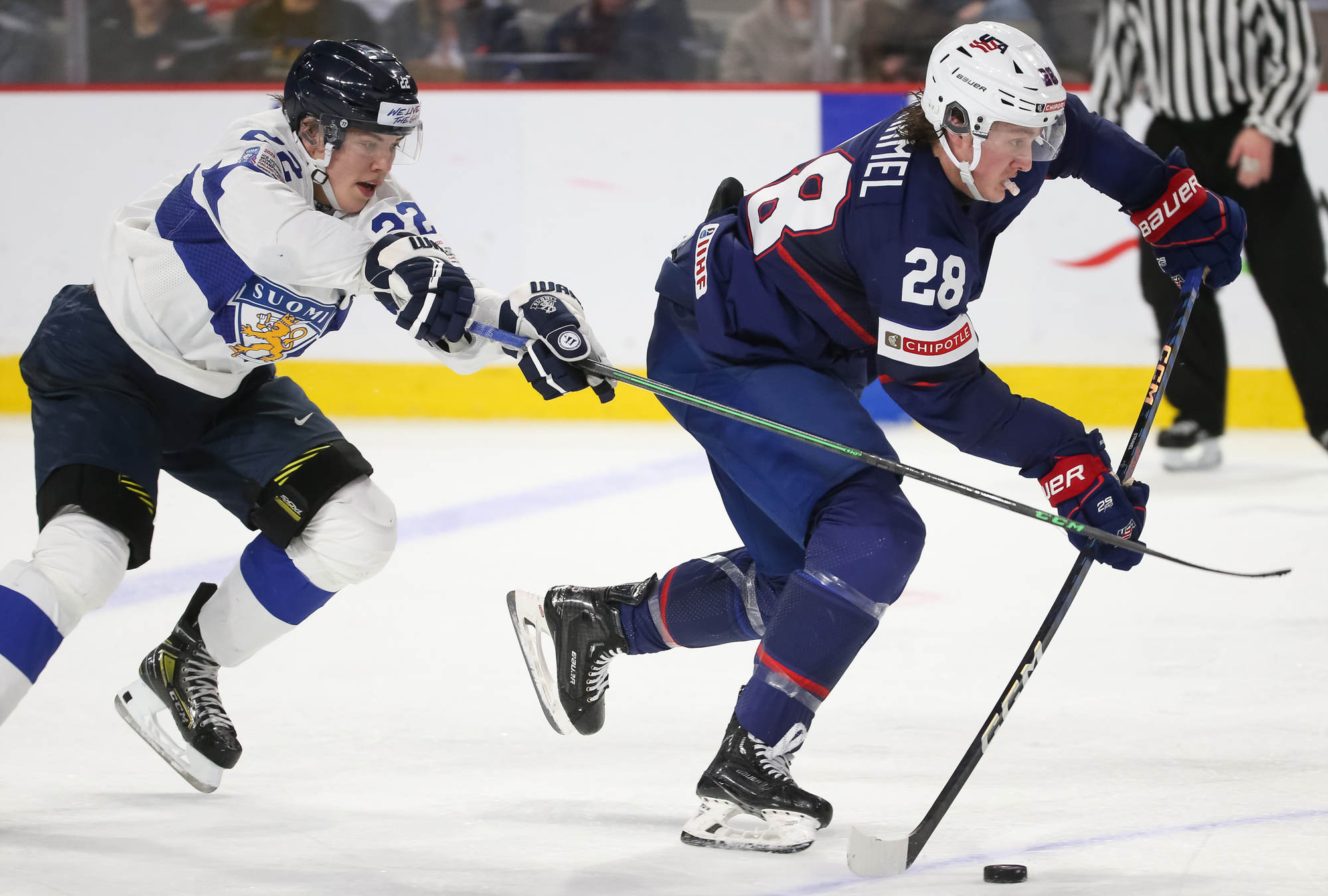 The Finns beat the U.S. 3-2 in the 2019 gold medal game in Vancouver, the only time these rivals have played for gold. The U.S. eliminated Finland from gold medal contention with a 4-3 semi-final win at the 2021 World Juniors in Edmonton before beating Canada 2-0 for the title.