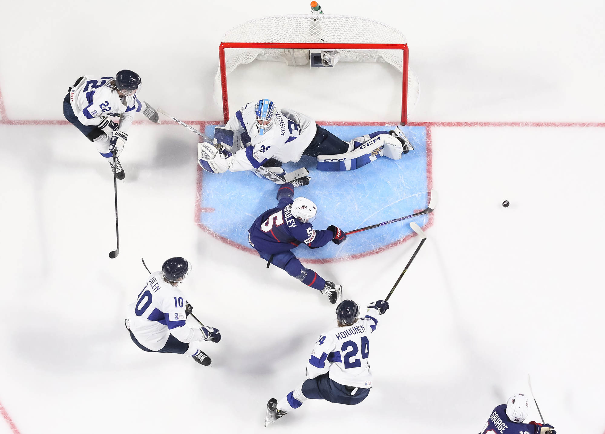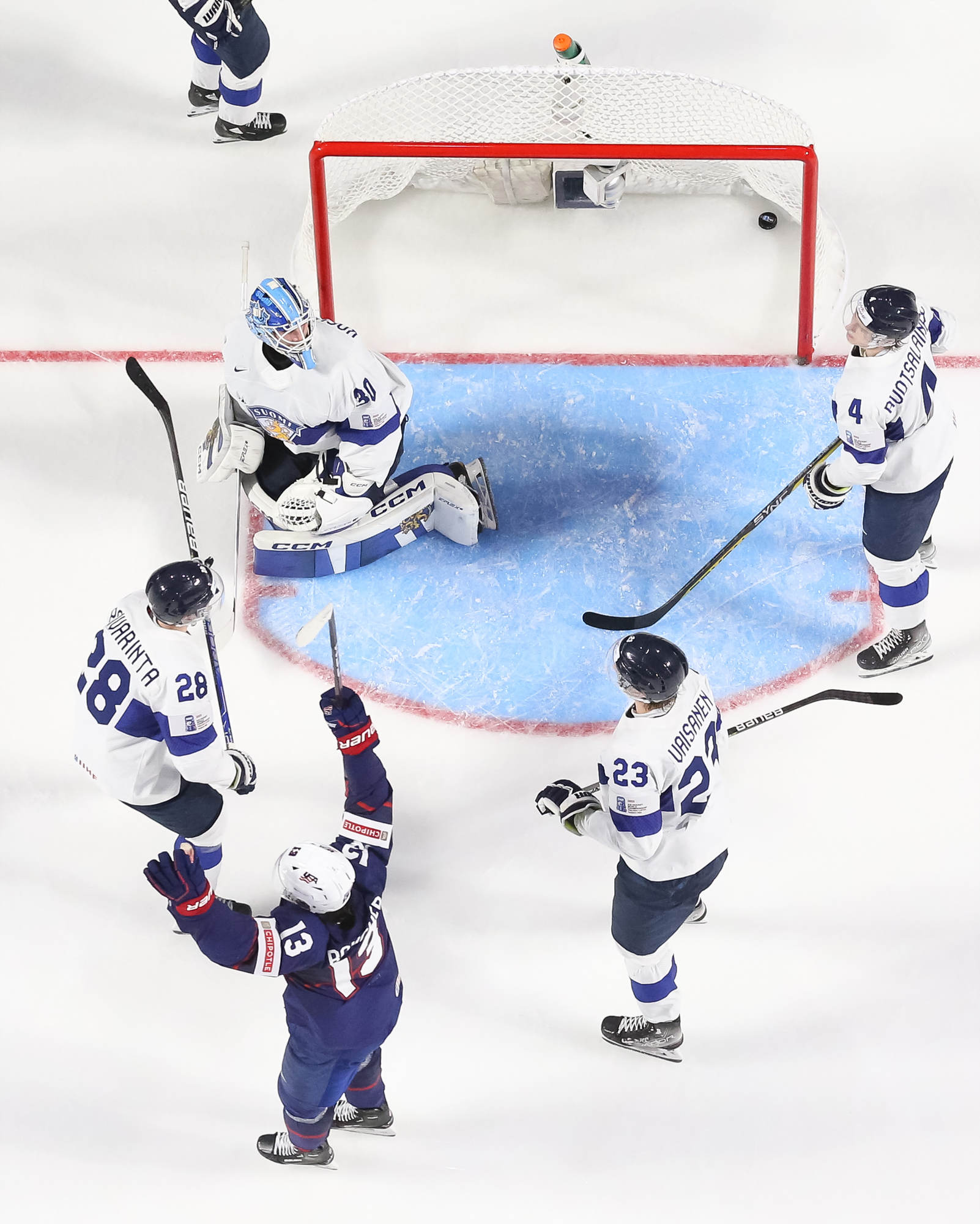 Finland cut the deficit to 4-2 just 27 seconds later. Hameenaho, standing at the edge of the crease, capitalized on a fortunate bounce off a skate to whack the puck into the open side.