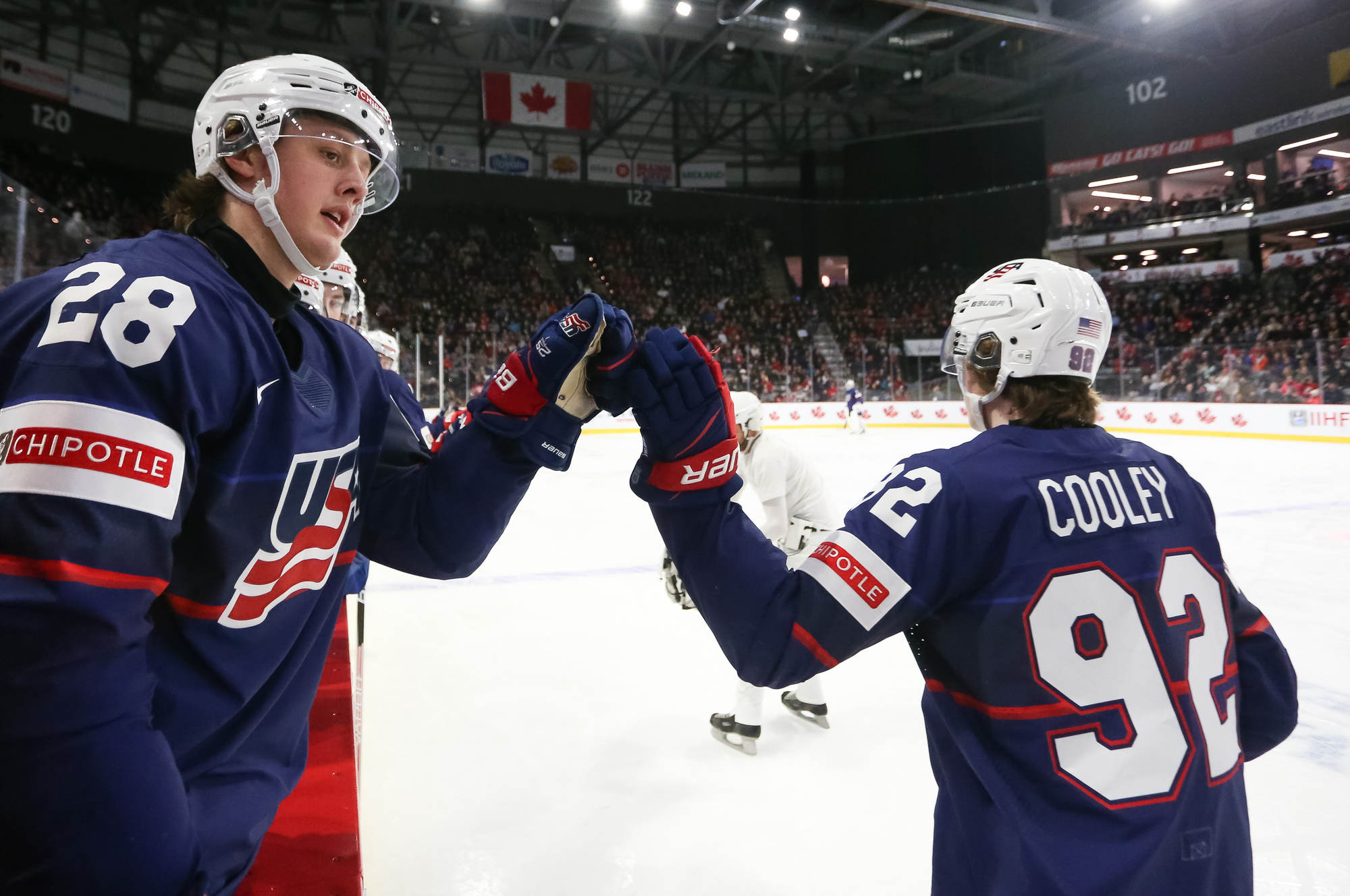 Versus Germany, the top U.S. line stayed red-hot. Logan Cooley notched a hat trick and an assist, Cutter Gauther had two goals and an assist, and Jimmy Snuggerud added a goal and two assists.