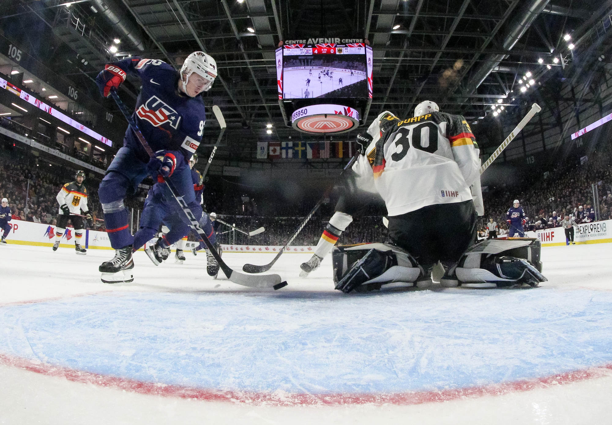 This was the first playoff meeting between the U.S. and Germany in tournament history. It was certainly memorable for the Germans, albeit not for the right reasons. The U.S. exploited its puck movement skills and picked its spots almost at will.