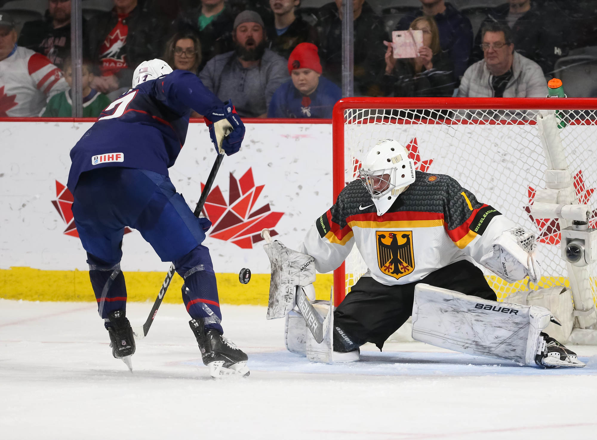 Goaltending-wise, German starter Nikita Quapp got pulled after two periods in favour of newcomer Rihards Babulis. The U.S.'s Trey Augustine had a much easier ride in the first 40 minutes and then handed over the reins to Andrew Oke. The 18-year-old Saginaw Spirit goalie's only previous World Junior experience was appearing in the first two periods of a 7-0 shutout versus Austria at the 2022 tournament in Edmonton.