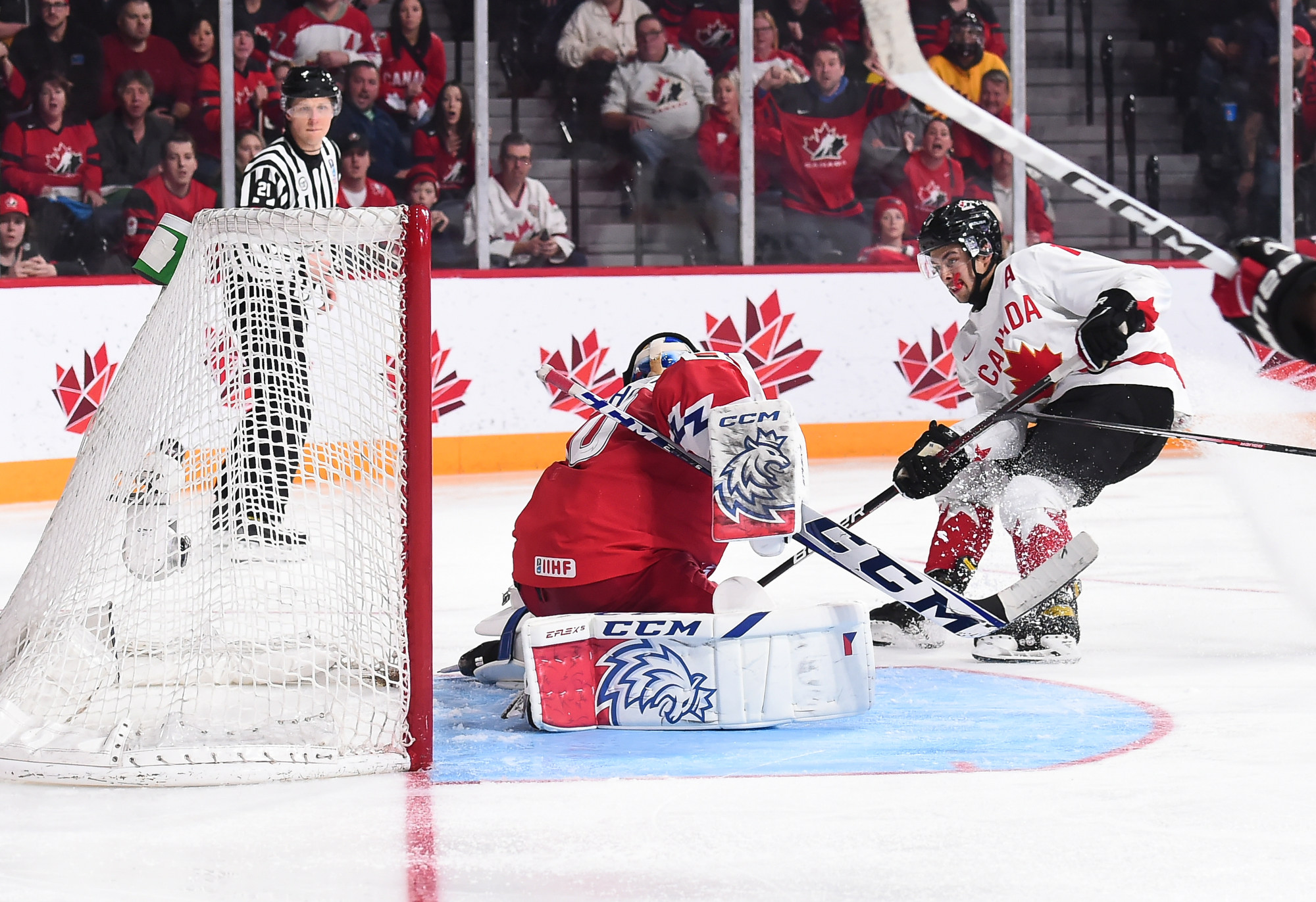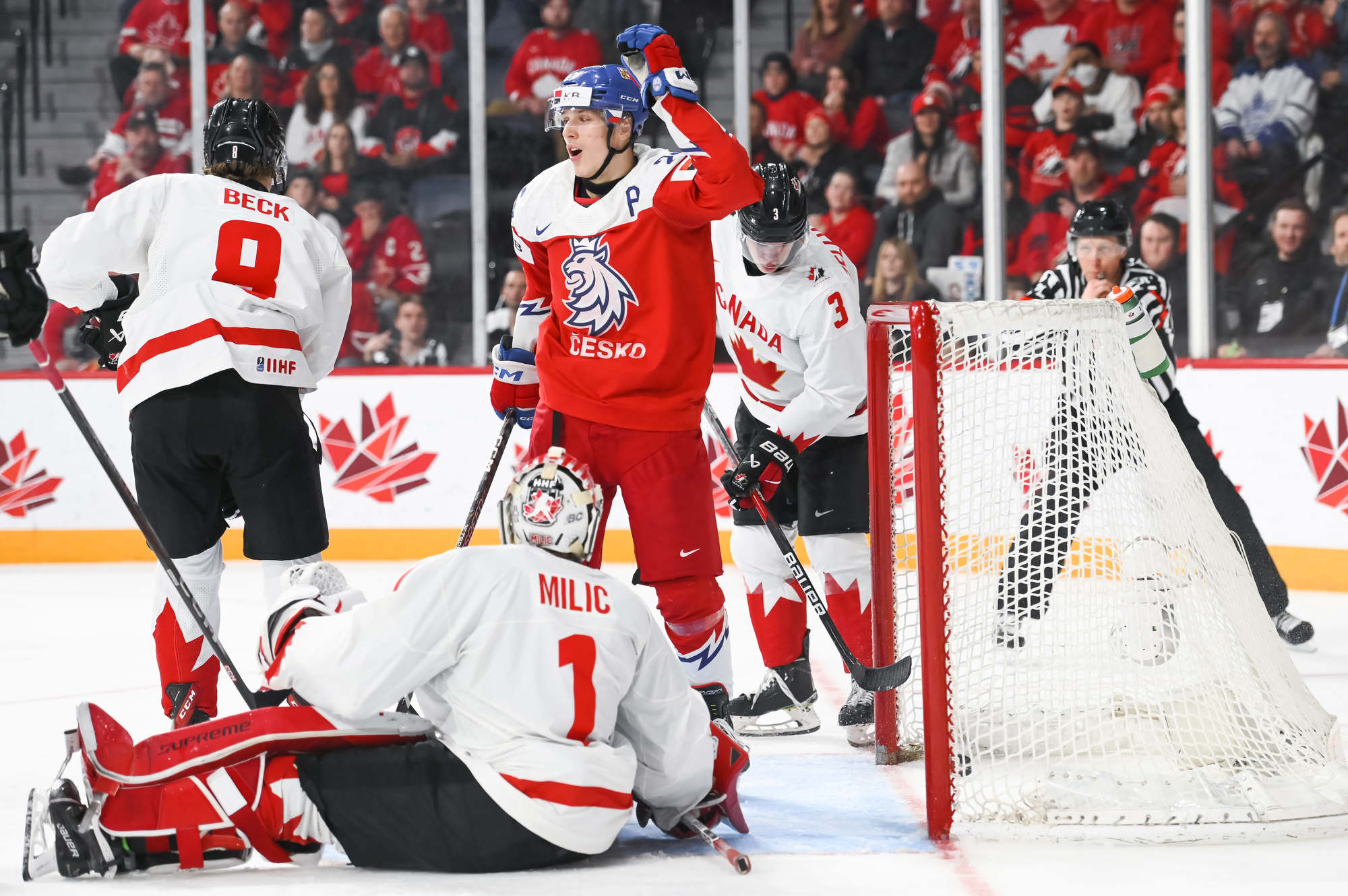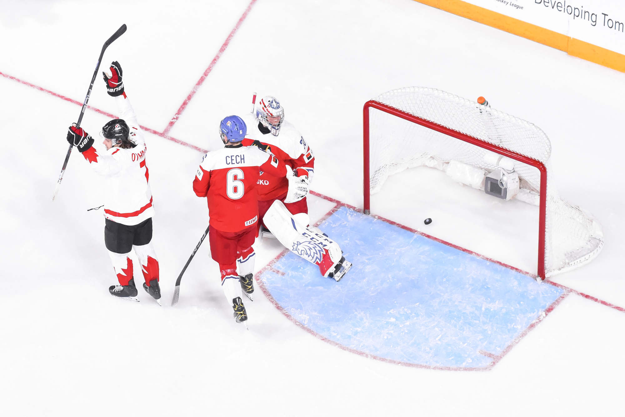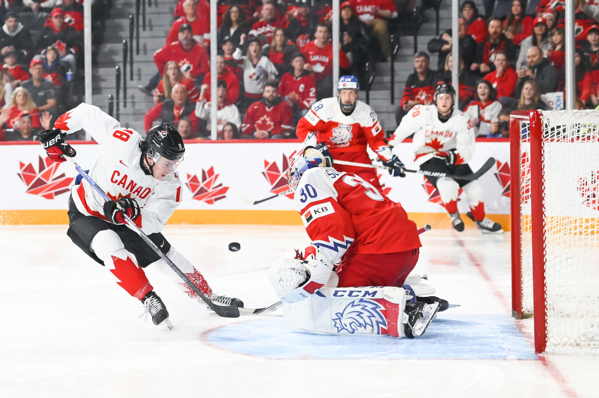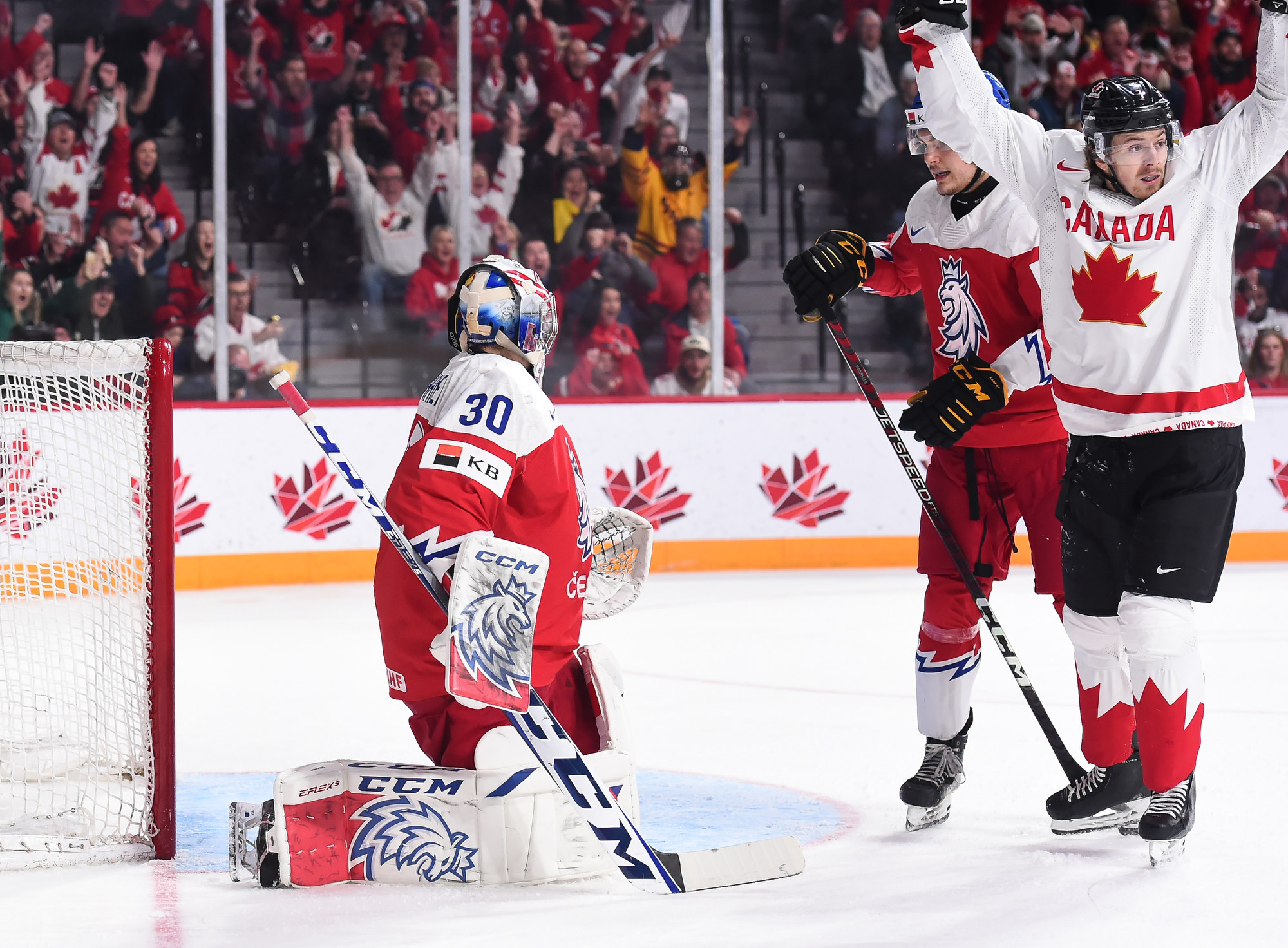 Chmelar's shot hit the post, and Kulich was right there to knock the puck into the open net at 12:30. Just 54 seconds later, it was a tie game. Tomas Hamara's long shot was tipped in front by Jakub Kos, just past the outstretched skate of Milic, and Canada's strategy had backfired.