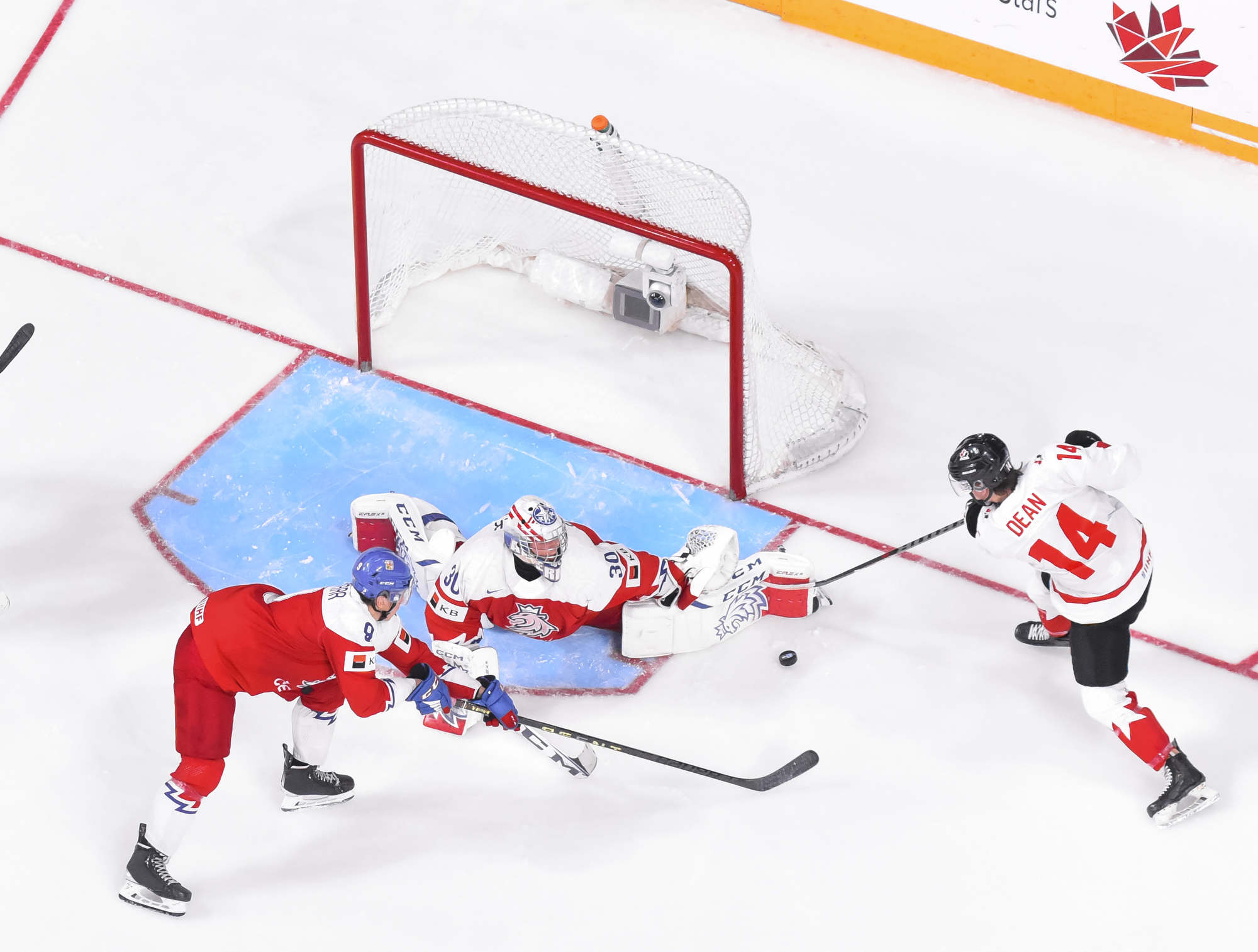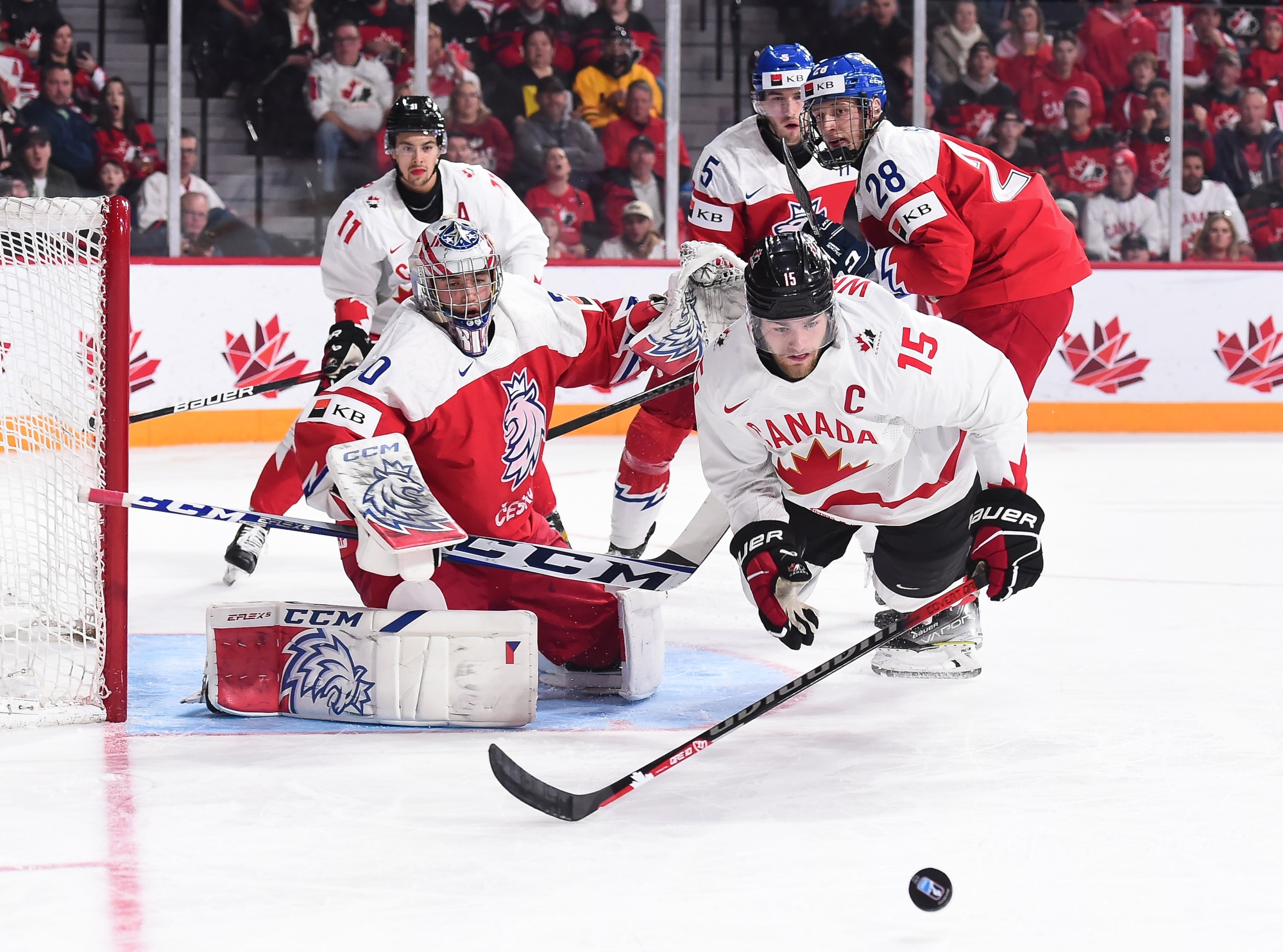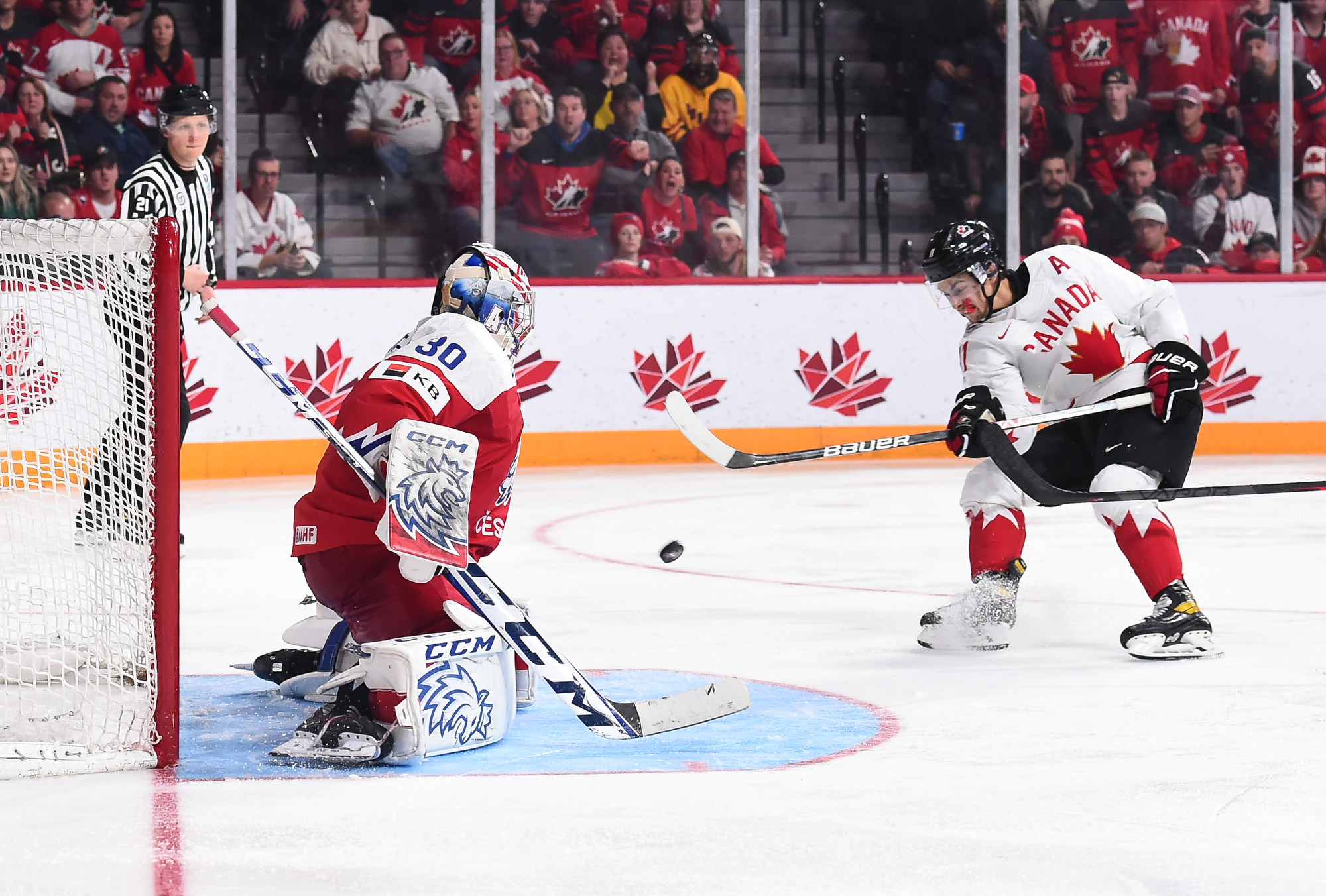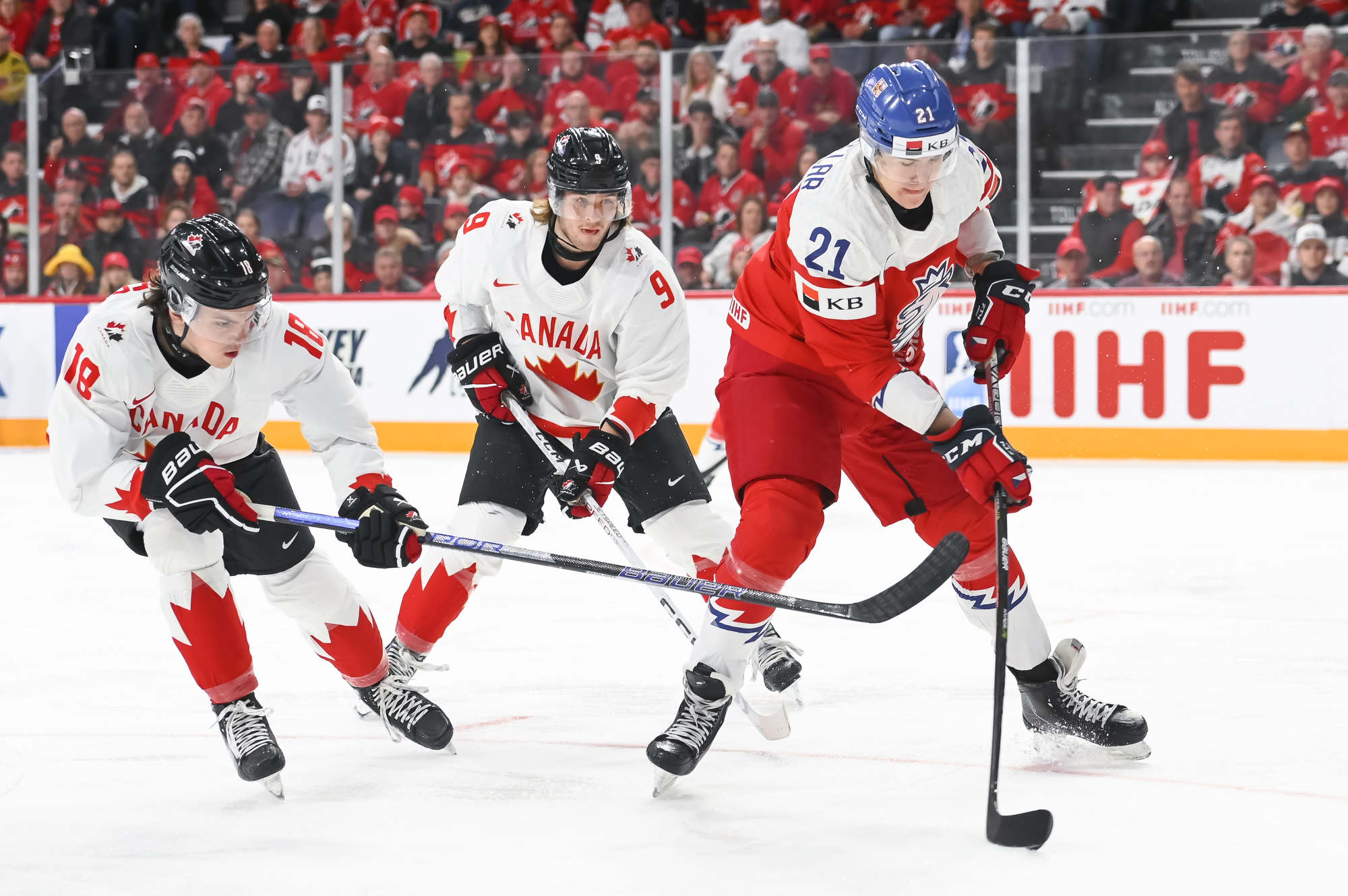 Chmelar's shot hit the post, and Kulich was right there to knock the puck into the open net at 12:30. Just 54 seconds later, it was a tie game. Tomas Hamara's long shot was tipped in front by Jakub Kos, just past the outstretched skate of Milic, and Canada's strategy had backfired.