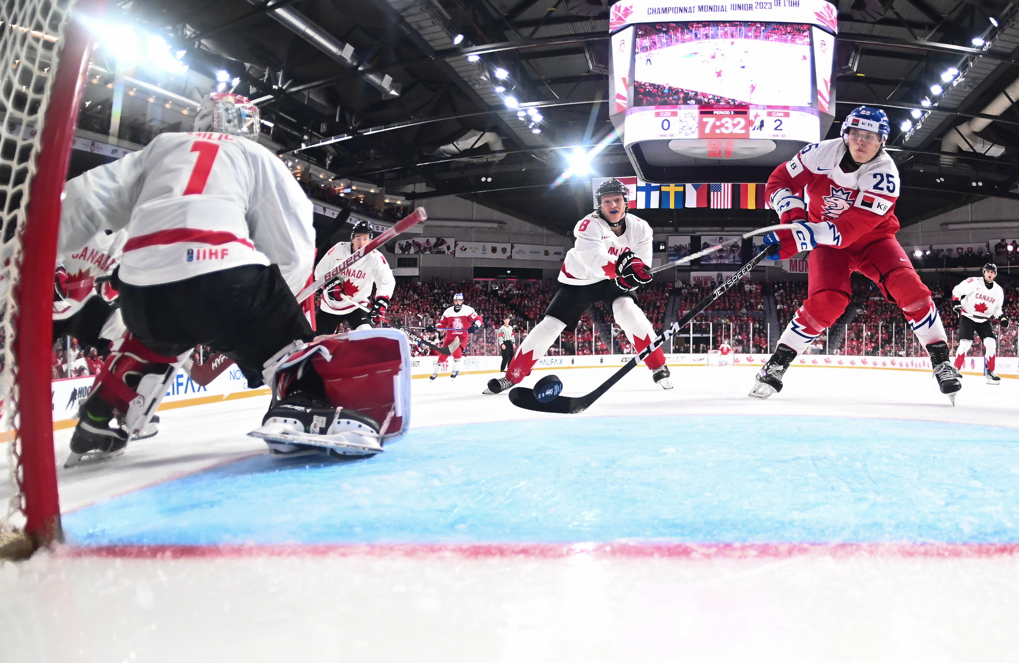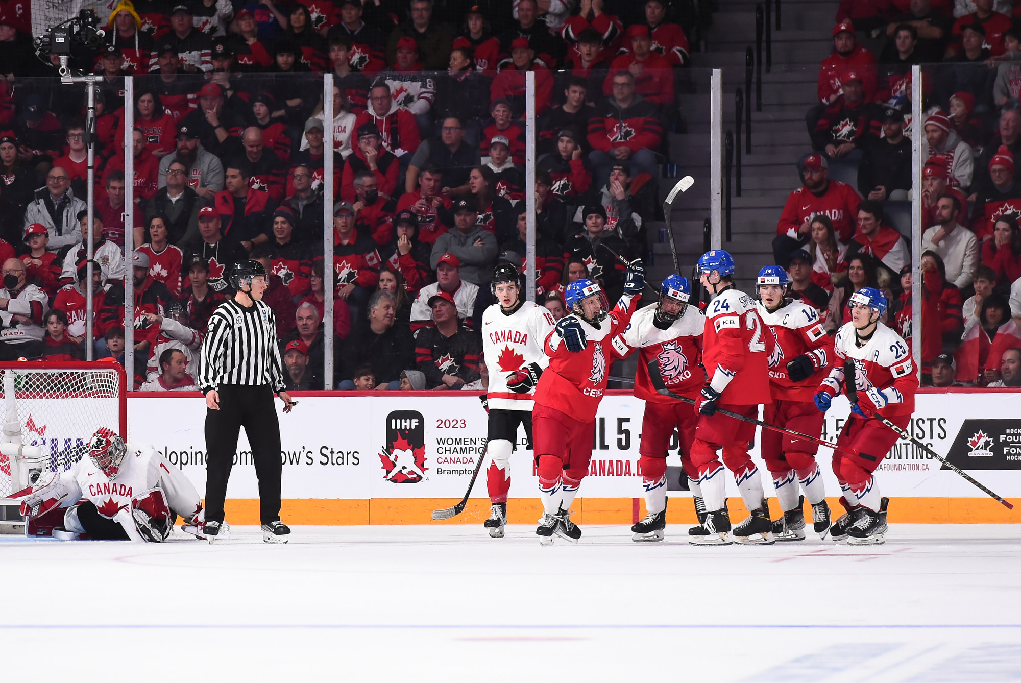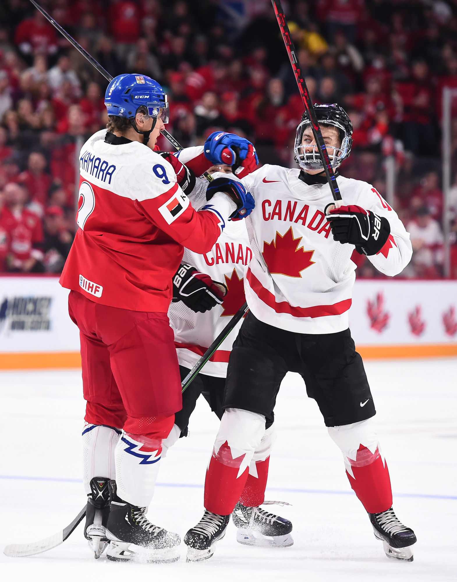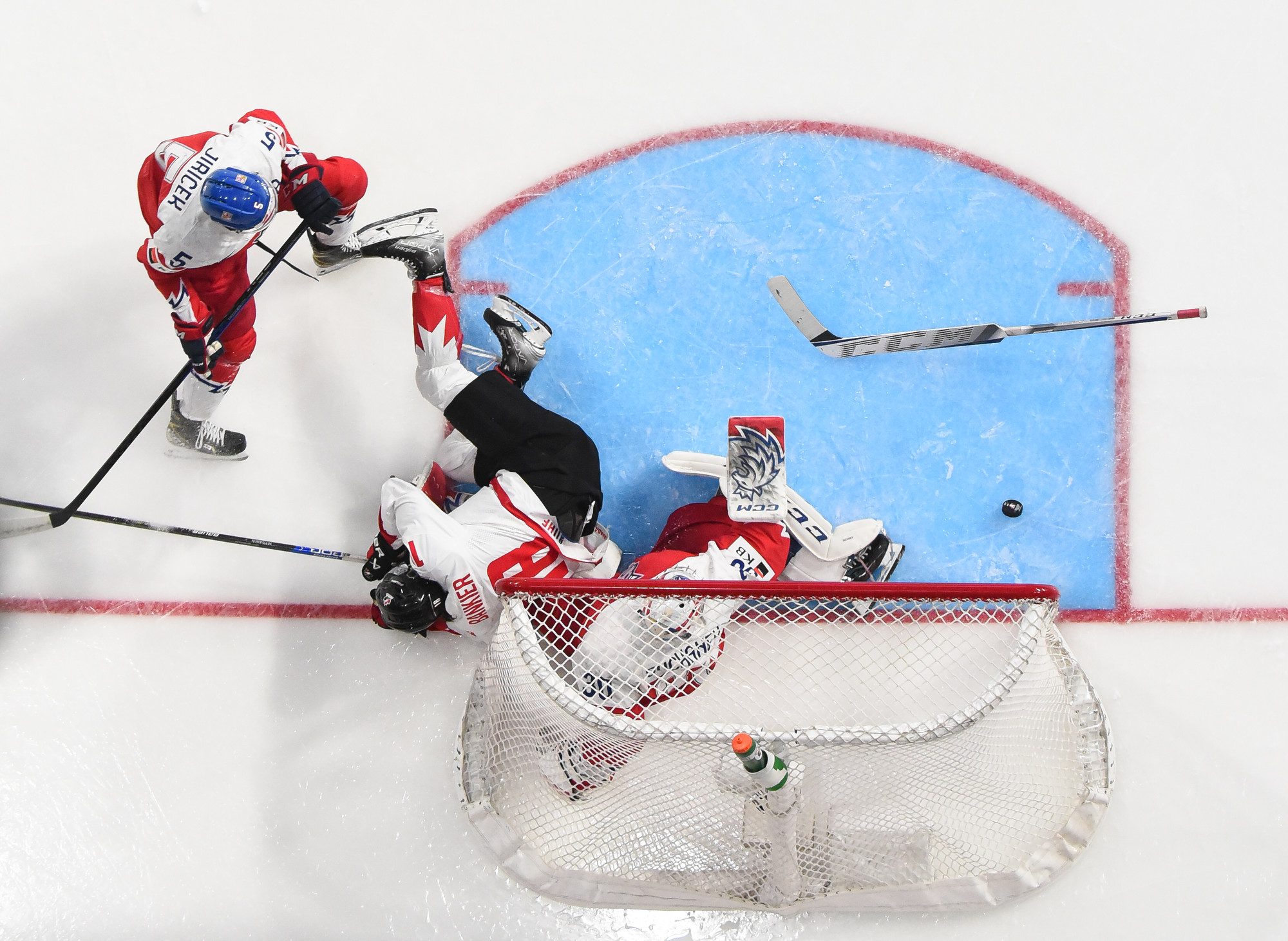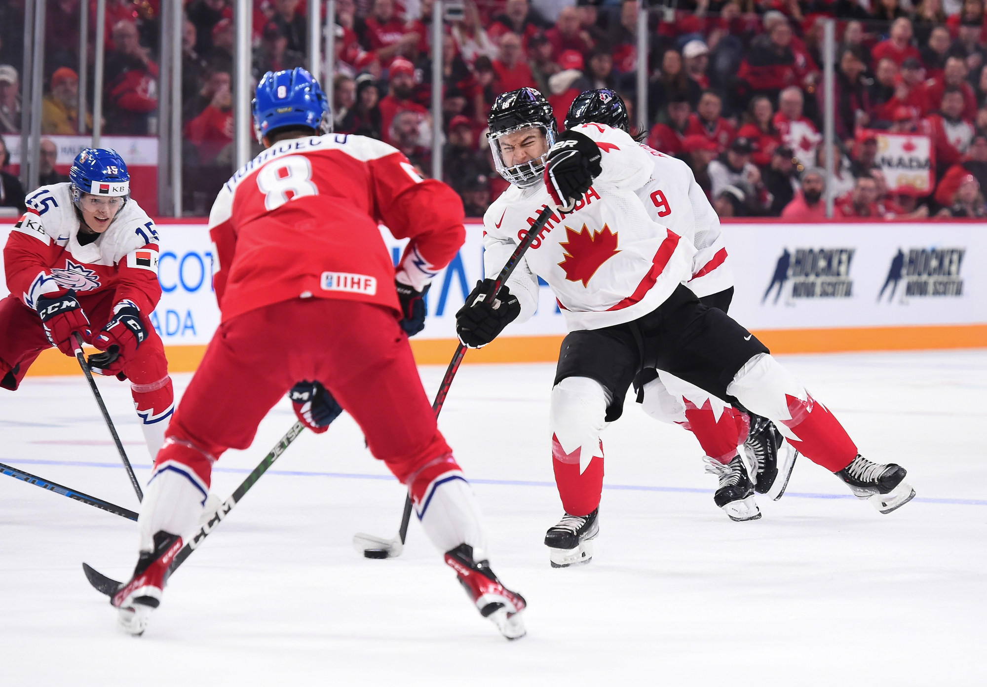 Chmelar's shot hit the post, and Kulich was right there to knock the puck into the open net at 12:30. Just 54 seconds later, it was a tie game. Tomas Hamara's long shot was tipped in front by Jakub Kos, just past the outstretched skate of Milic, and Canada's strategy had backfired.