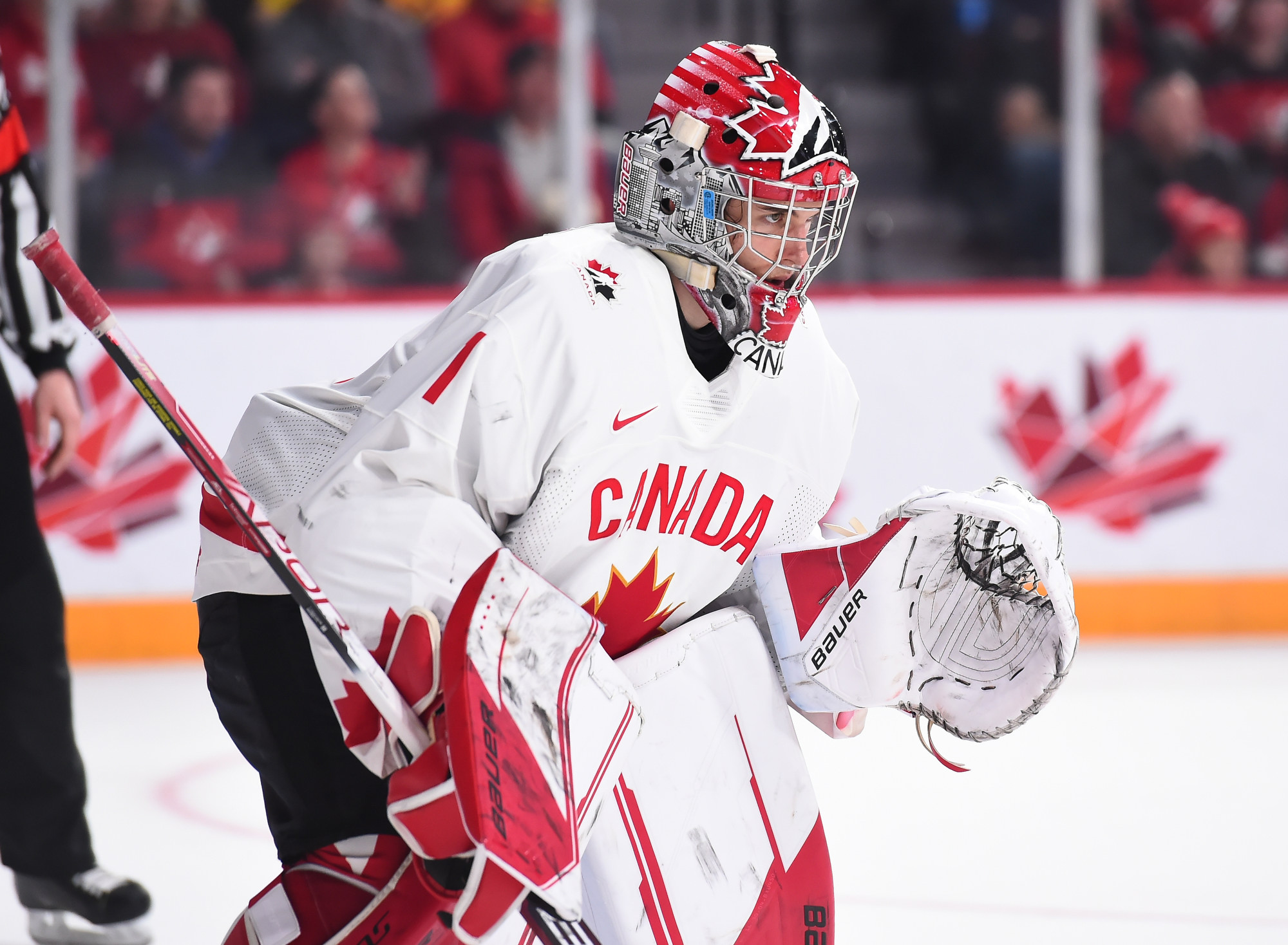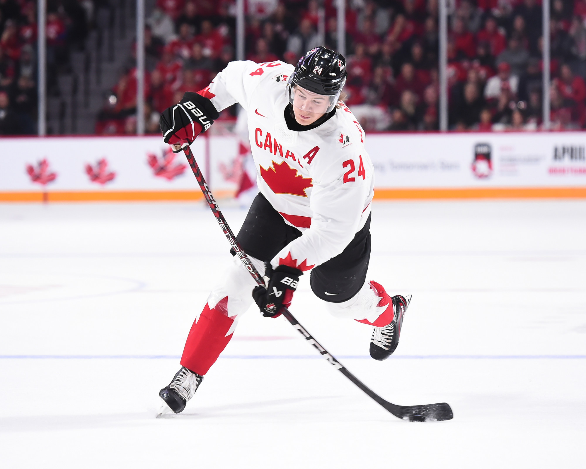 Canada once again had a nervous start, as it did yesterday against the U.S., and it could have trailed early had Gabriel Szturc not wired a shot off the post in behind Milic. But this time the nerves were taken care of ten minutes in thanks to the player of the period, Othmann, who was skating in his final junior game.