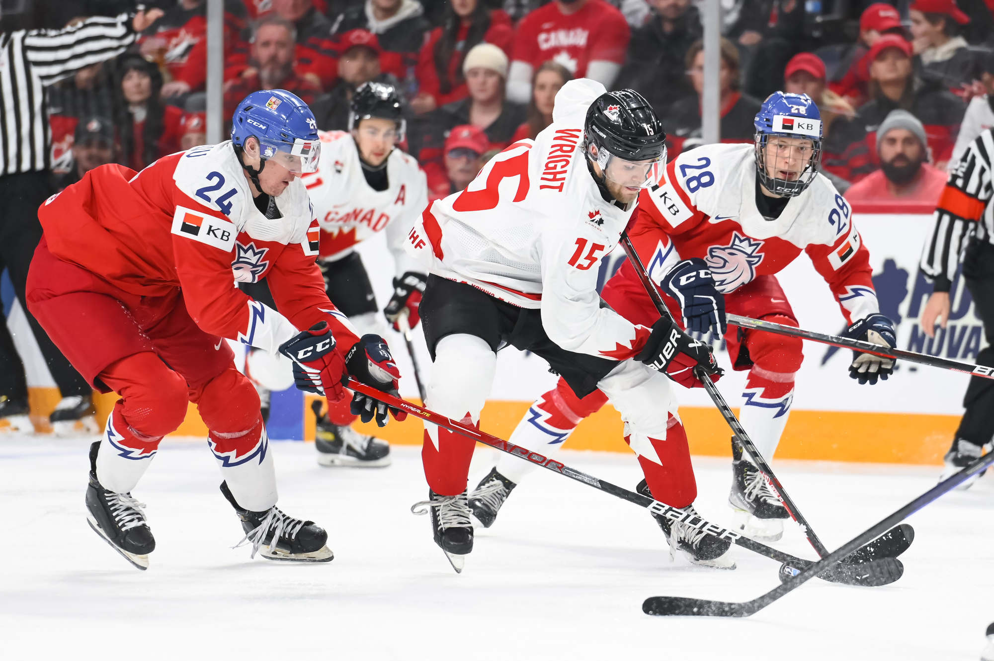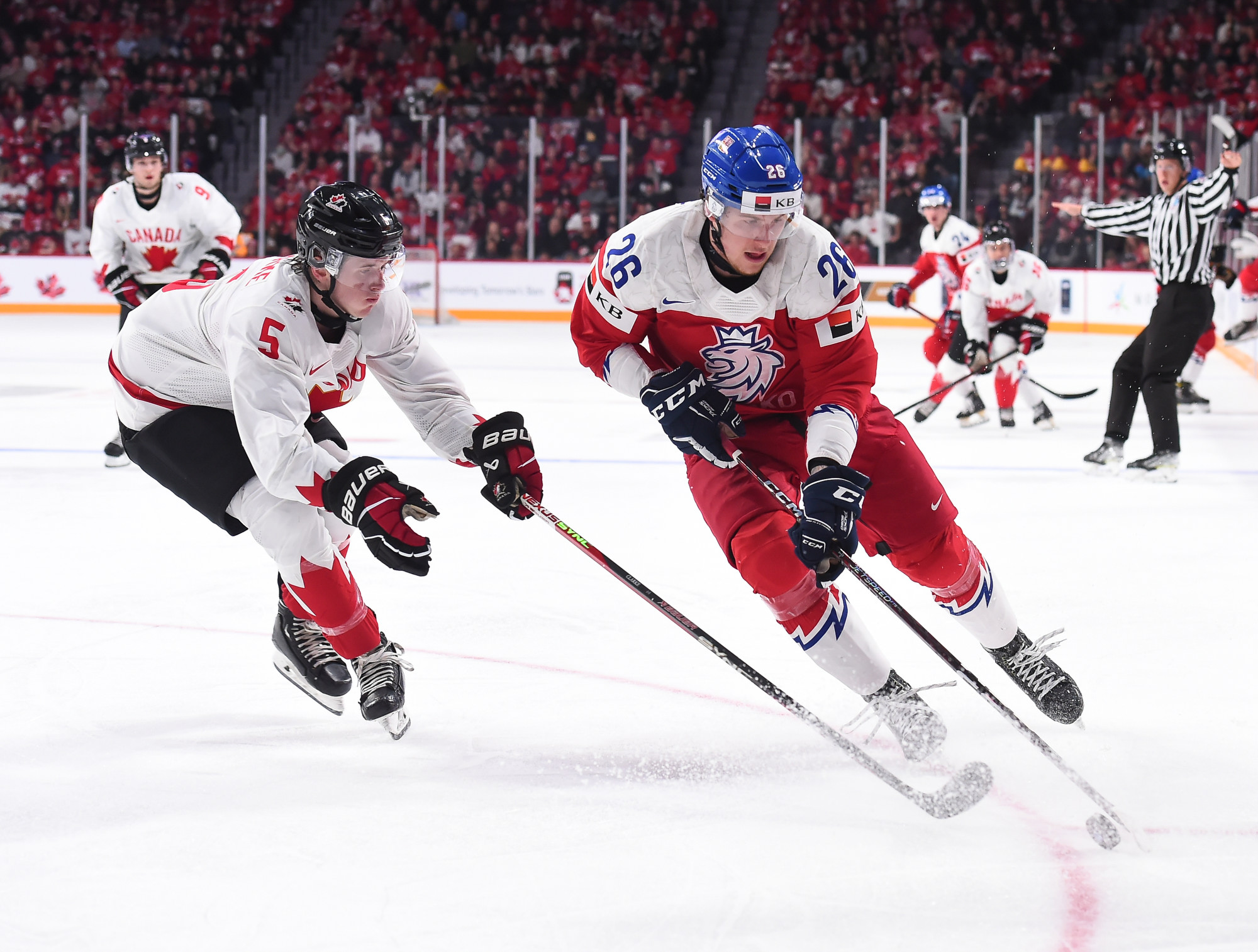 Canada showed no nerves in the second, and although the Czechs got the early power play, Canada had the best chance. A mix-up at the Canadian blue line between Czechs allowed Zack Ostapchuk to dash the length of the ice, but Suchanek made a stellar toe save to keep it a one-goal game.