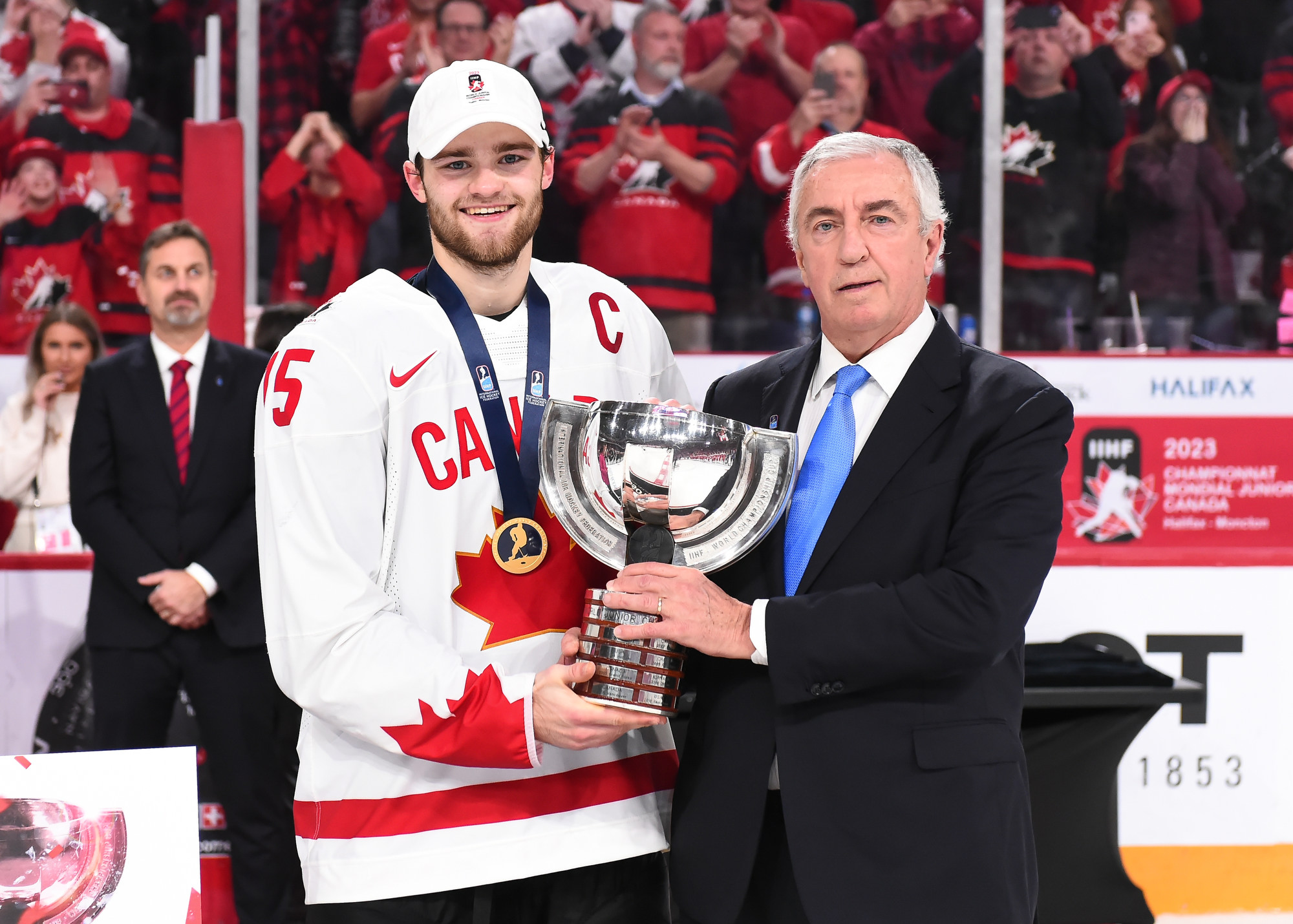 Dylan Guenther scored his second goal of the game at 6:22 of the unlimited three-on-three overtime to give Canada the gold medal at the 2023 IIHF World Junior Championship in Halifax. He took a give-and-go pass from Joshua Roy on a two-on-one started when Jiri Kulich lost the puck crossing the Canada blue line, and finished with a perfect re-direct into the open side of the net.