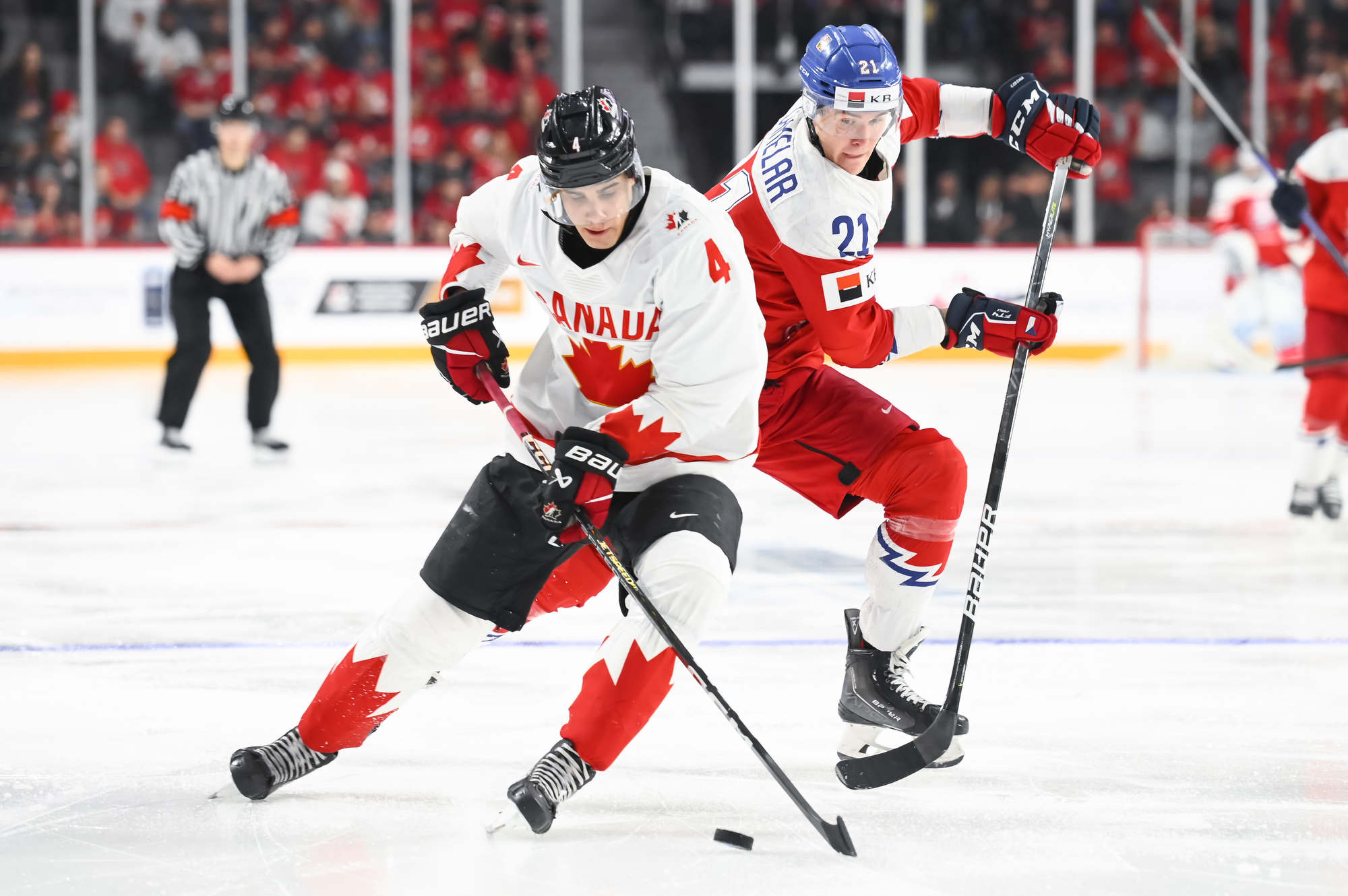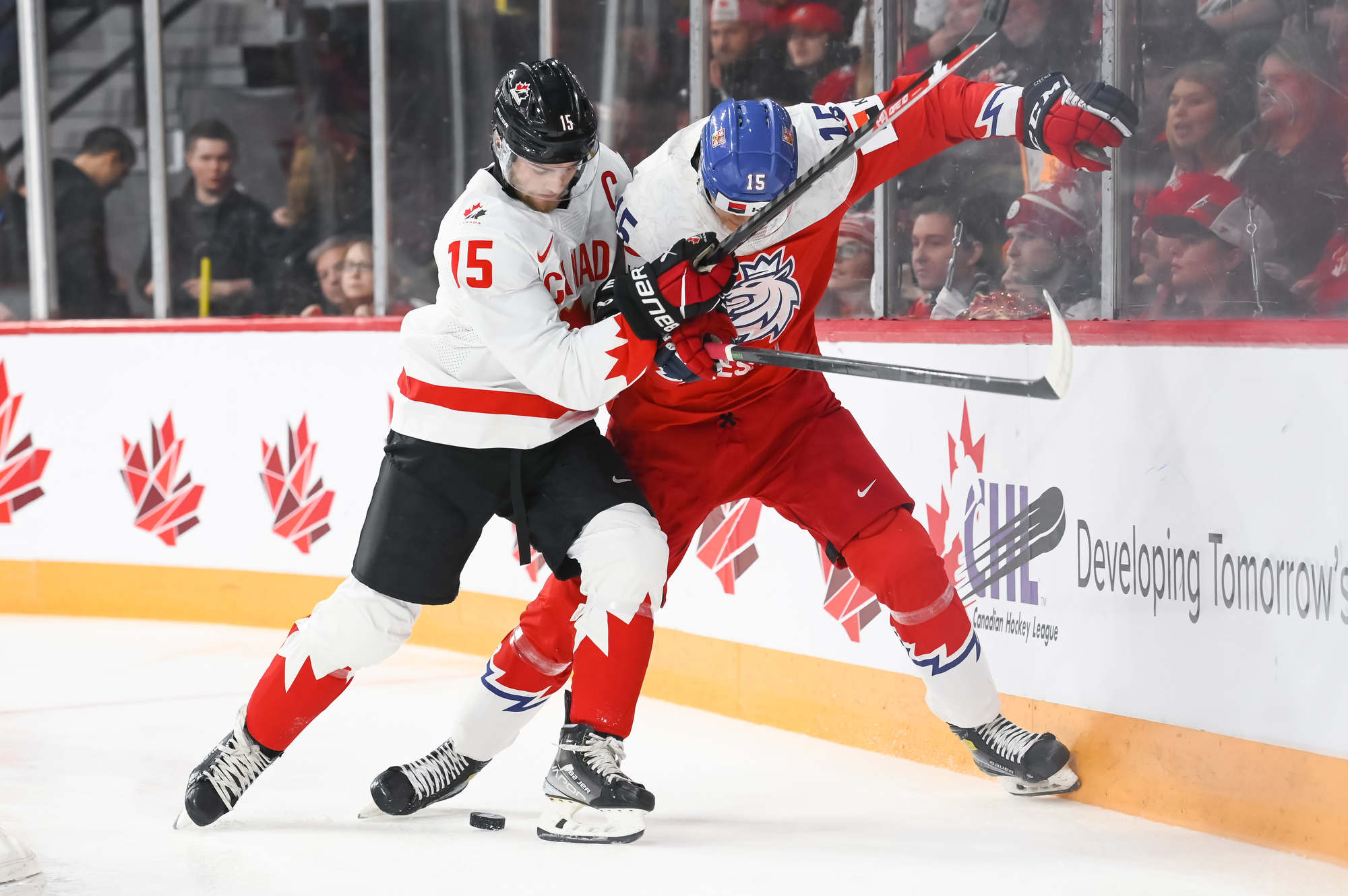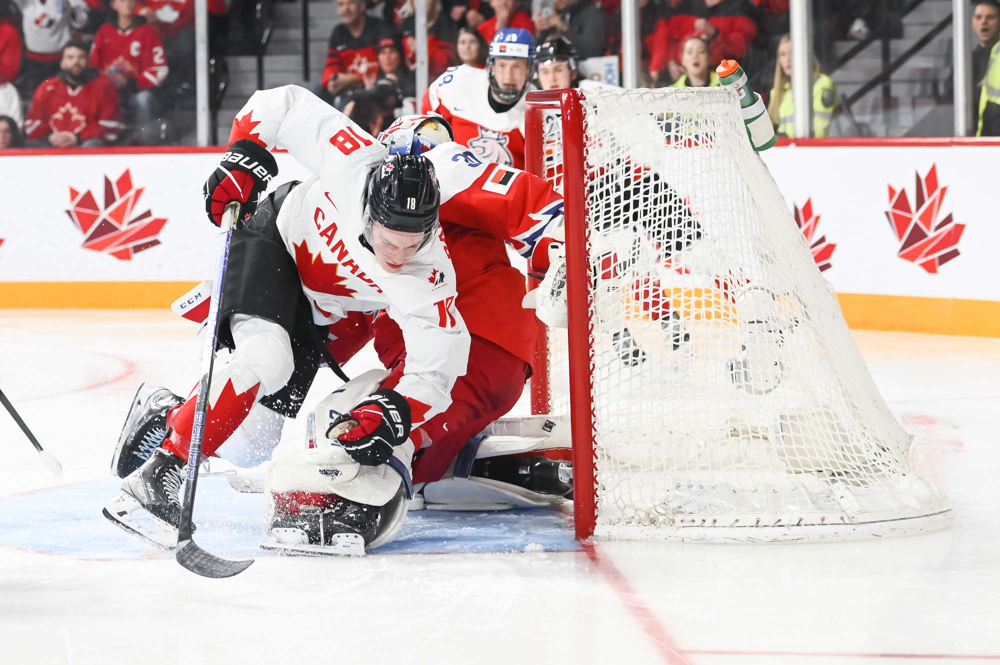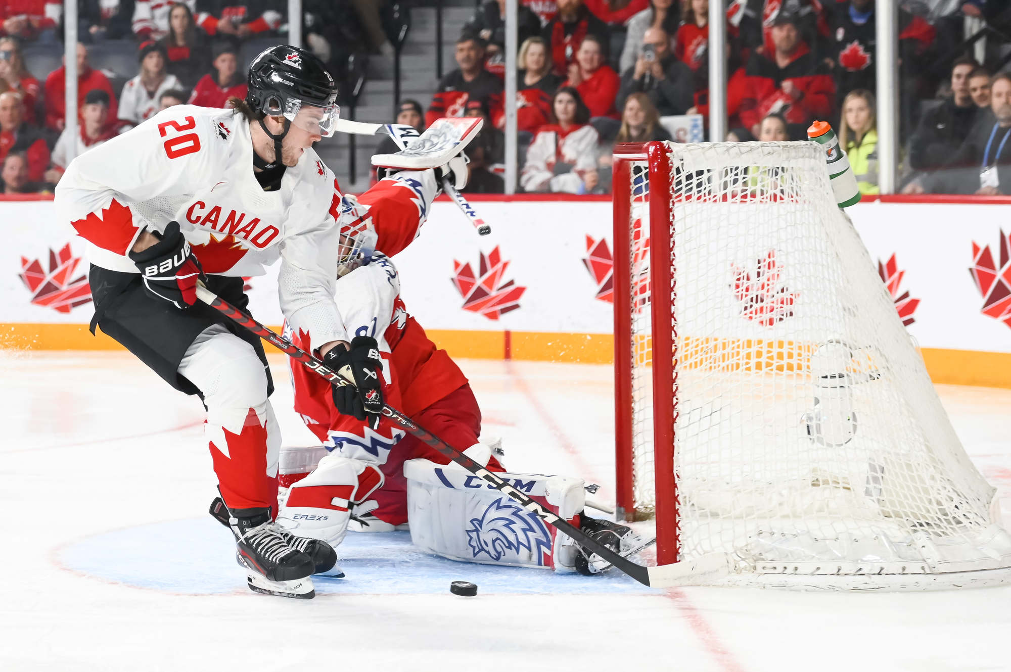 Later in period Othmann brought the fans to their feet when he hammered Jaroslav Chmelar with a clean but heavy hit along the boards in the Czechia end. Soon after, Milic showed his worth again, stoning Martin Rysavy on a breakaway to keep it 1-0 after 20 minutes.