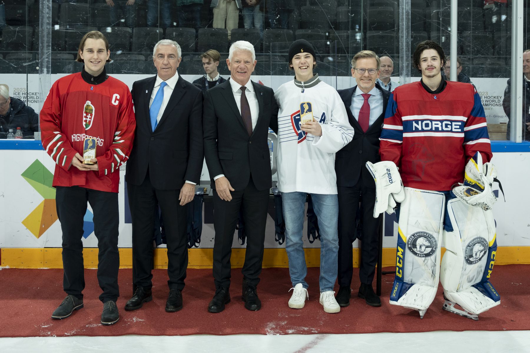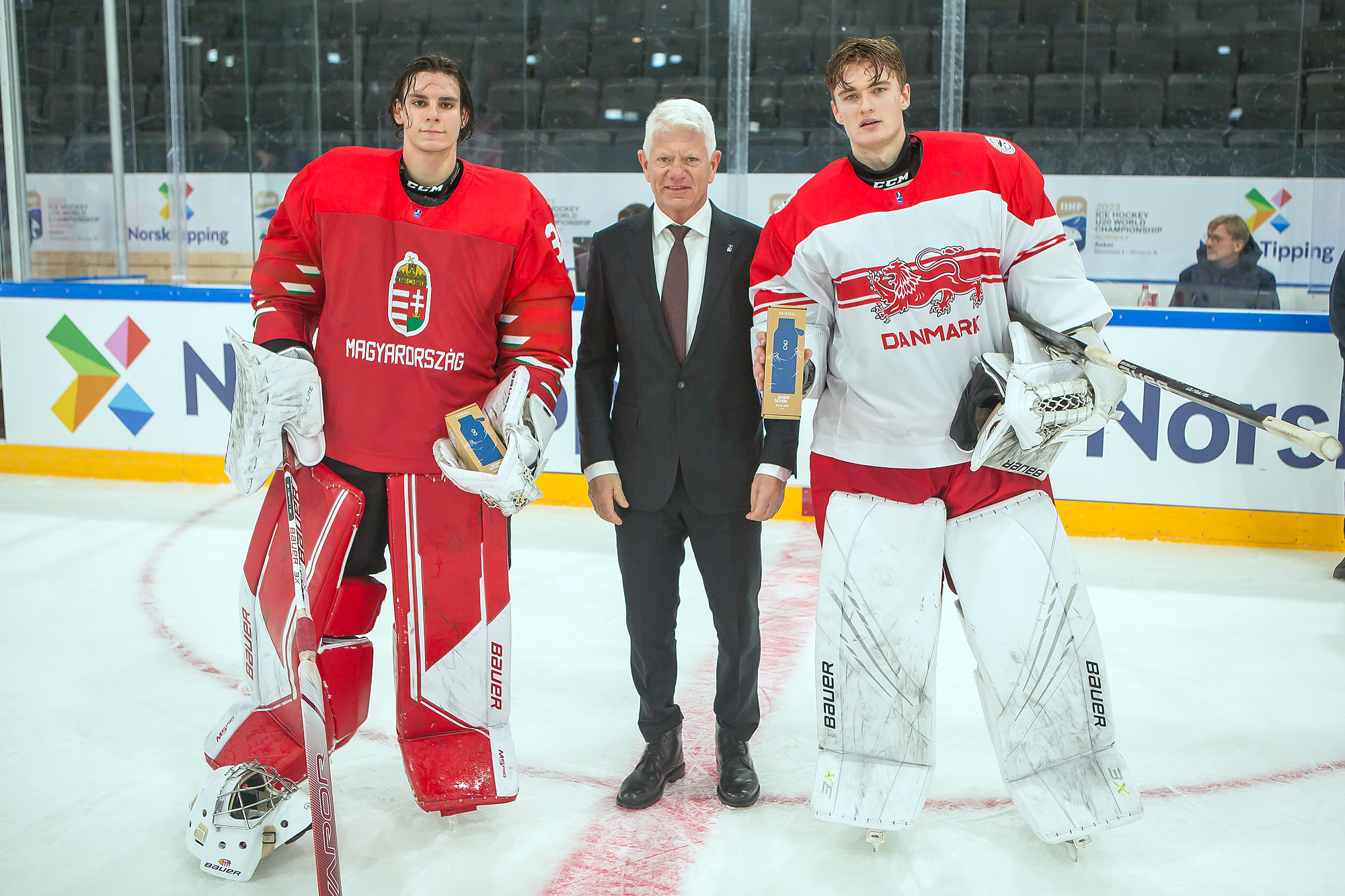 Named to top Goalkeeper in the tournament was Norway’s Markus Rohnebak Stensrud, who had five victories, a 92.8 save percentage, and an impressive 1.60 goals against average.Named to top defenseman in the tournament was Hungary’s Zeteny Hadobas, who finished 1st overall in scoring with one goal and 11 points while going +2.