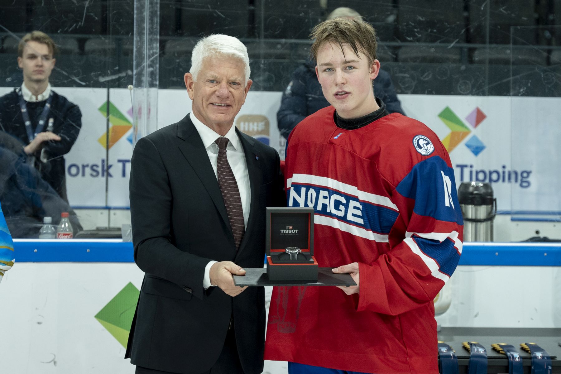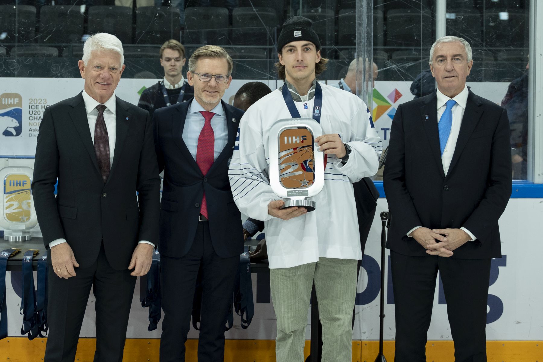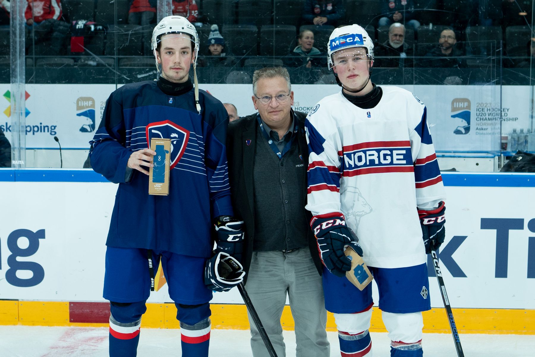 Named to top forward in the tournament was France’s Matias Bachelet, who led his team in scoring with two goals and seven points, finishing tied for third overall in tournament scoring with Norway’s Vesterheim.