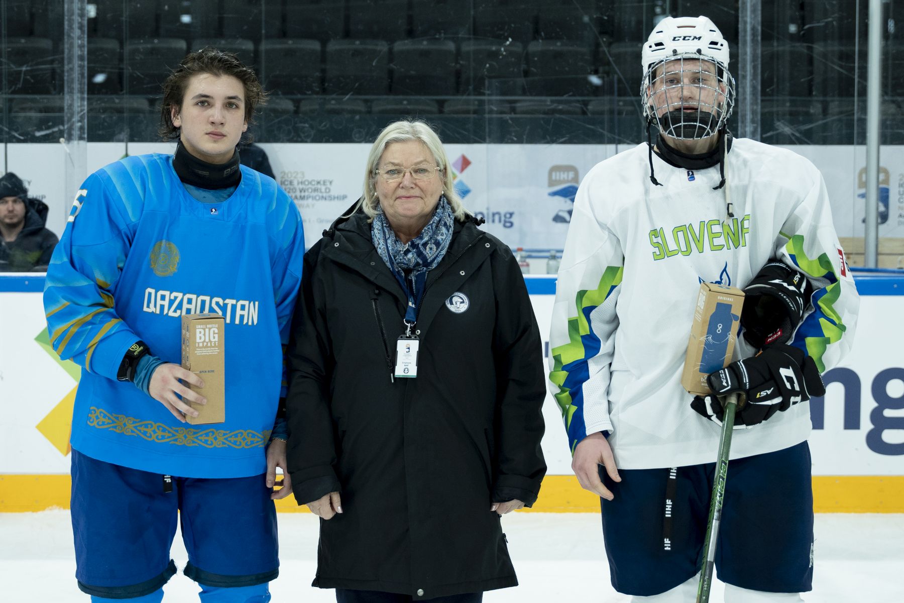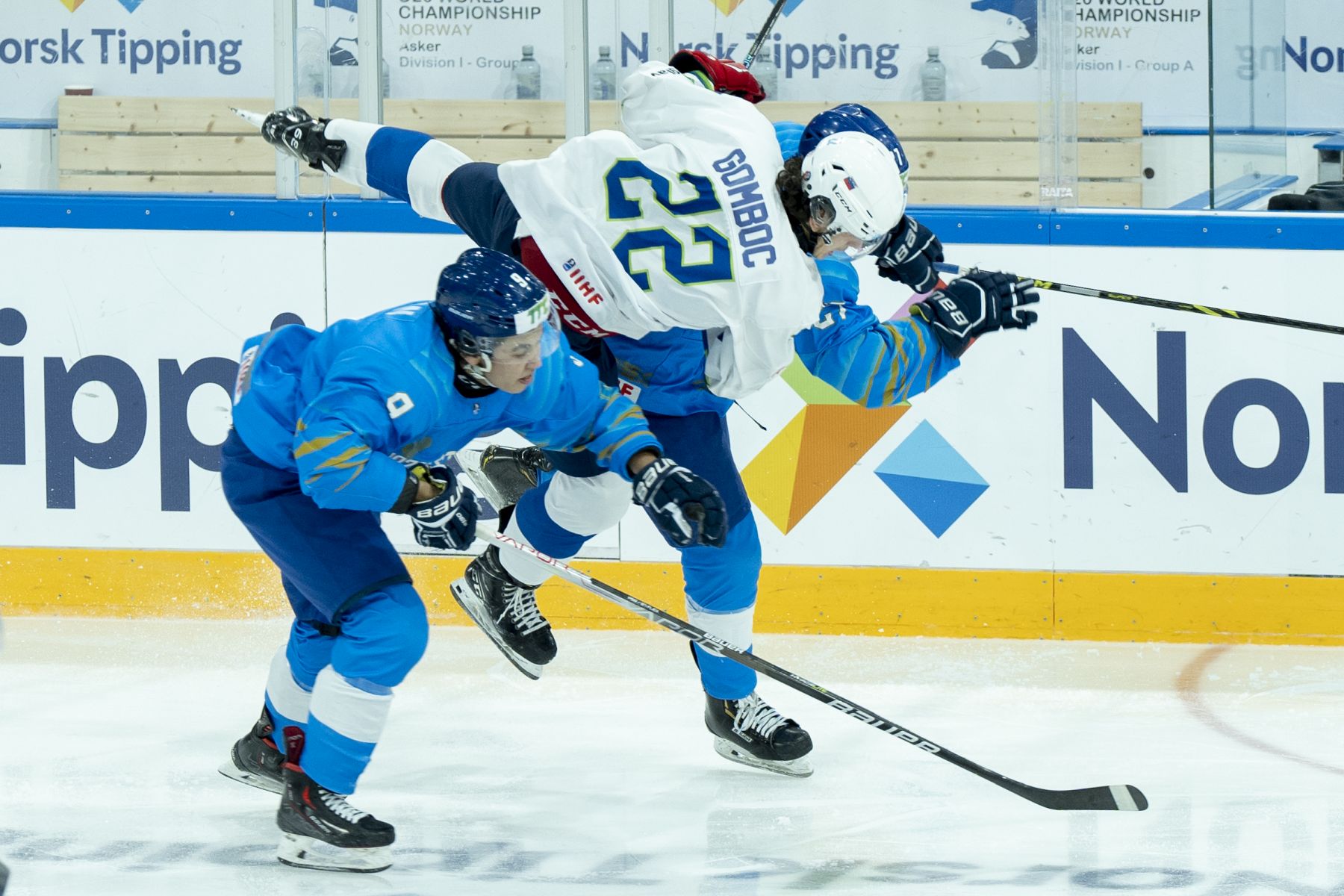 Their opponent in this final game would be Kazakhstan, which had to win in regulation time to gain promotion. The Kazakhs had lost their first game 2-0 to France and were even down 2-0 to Hungary after two periods, but then charged back to not only defeat Hungary, but win its next two against Denmark (4-0) and Slovenia (4-2). It was clear they were going to have to play their best game of the event to date in order to knock Norway down from first place.