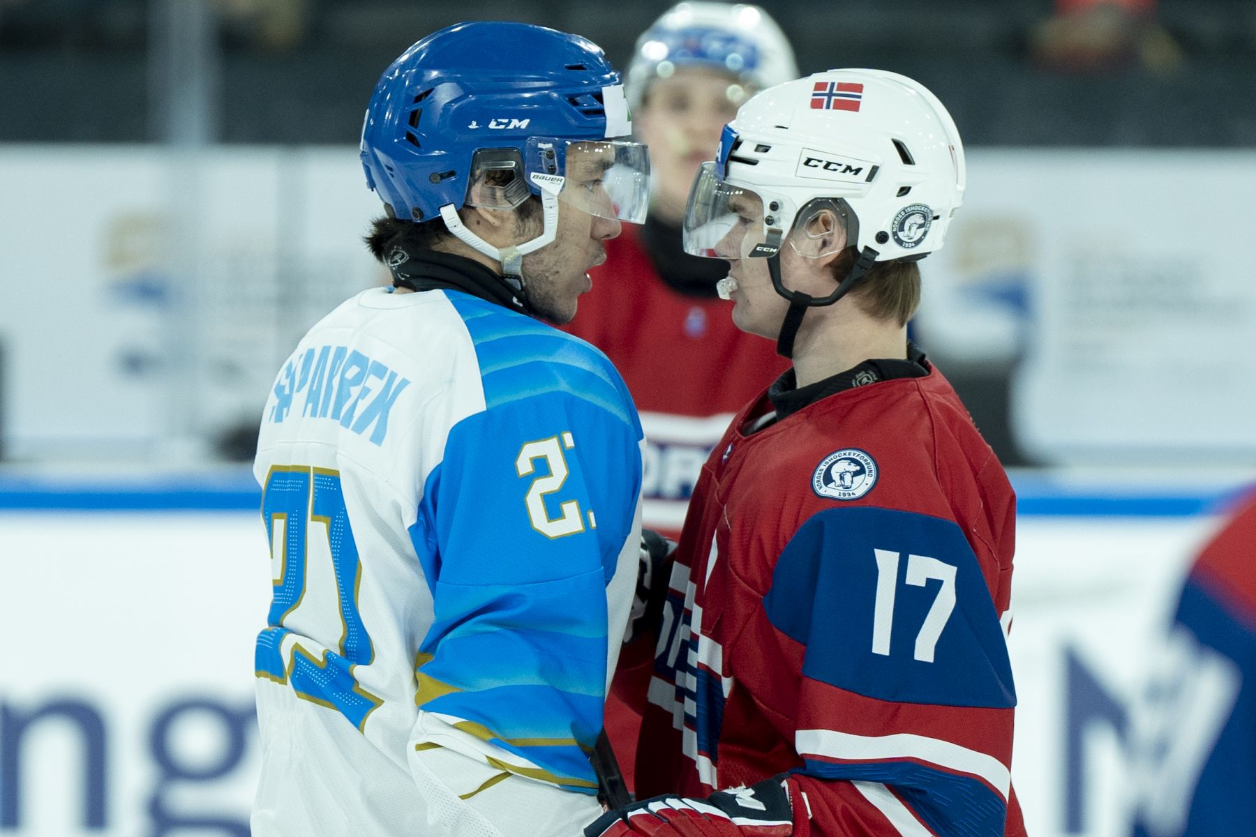 The second period painted a much different picture. Norway struck early on a power play goal by Gabriel Koch. Eight minutes later, the team went up 3-0 on another power play goal, this time by Leo Halmrast. With things looking like the game could turn into a blowout, the Kazakhs struck back less than a minute later on a tally by Aldiyar Nurlan, who profited from a nifty pass from the high slot by Roman Yermak, finally beating goaltender Markus Rohnebak Stensrud for the first time.