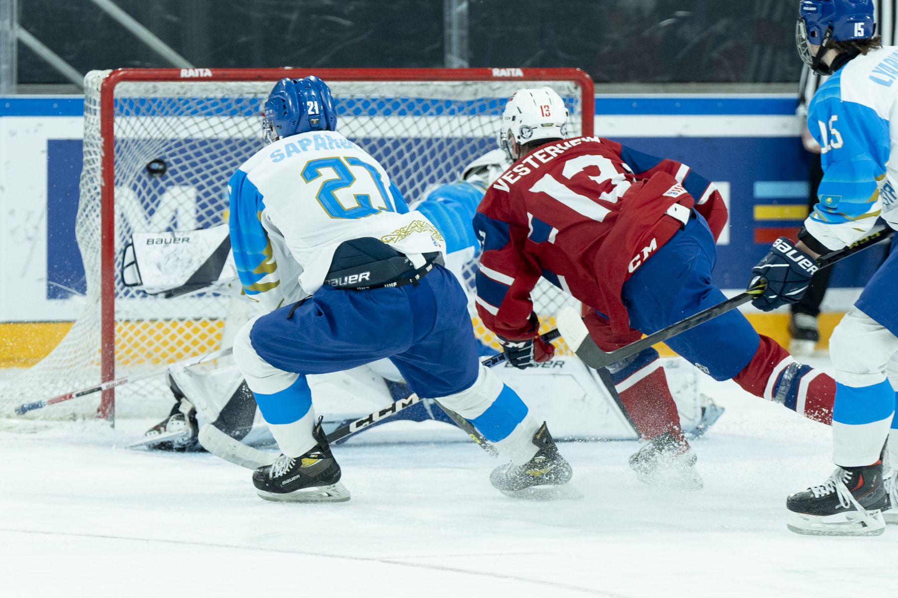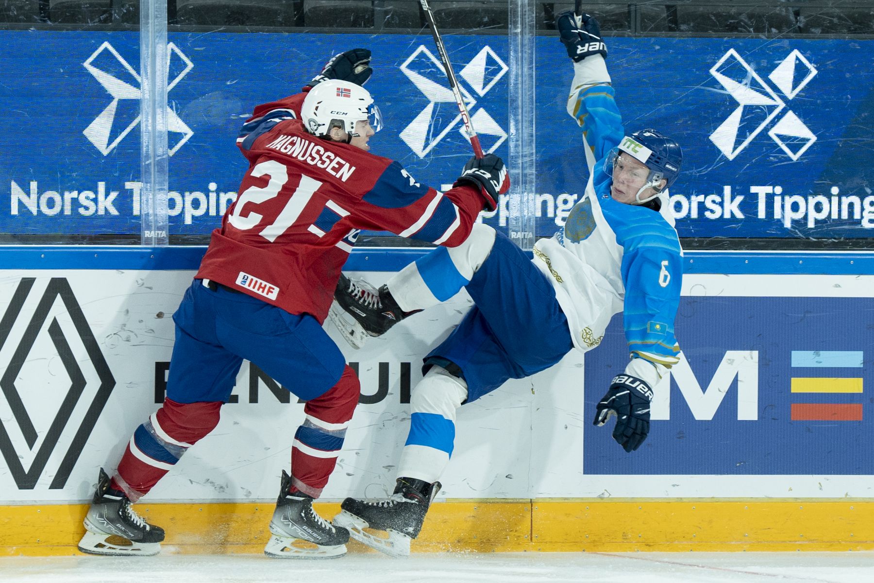 The scoring continued when a Kazak defender overplayed the puck in his own zone as the last man, then helplessly watching as Michael Nygard picked it up and moved in on a breakaway that concluded with him adeptly deking out goalkeeper Roman Shefer. But just 30 seconds later in the 37th minute of play, Daniil Tsybin completed a successful wrap-around to cut Norway’s lead back to two, a score that would stand until the end of the second period.