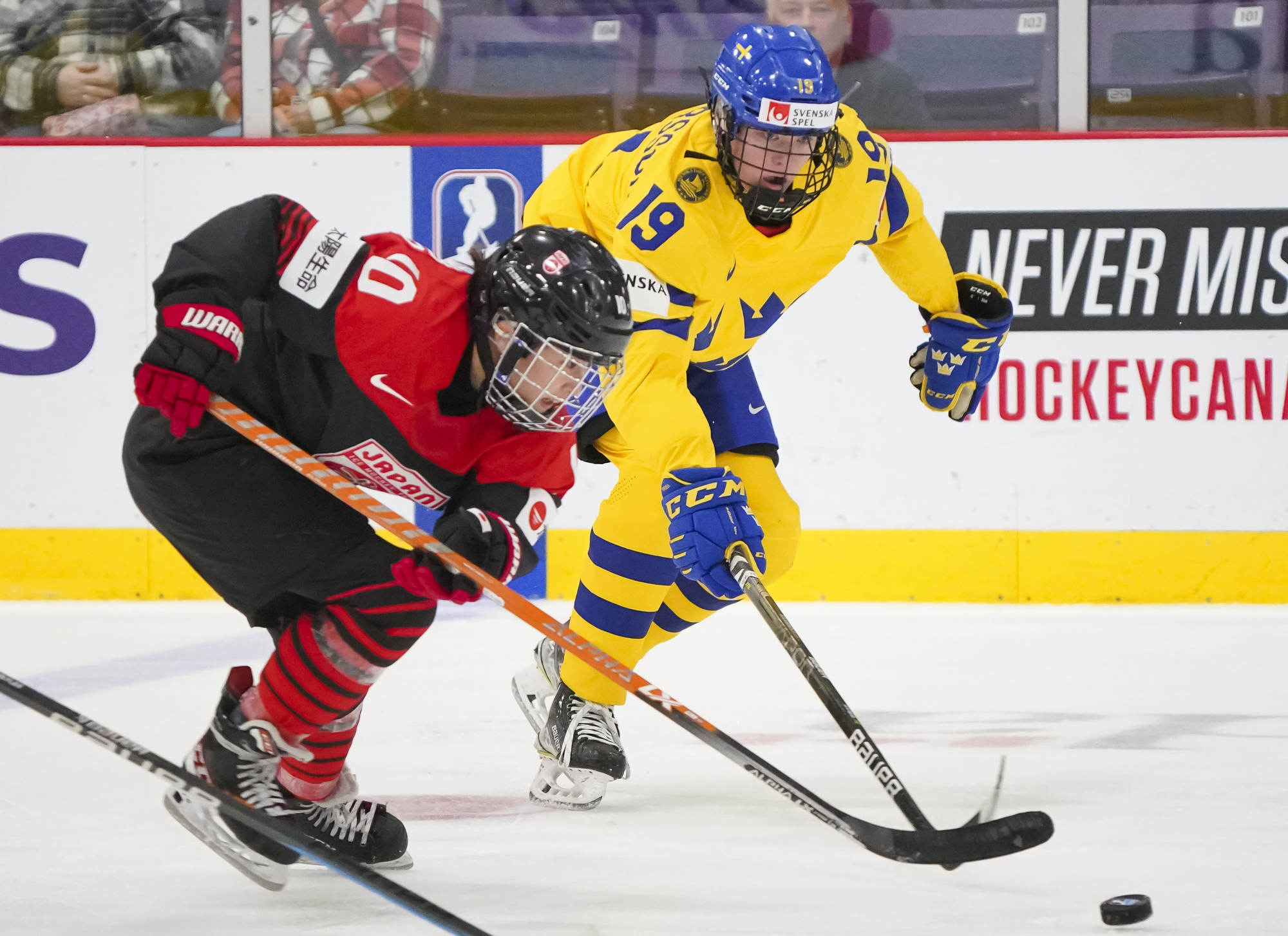 The second saw a series of four penalties evenly distributed, but neither side could connect. Nevertheless, Japan came out with a more determined effort and were the better team. They moved the puck with crisp, quick passes and had the Swedes defending much of the time.