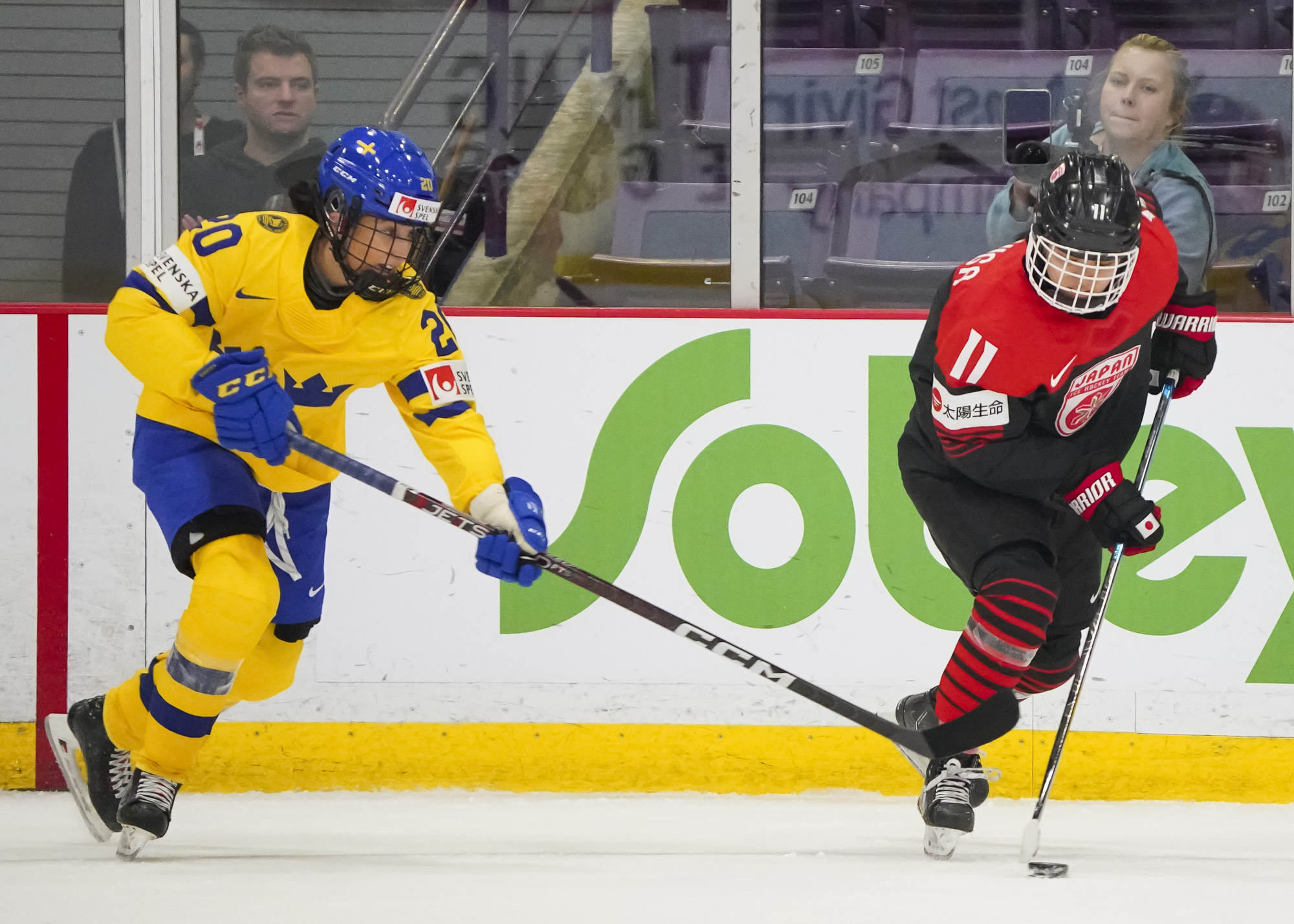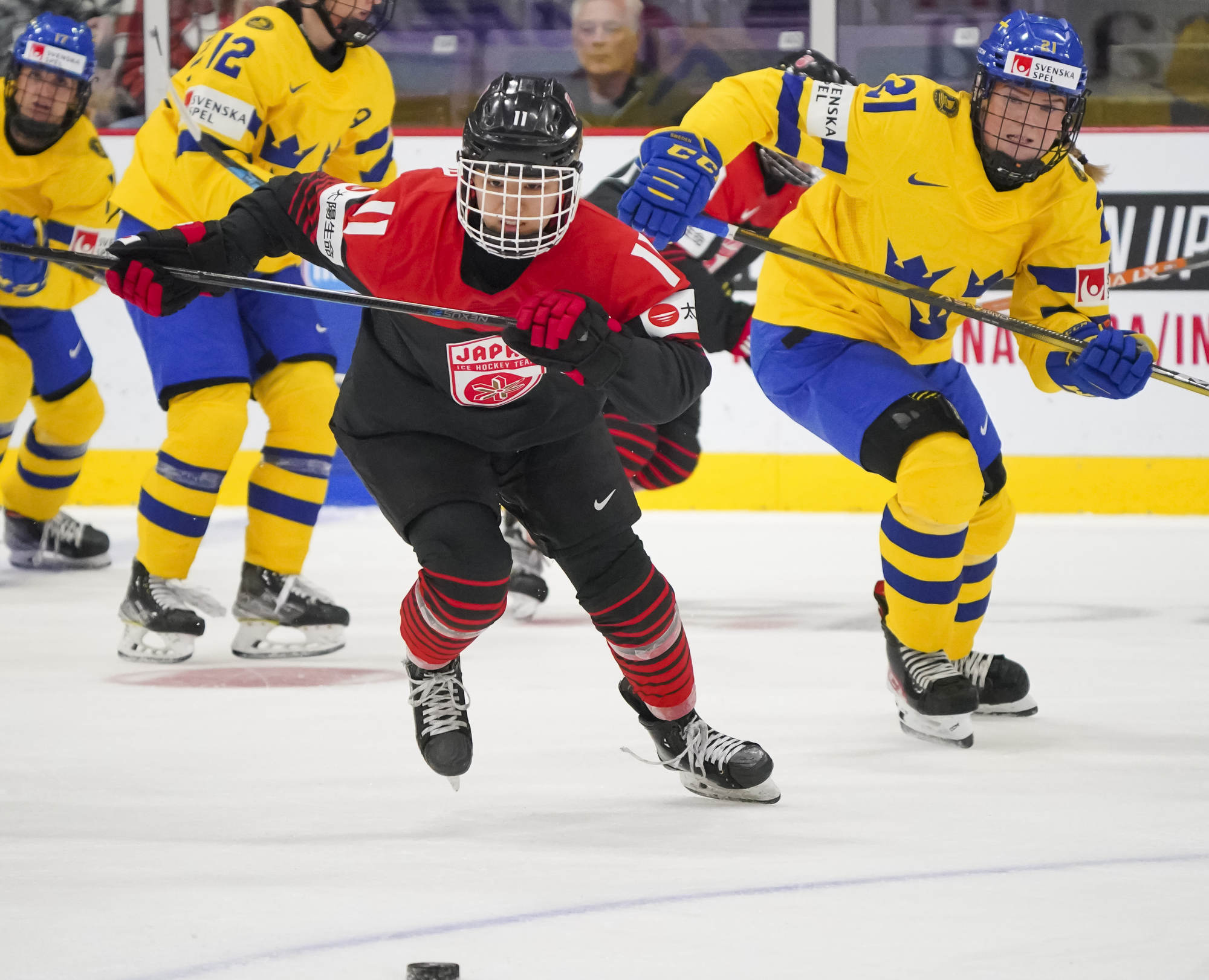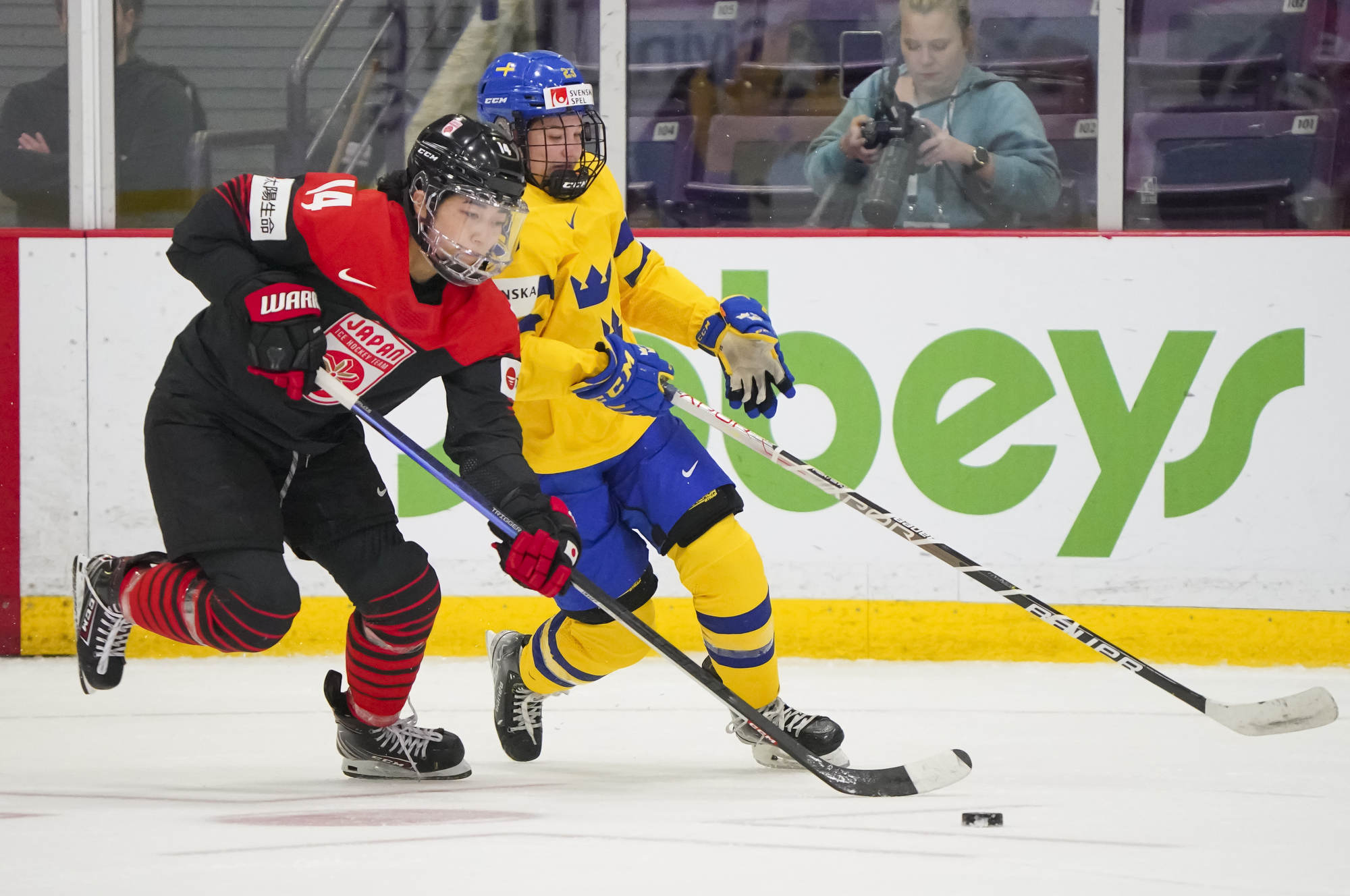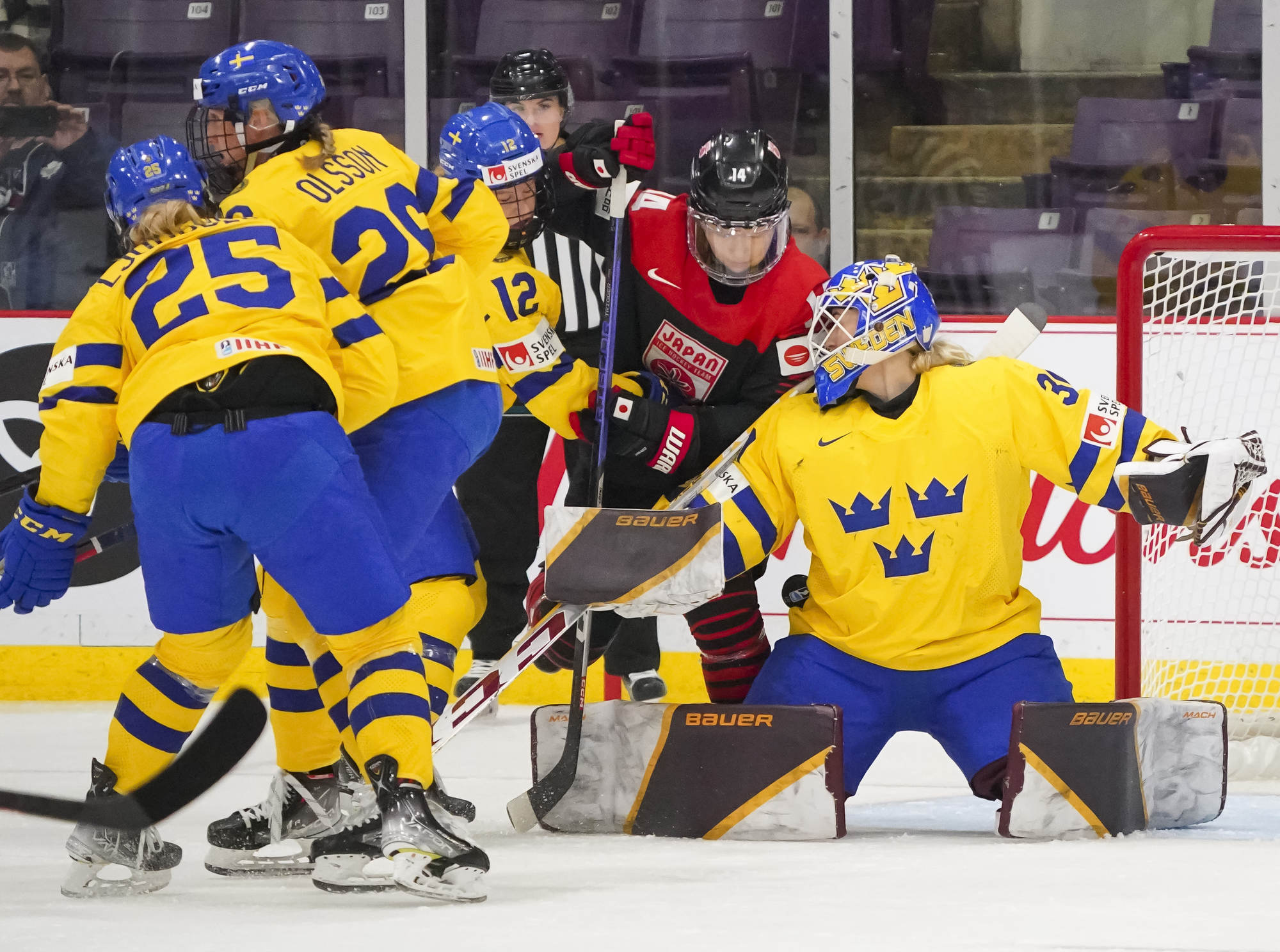 Japan had a great chance to tie a few minutes later when Akane Shiga intercepted a Fanny Rask pass. Shiga dashed up ice with Rask in hot pursuit, and although the Japanese forward got a shot off, it went wide. Japan also had the only power play of the opening 20 minutes, but it was ineffective against an impressive Sweden penalty kill.