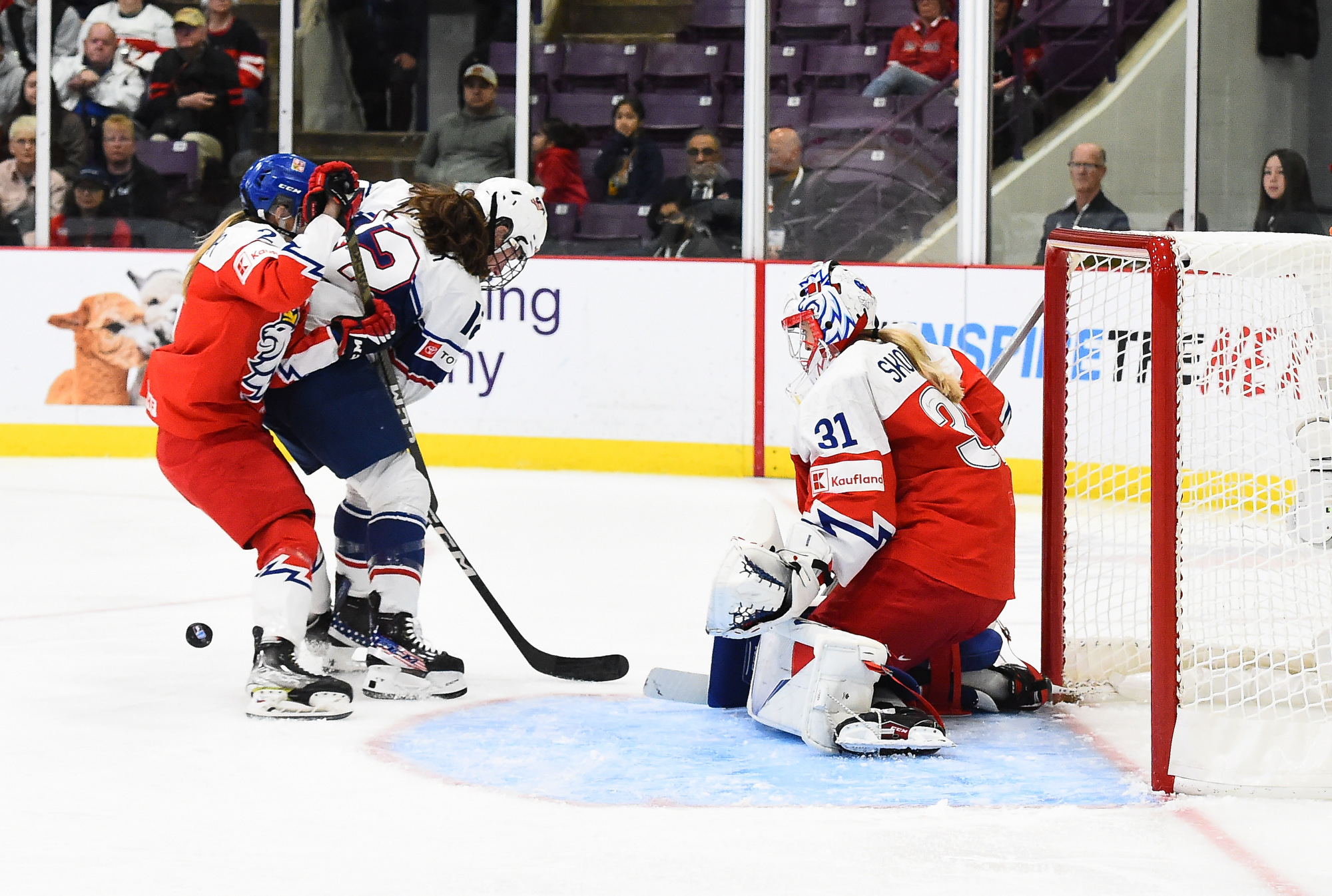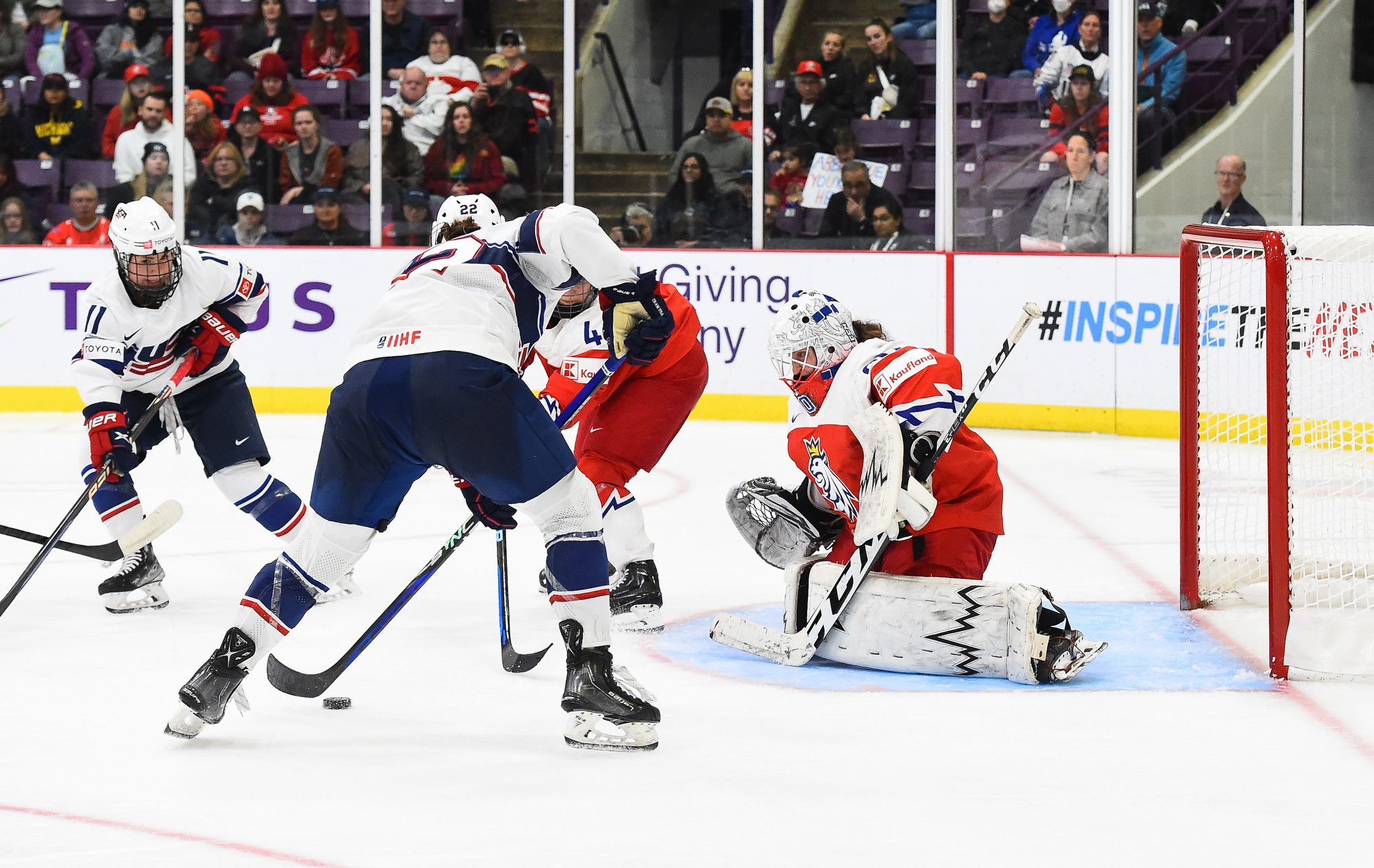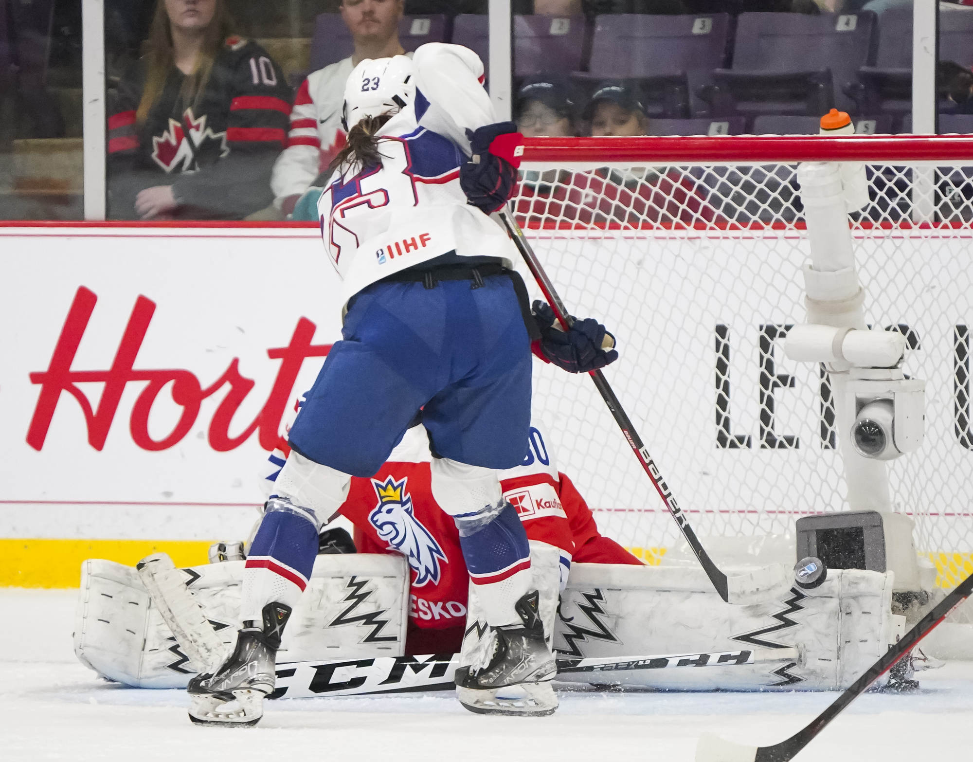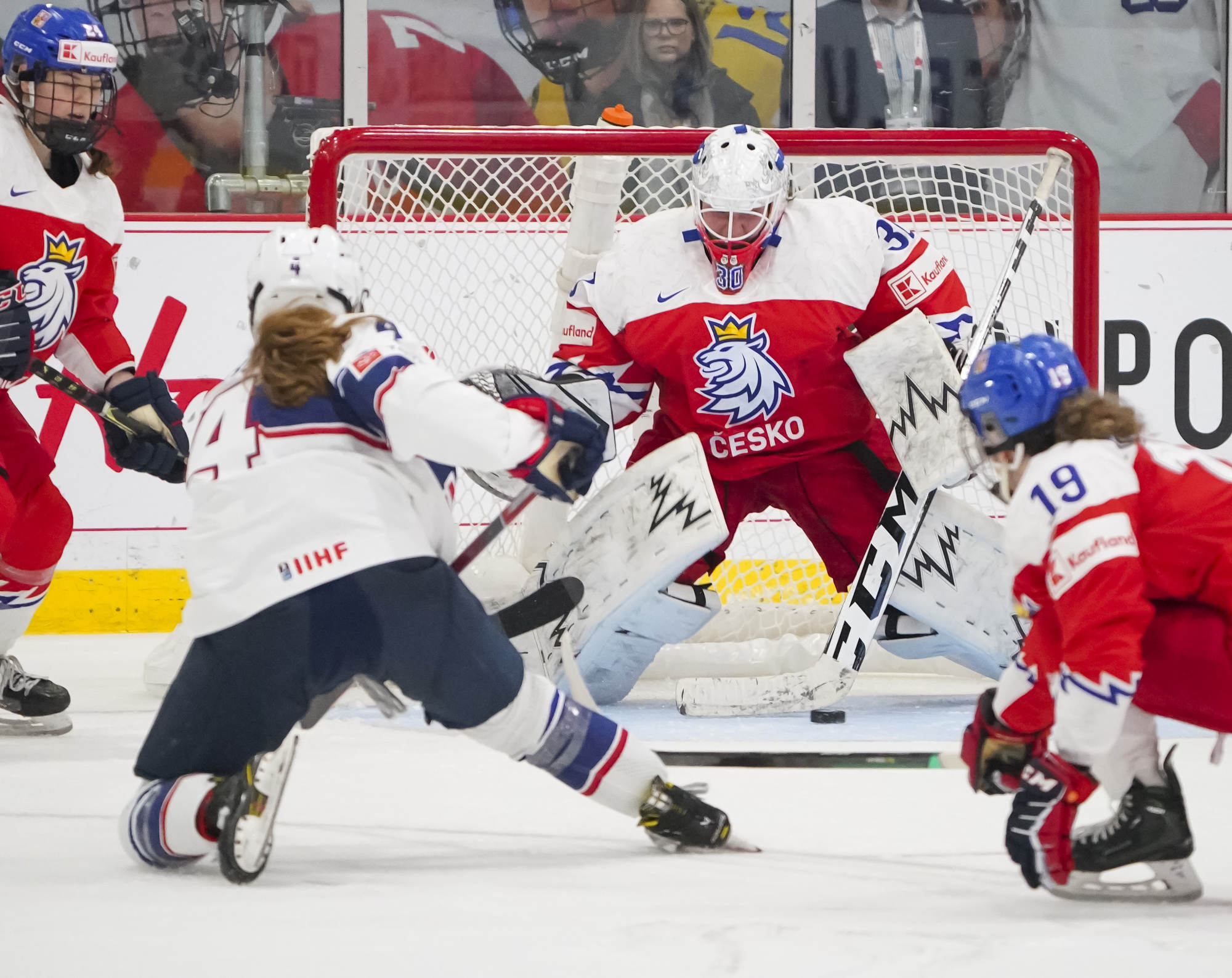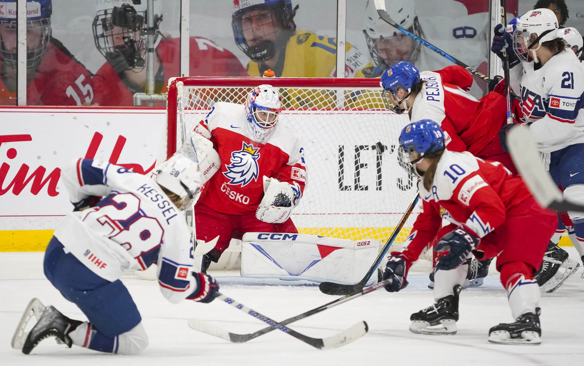 While the Americans had most of the momentum, the Czechs found a way to score. Adela Sapovalivova crossed the blue line with speed, beating Aerin Frankel blocker side. The Czechs tried to close the gap further with a near shorthanded breakaway opportunity for Vendula Pribylova, but a glove save by Frankel kept the score at 4-1.
