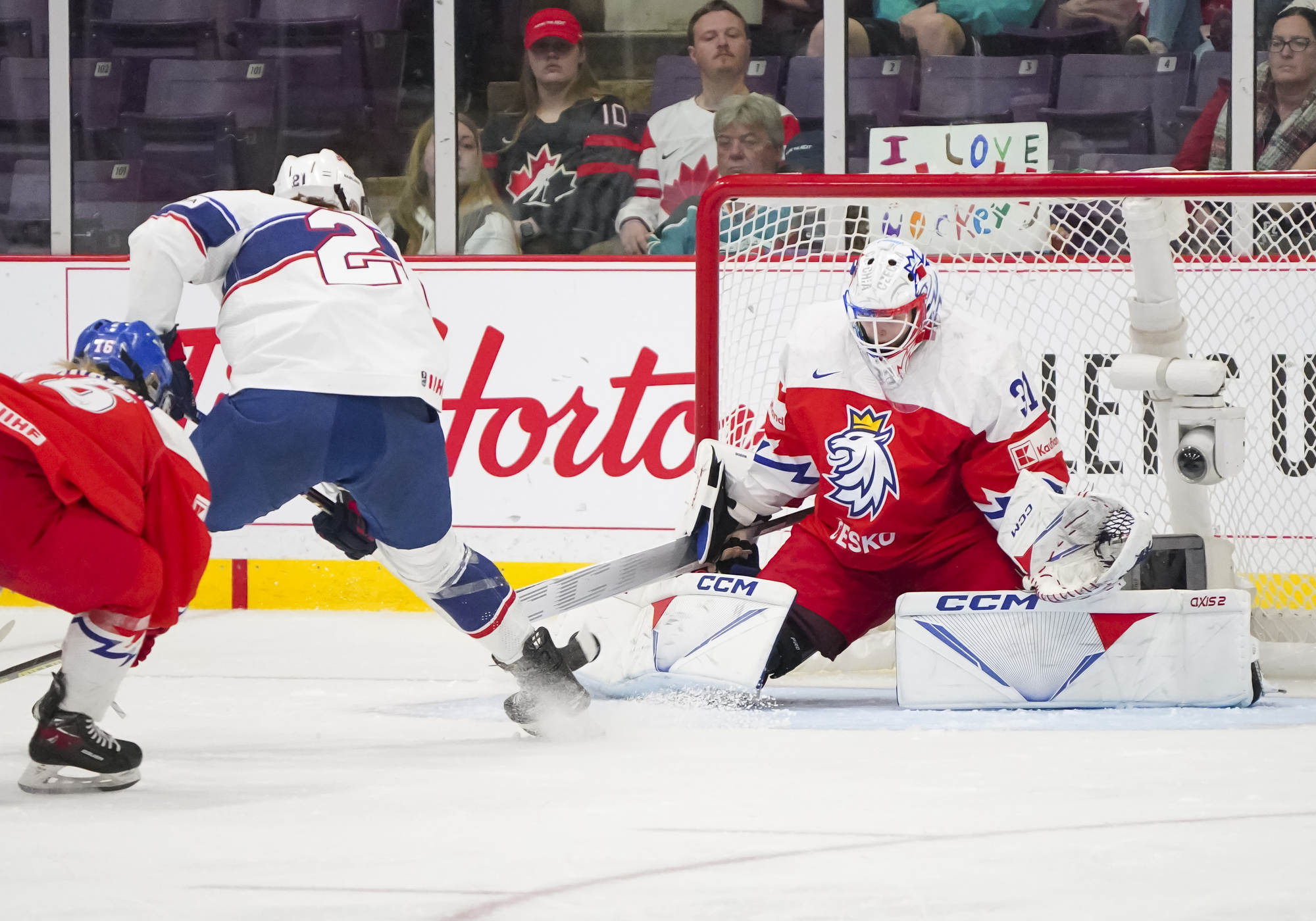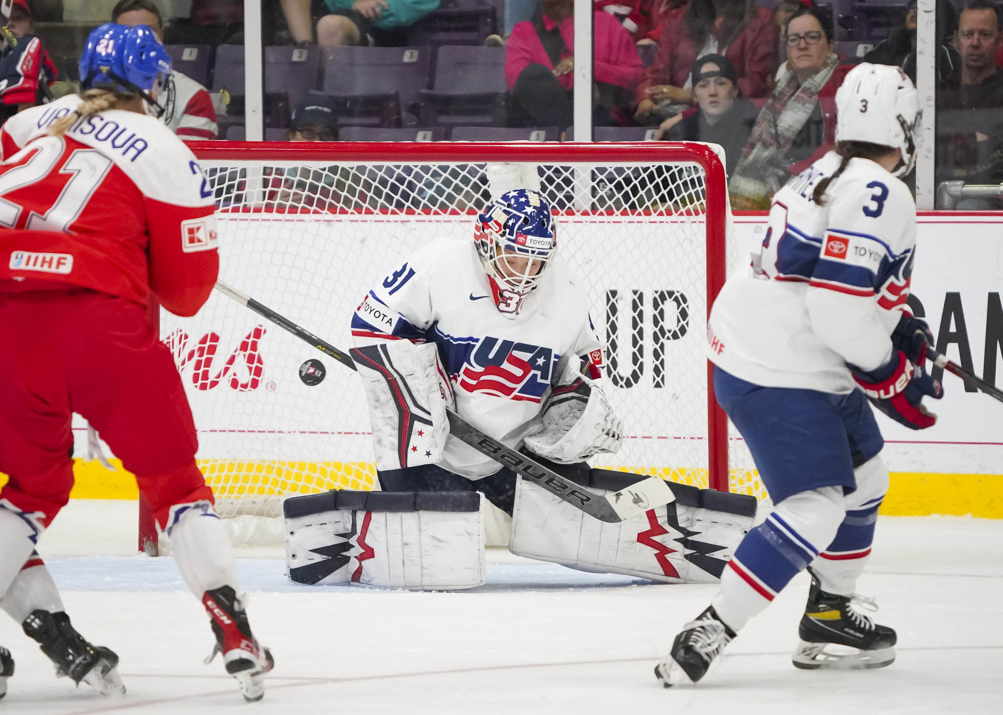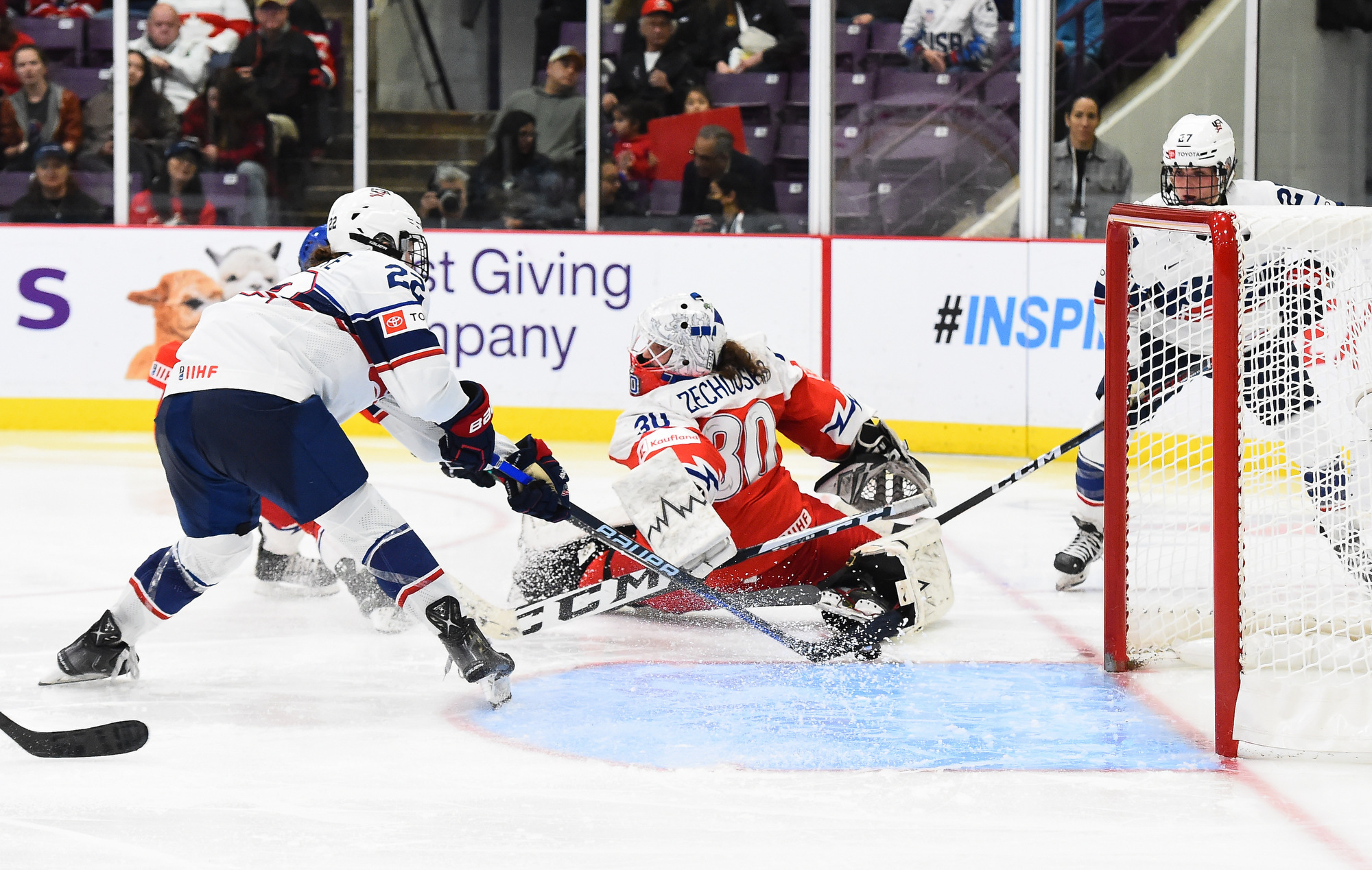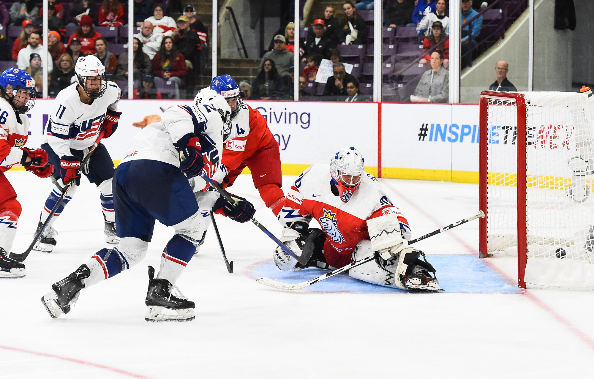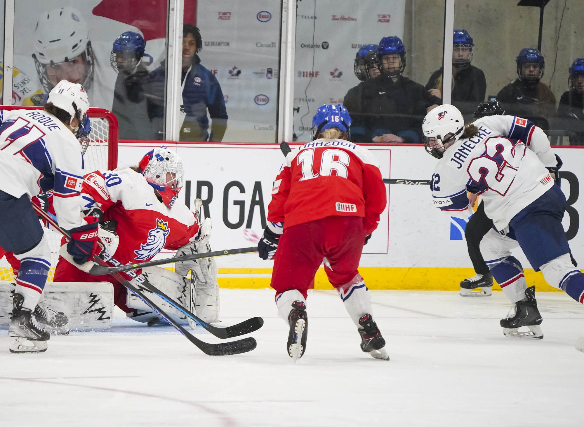 While the Americans had most of the momentum, the Czechs found a way to score. Adela Sapovalivova crossed the blue line with speed, beating Aerin Frankel blocker side. The Czechs tried to close the gap further with a near shorthanded breakaway opportunity for Vendula Pribylova, but a glove save by Frankel kept the score at 4-1.