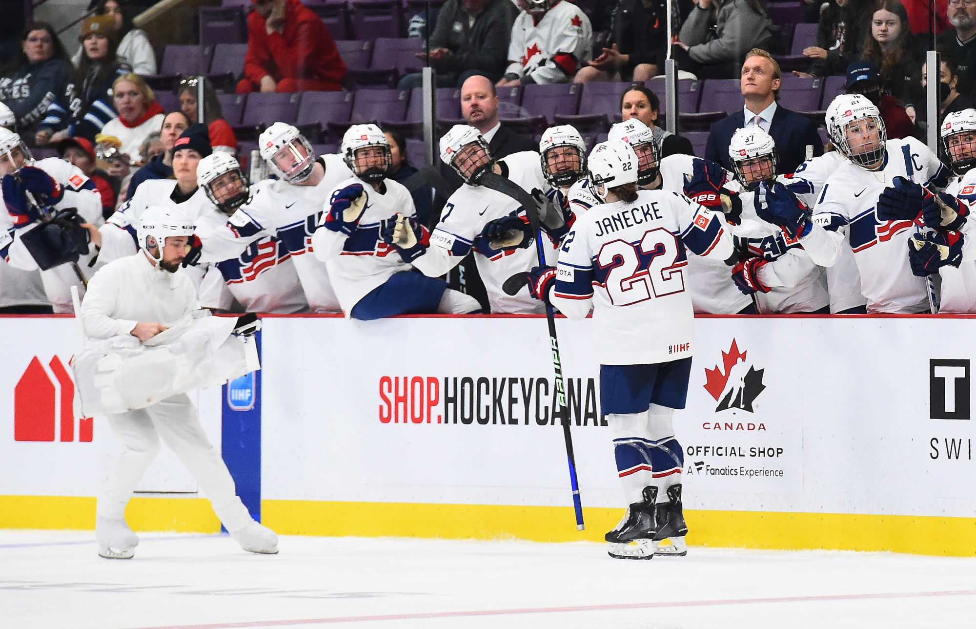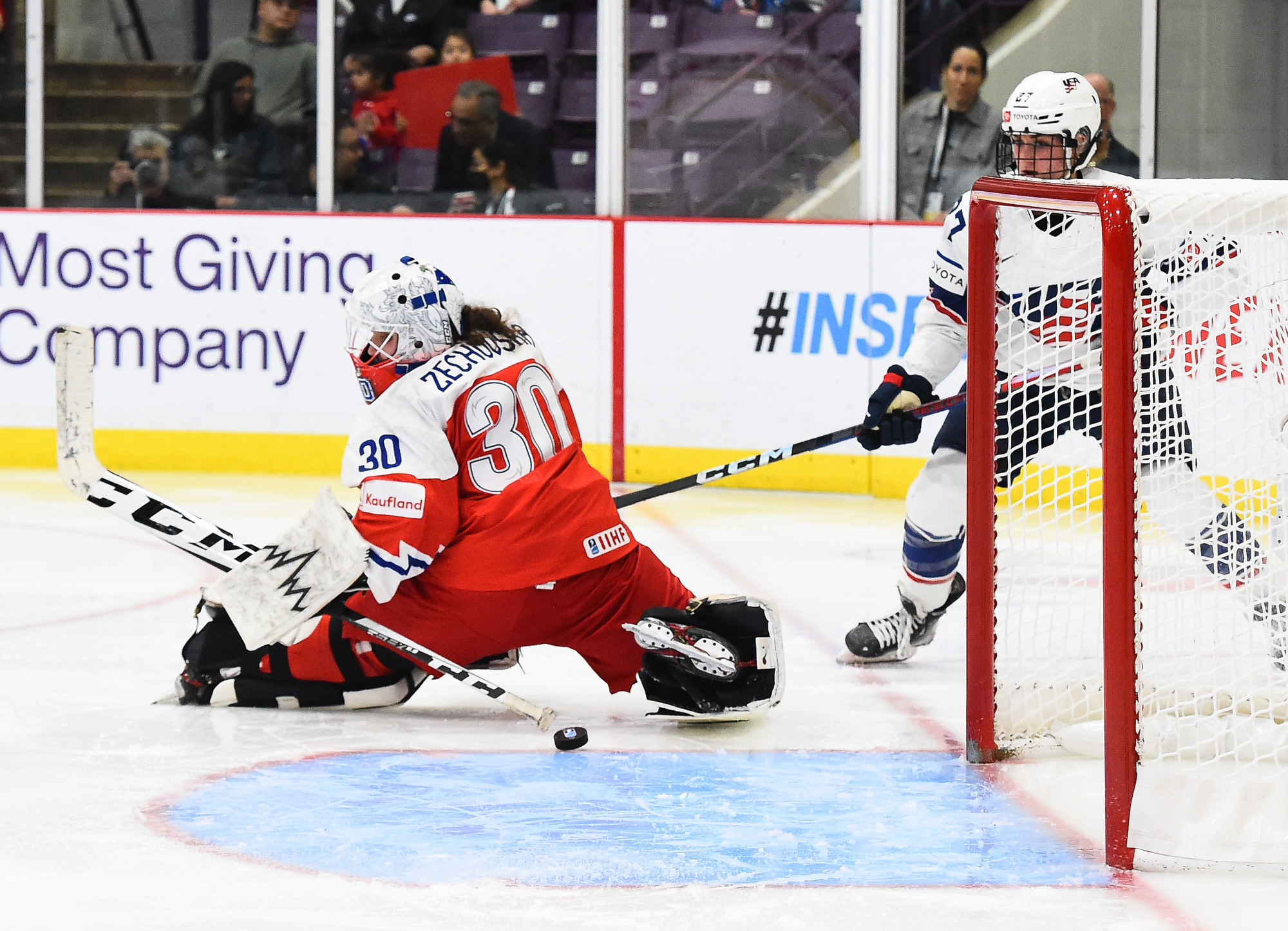 Women’s Worlds rookie Tessa Janecke added two more to the scoreboard in the third period. Zechovska made a nice save on Taylor Heise, but Janecke crashed the net to pot the loose puck. Her second goal came 15 seconds in to another U.S. power play.