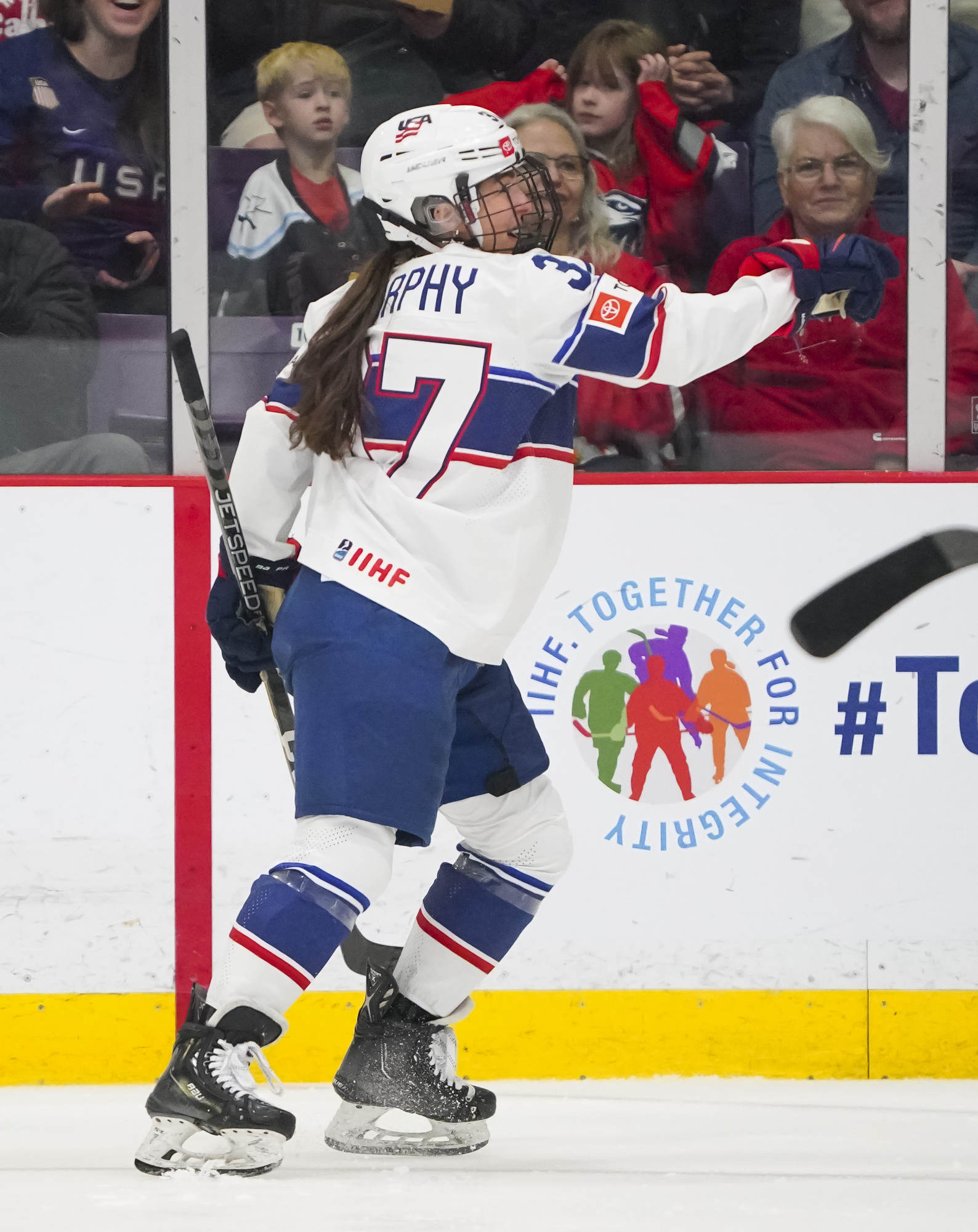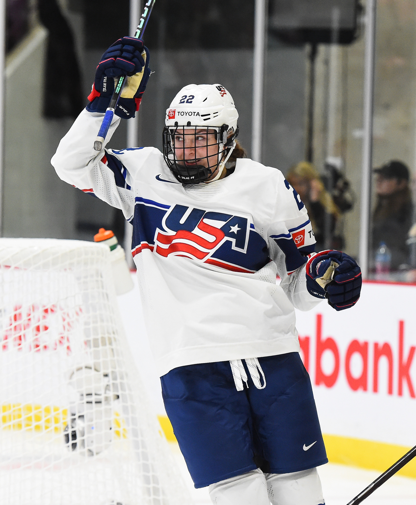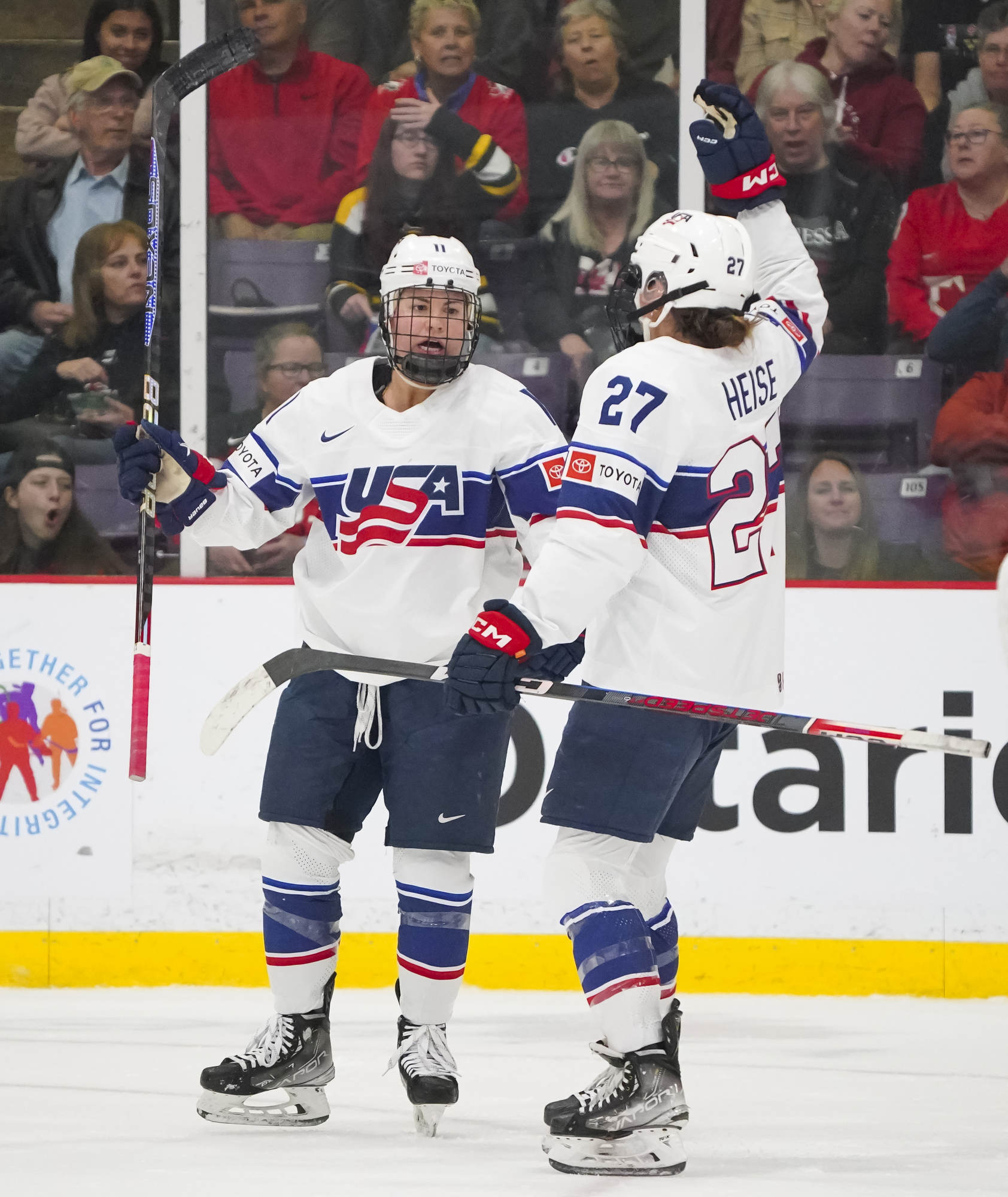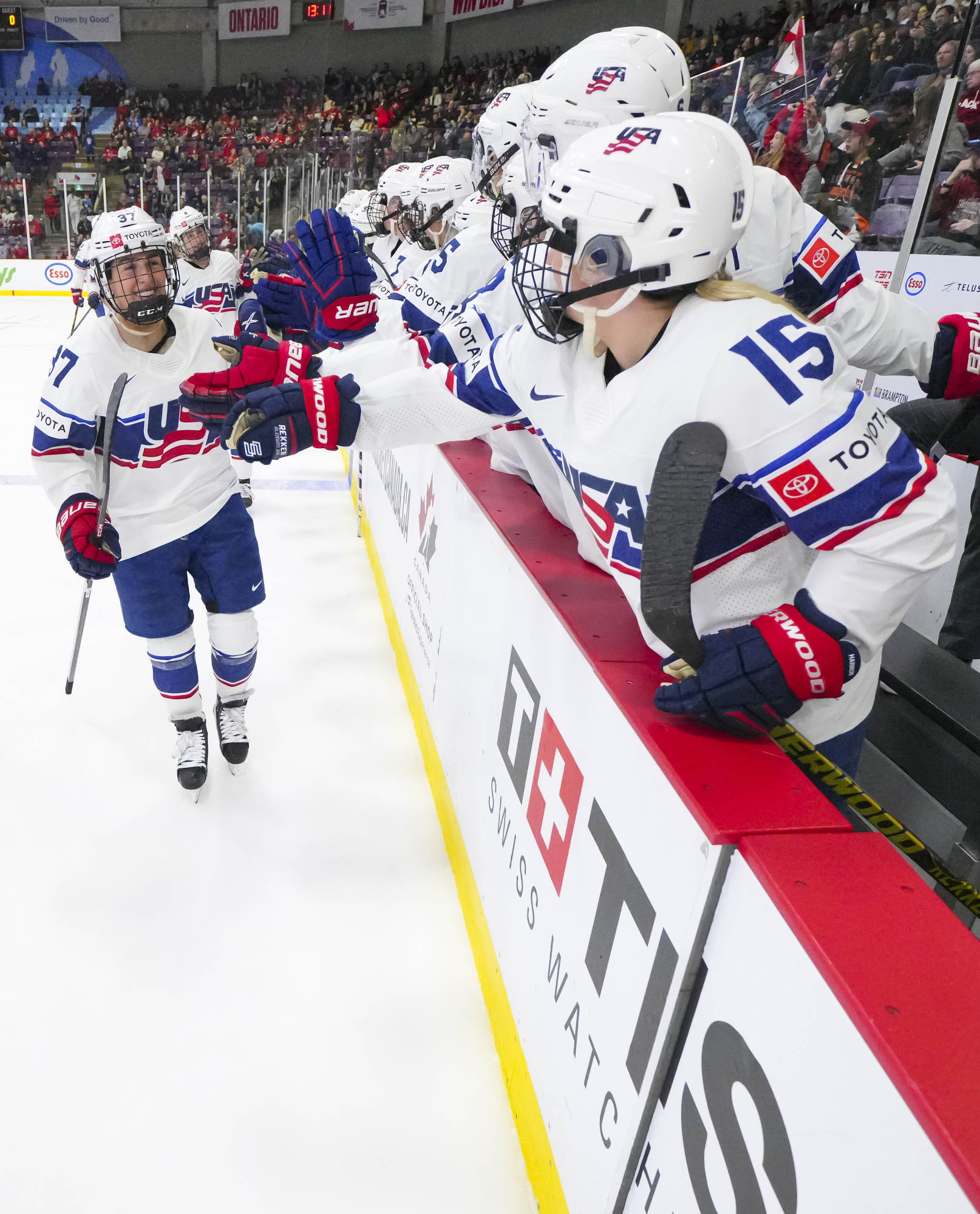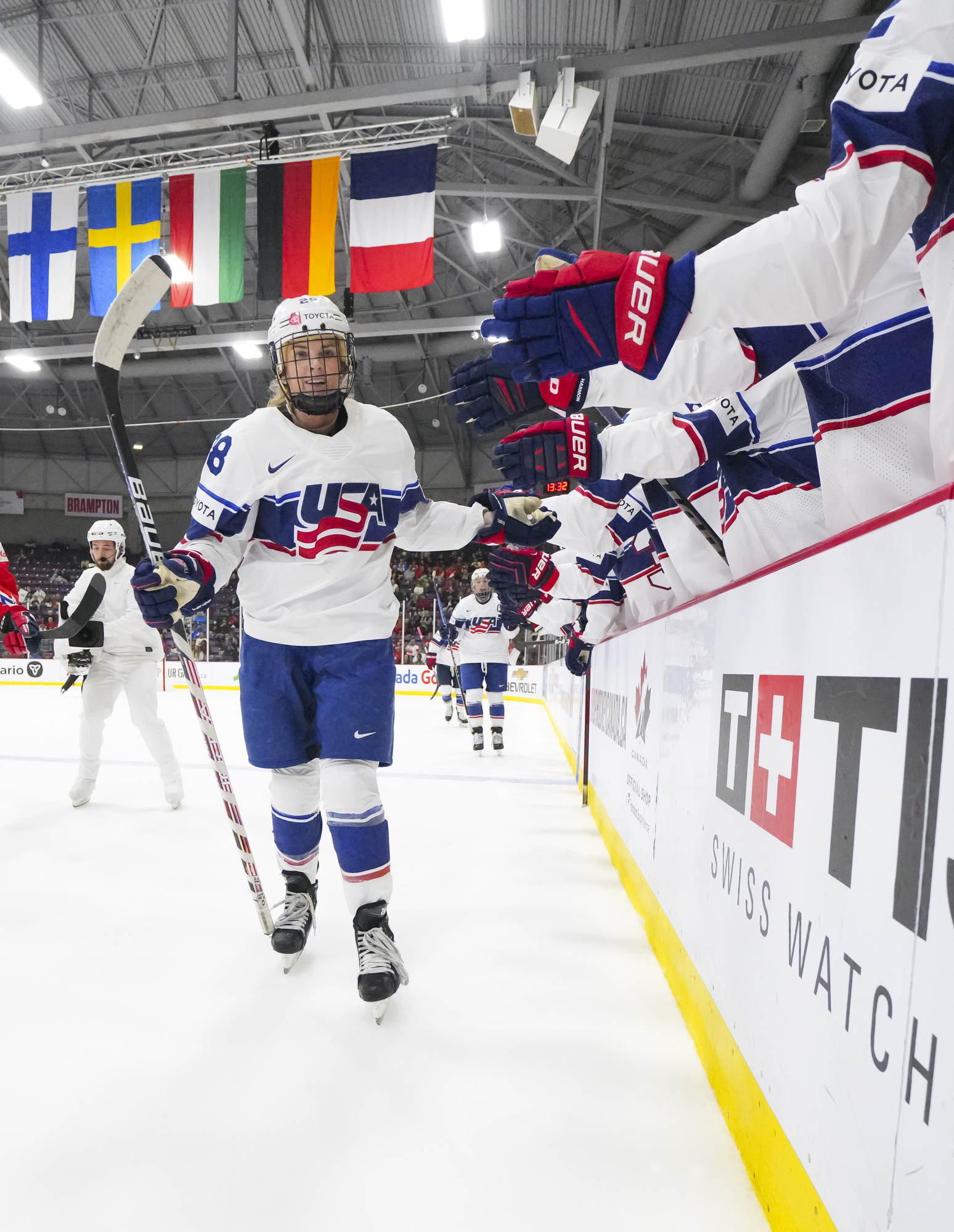 Harvey scored the final goal of the game to add to her three assists. Her and Hannah Bilka (who assisted on Janecke’s first goal) are now on a six game scoring streak, and are the only U.S. players to have collected at least one point in every game in Brampton.