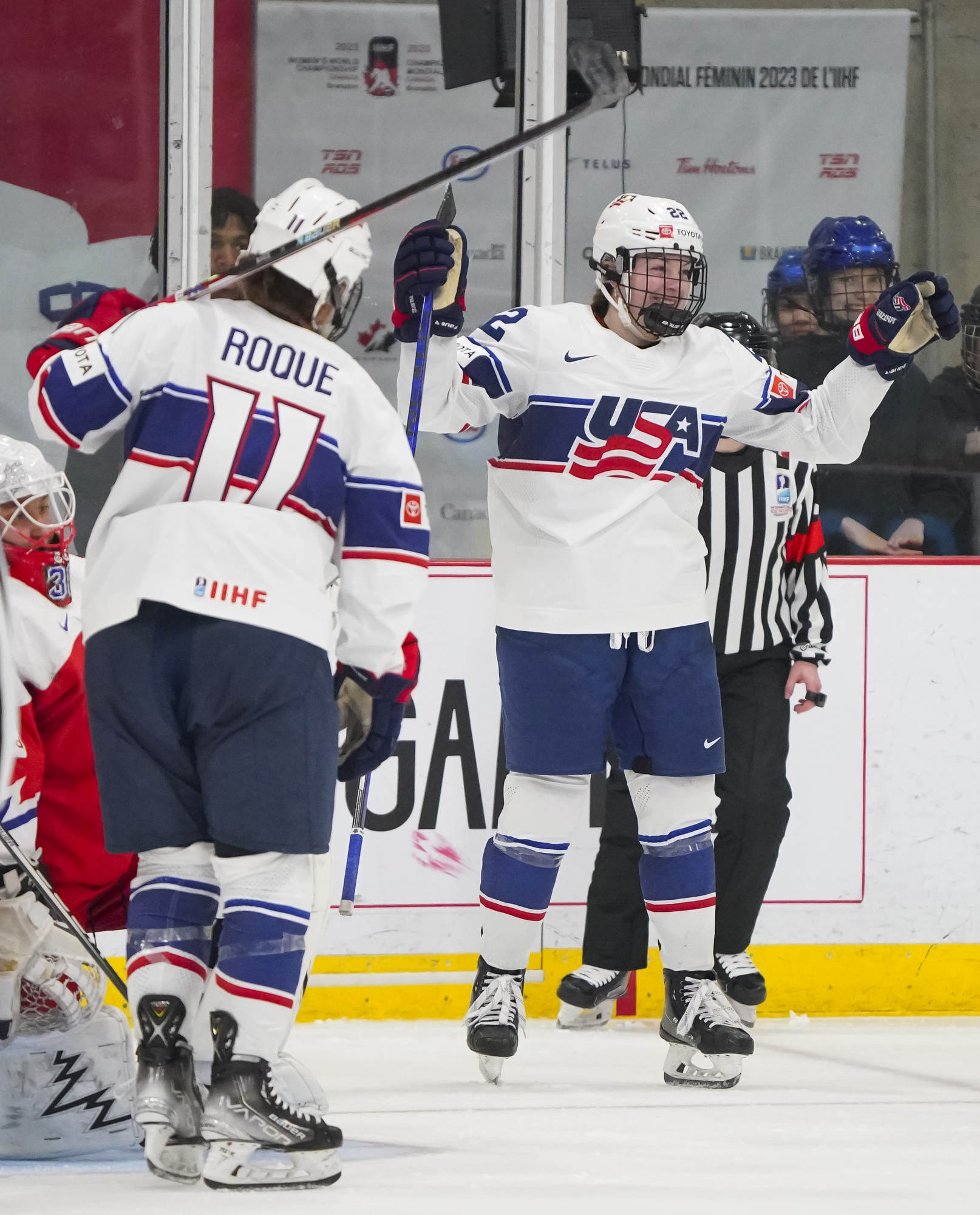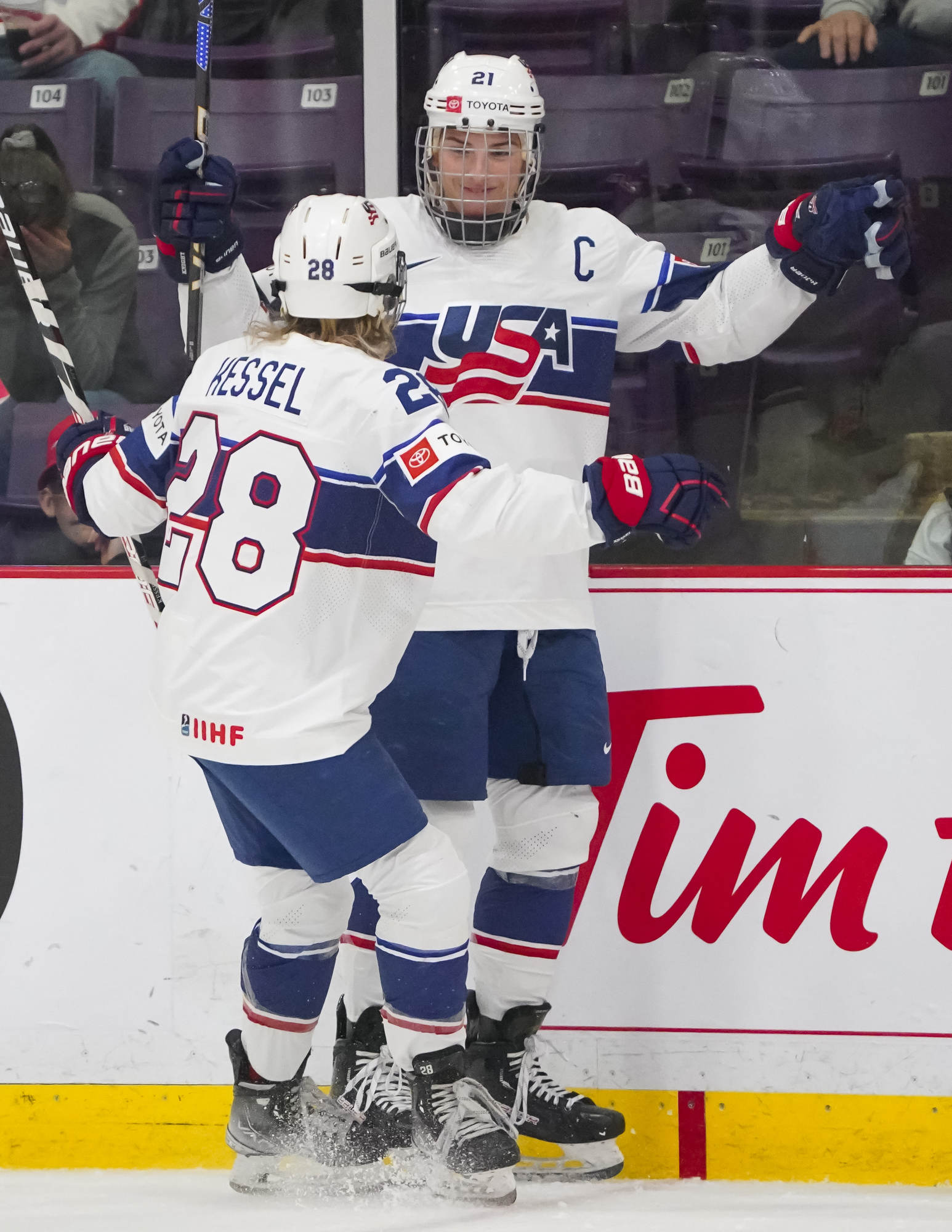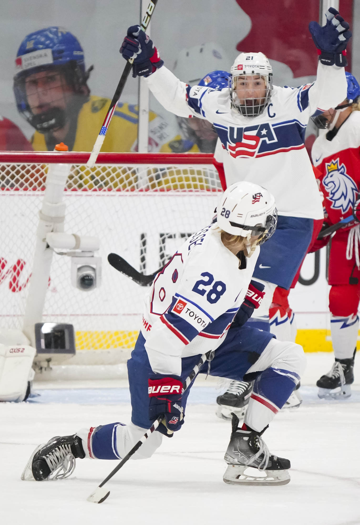 The U.S. scored twice more before the second intermission to take a 6-1 lead. Abby Roque fired the puck top shelf on the power play, and in the dying minutes of the period, Kessel batted a rebound out of the air and past Zechovska.
