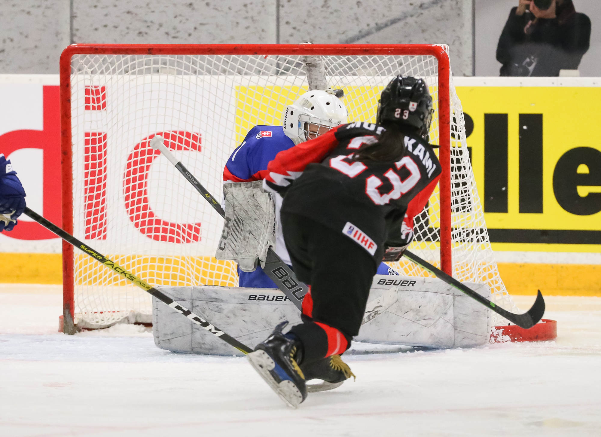 With about ten minutes remaining in the period, Murakami jumped onto the ice during a delayed penalty. Japan played the puck to her at the hash marks and she fired a wrister just under the crossbar at 29:51.