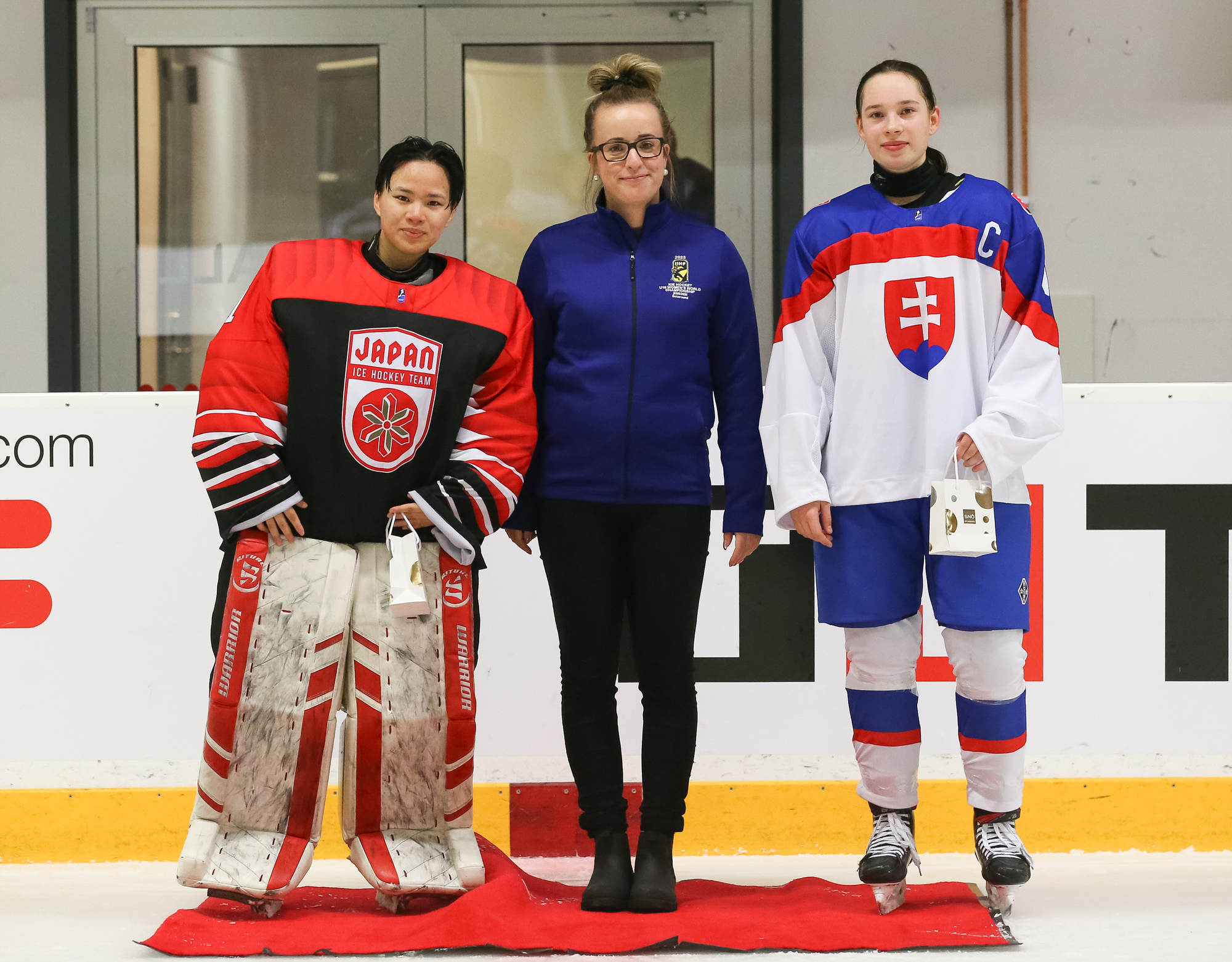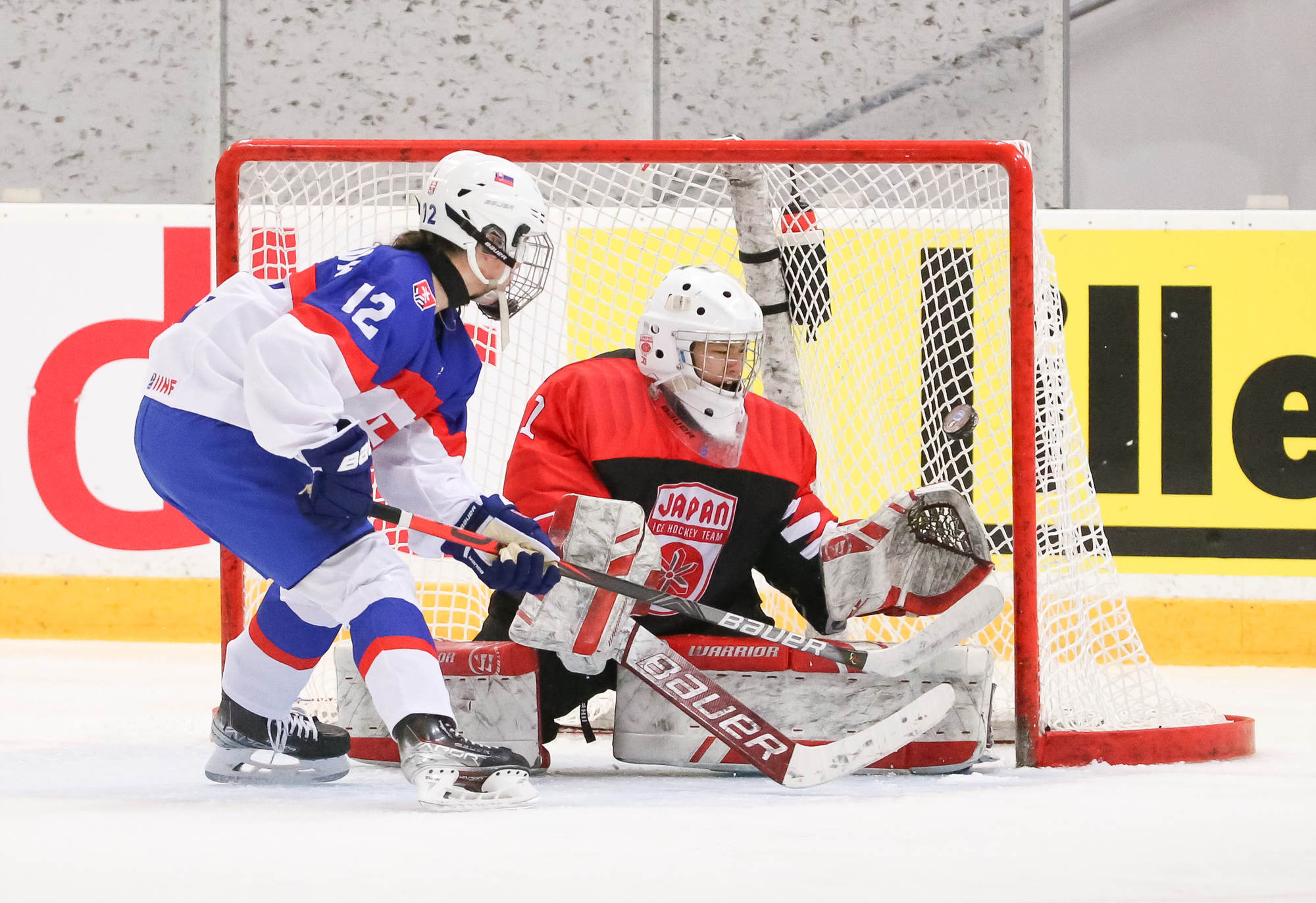 The first period was halfway through when Slovakia’s big forward Nela Lopusanova, 14, got he puck in the neutral zone, entered the Japanese zone, flipped the puck between her legs as she skated around the Japanese defender and finished her show with a nice shot top shelf, giving Slovakia the lead in the game.