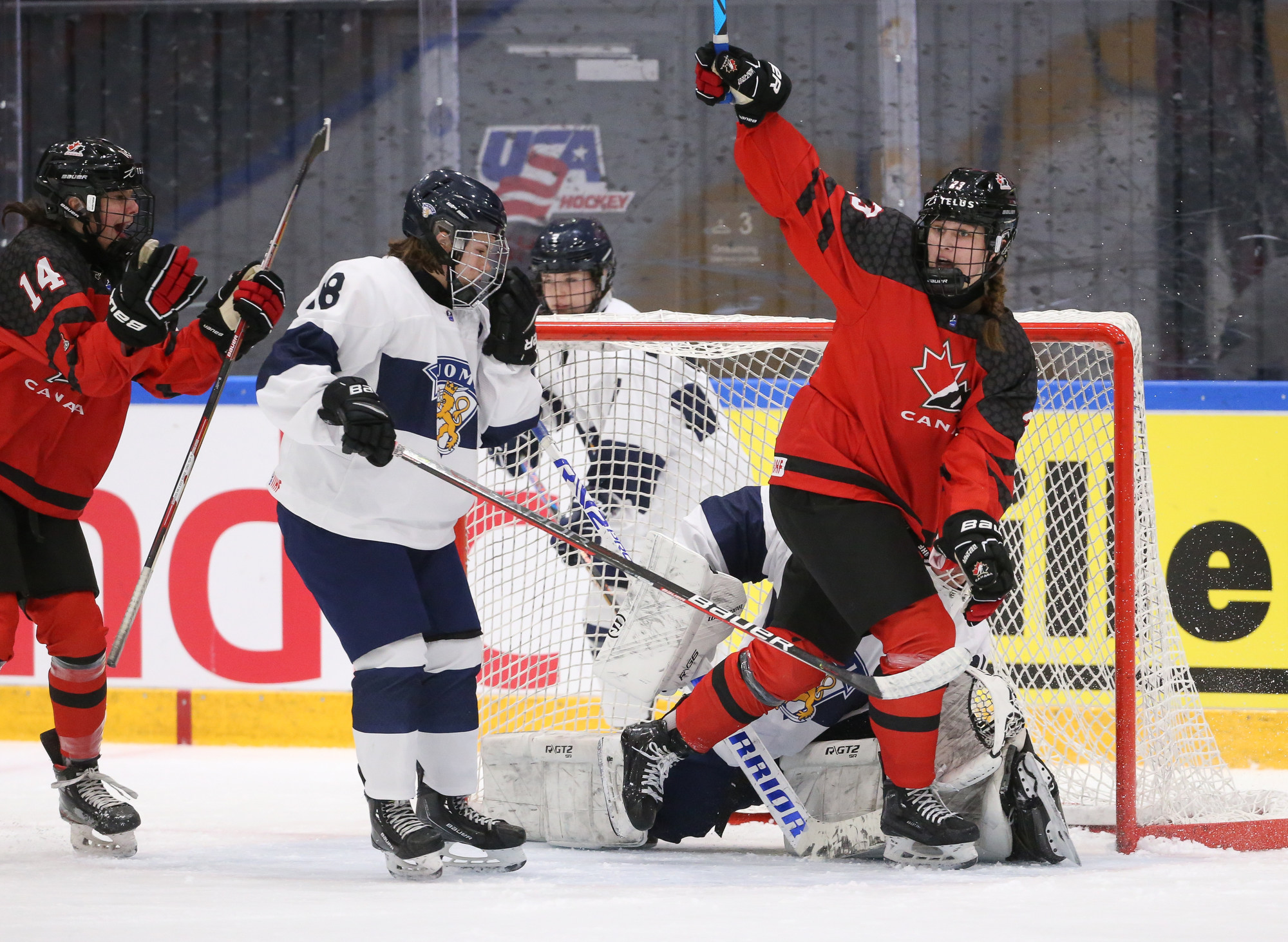 Canada's Caitlin Kraemer picked up three points and Arianne posted a shutout. Kerttu Kuja-Halkola made 40 saves for Finland.