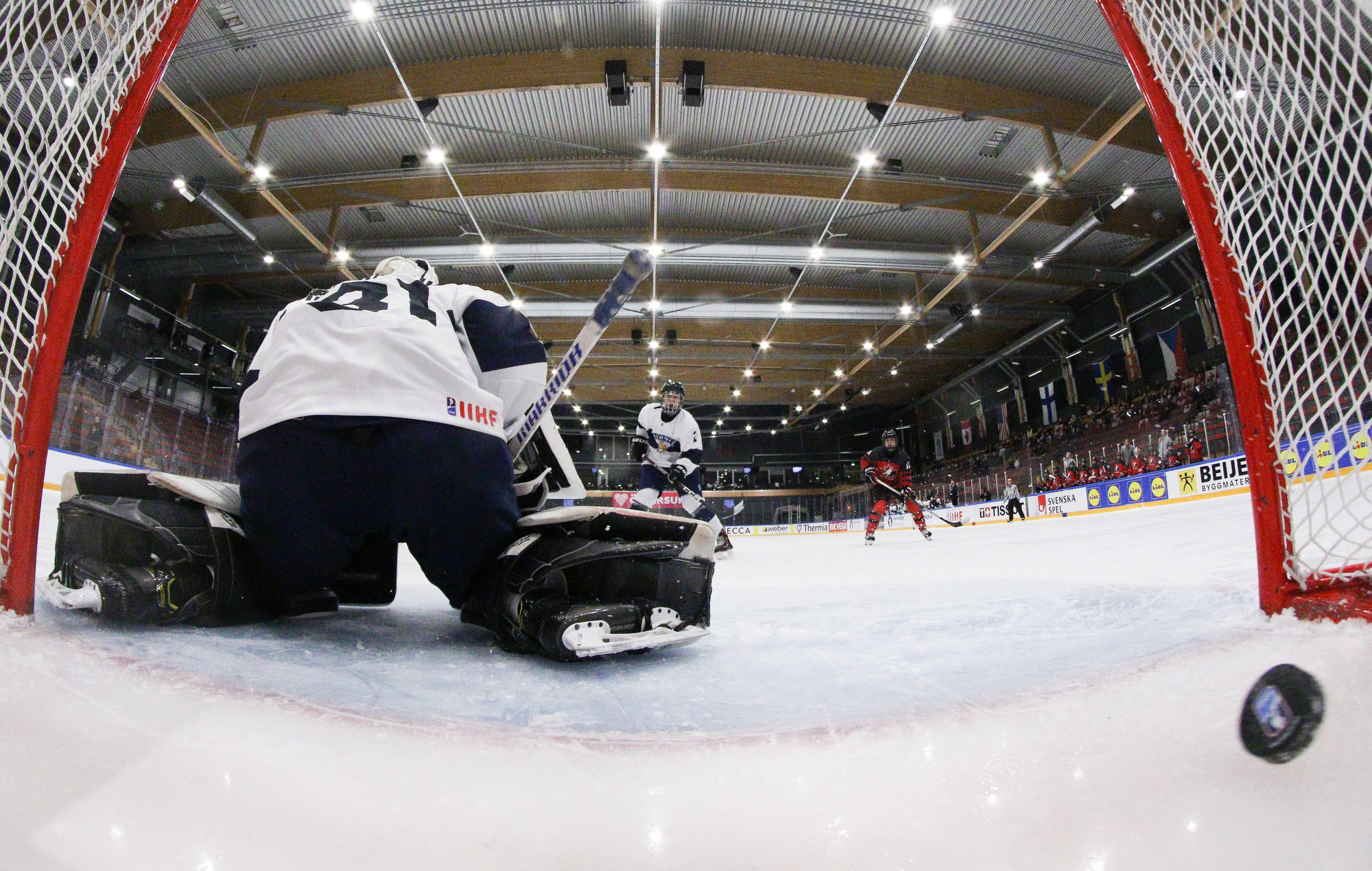 While Canada dominated the play and kept the ouck in the Finnish zone most iof the period, their third goal came off a rush. Alexander MacKenzie won a puck battle at the offensive blueline, carried the puck into the Finnish zoen and found Abby Lunney all by herself between the Finnish defence. She looked up and fired the puck in through Kuja-Halkola’s five-hole for 3.-0, at 8.32.