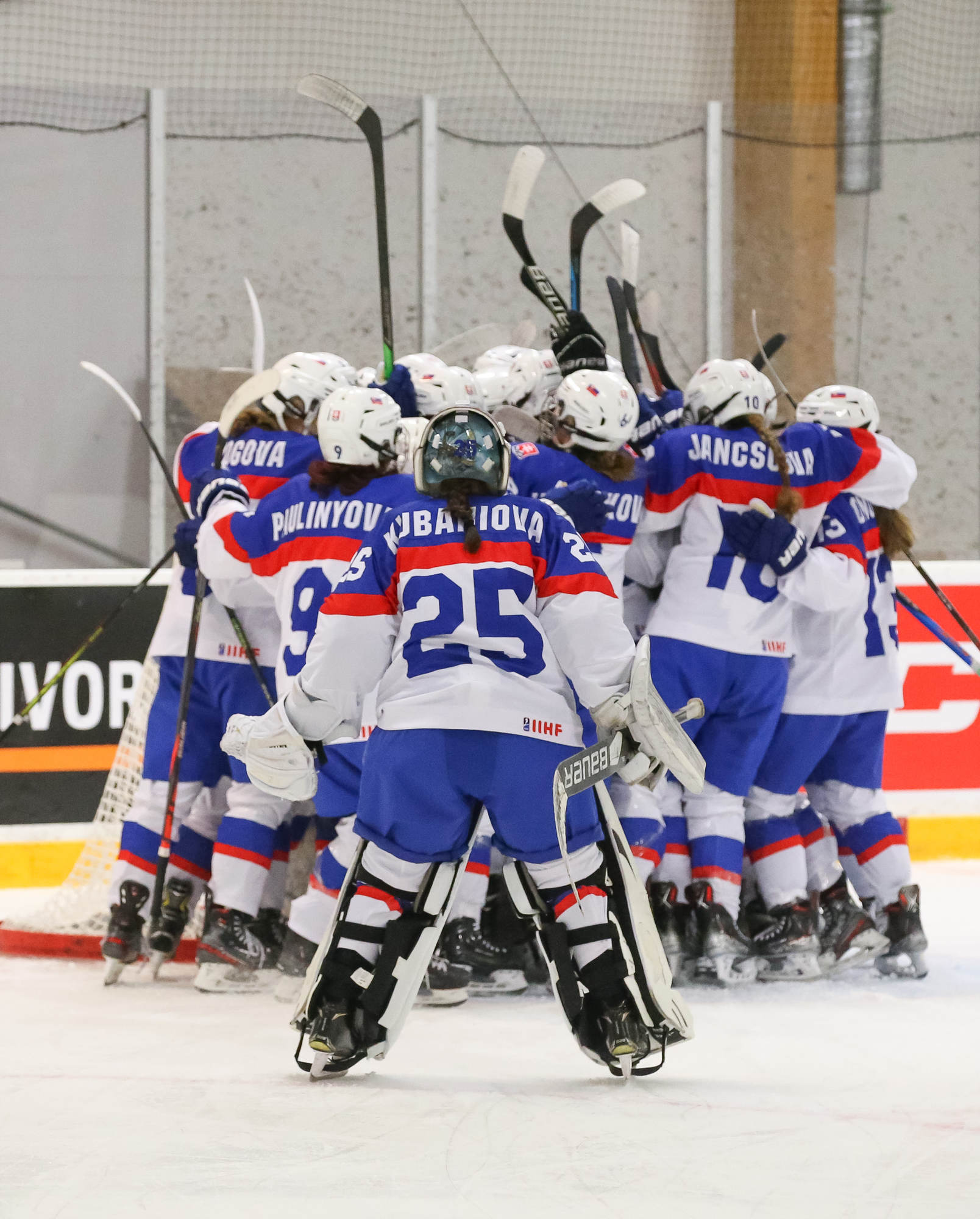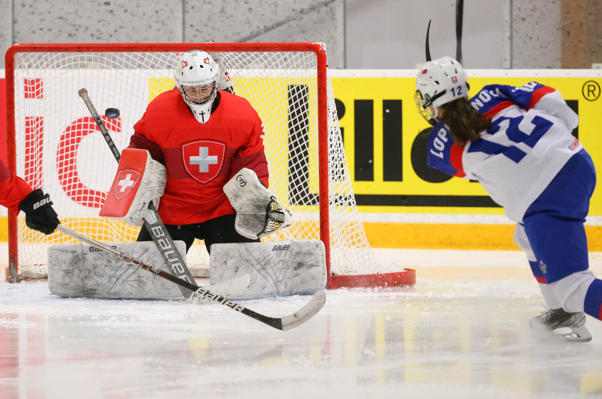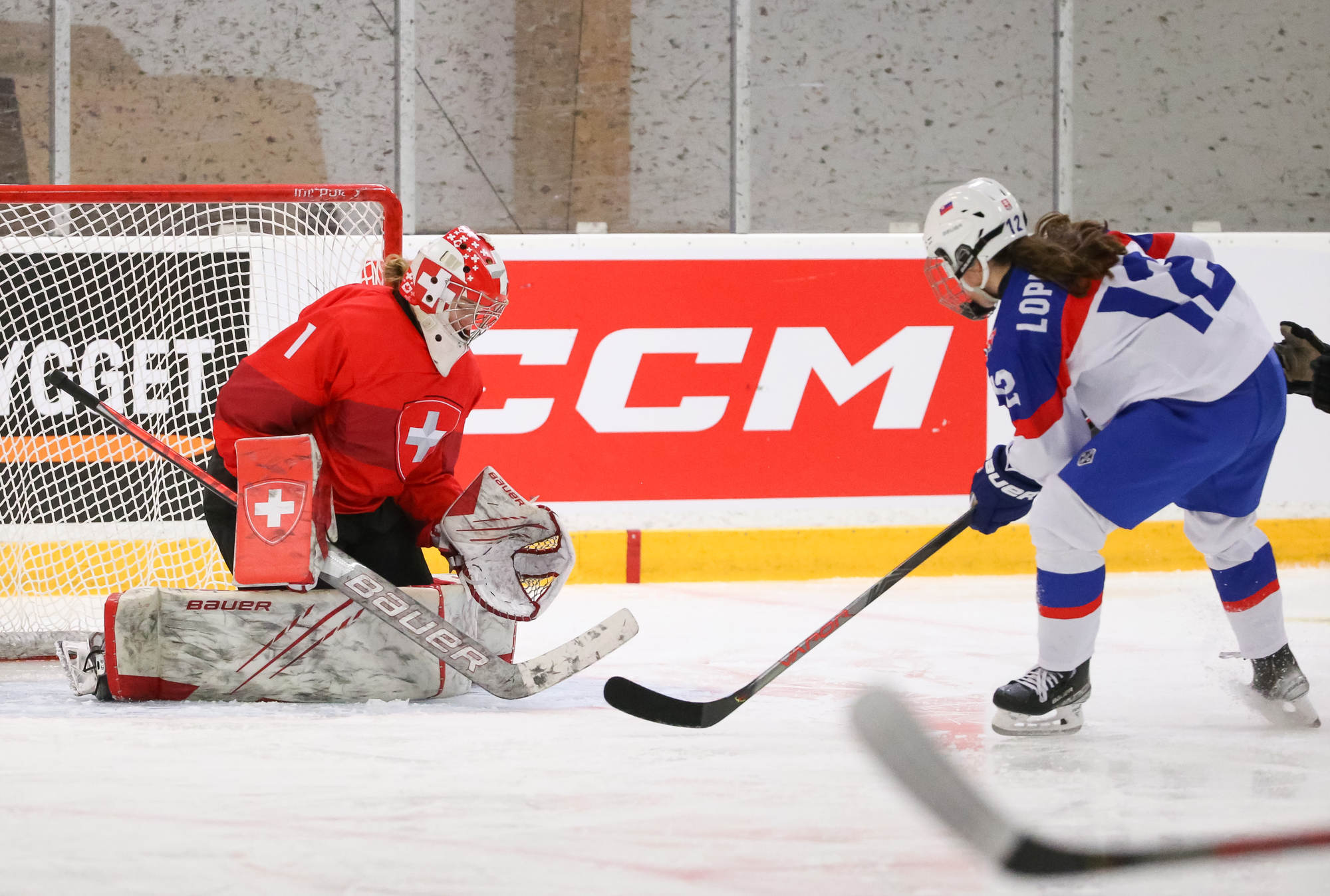 A little more than two minutes later, Lopusanova fed Zuzana Dobiasova at the right edge of the crease. The Slovak captain lifted the puck past Swiss netminder Margaux Favre into the top, right corner to make it 2-1.